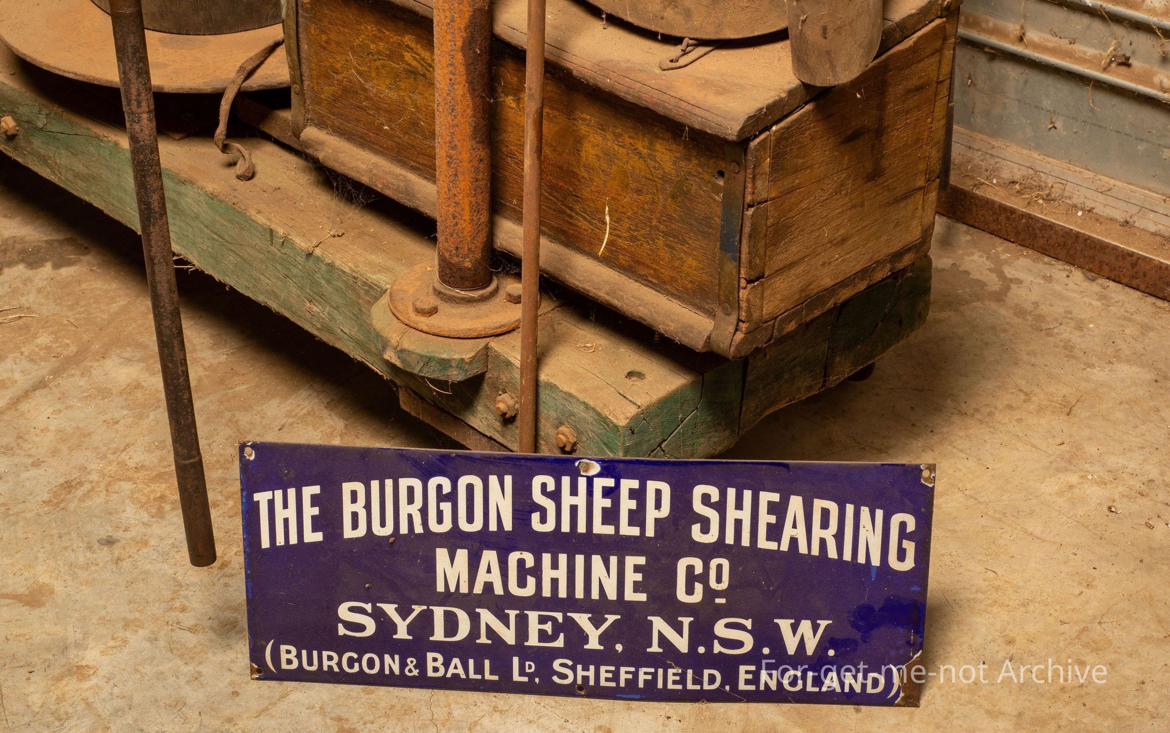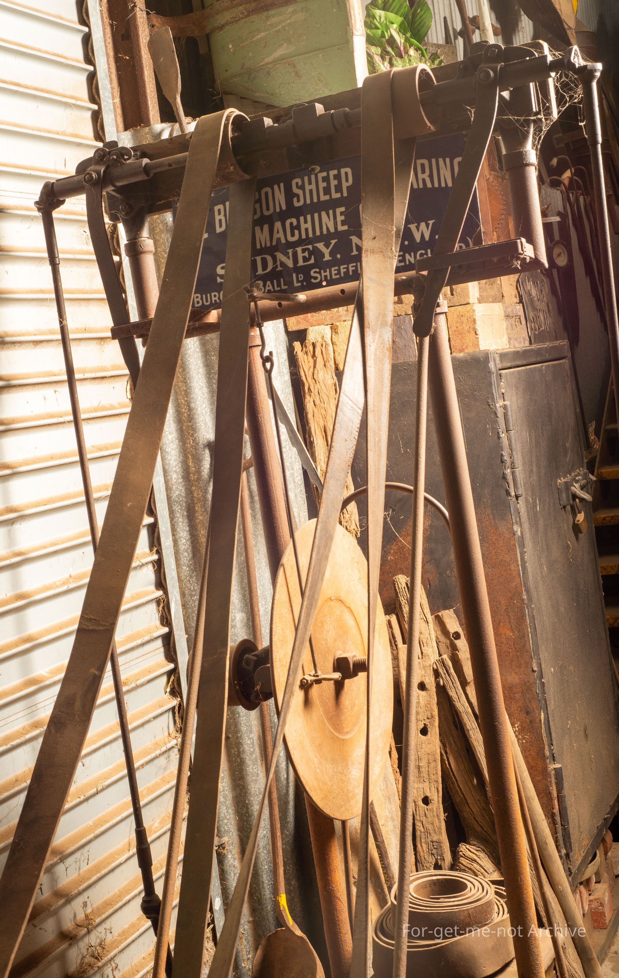 This is a 2 stand shearing plant manufactured by Burgon and Ball, in England, exported to Australia.