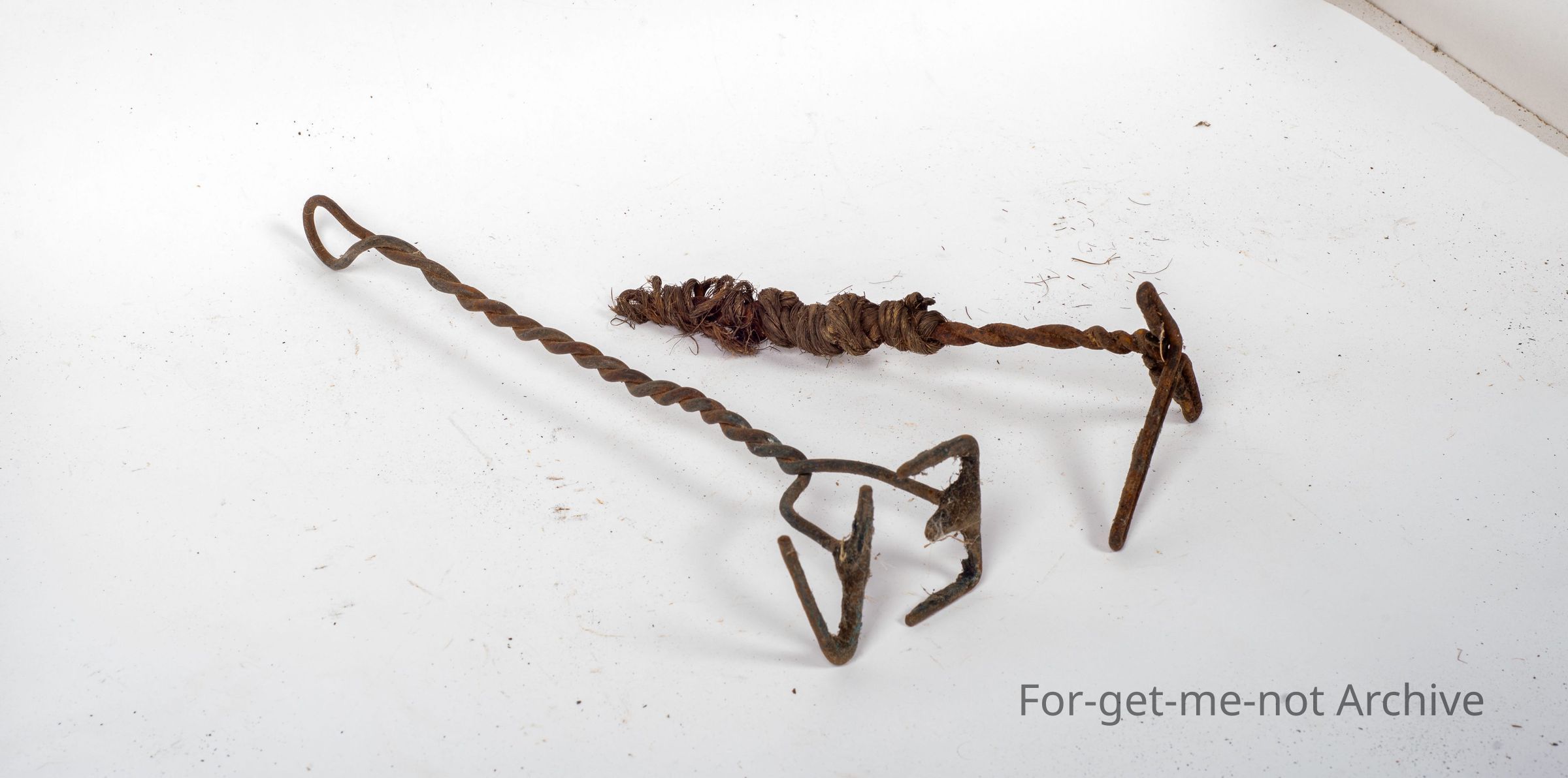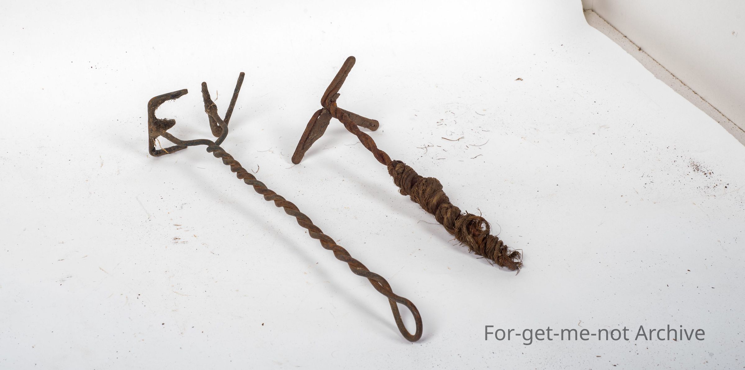2 wire work sheep brands, one with V E. The other one, a T. The T one was used as an image for the Federation Tapestries in the Melbourne Museum.