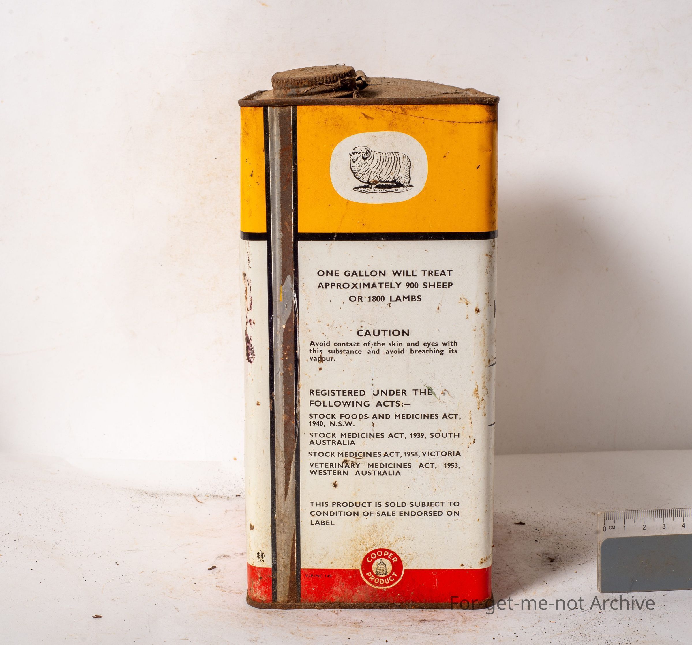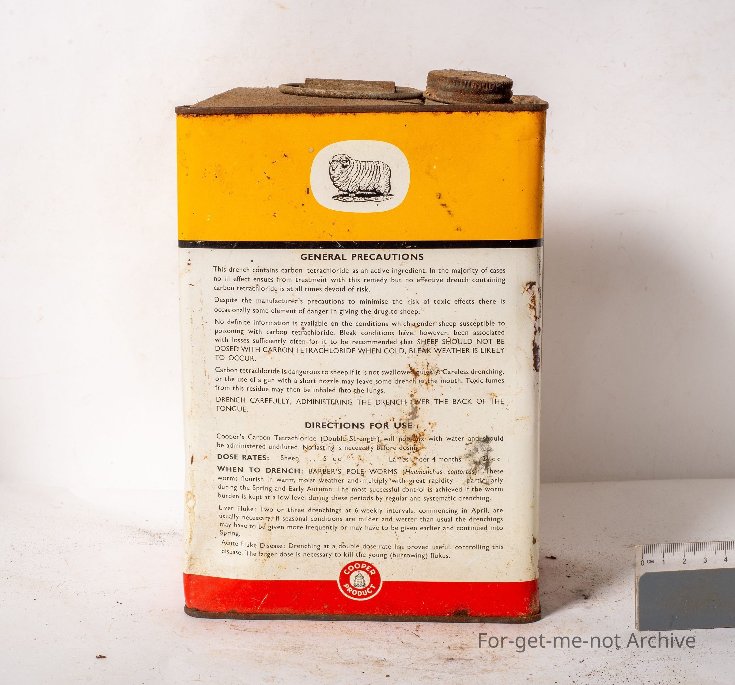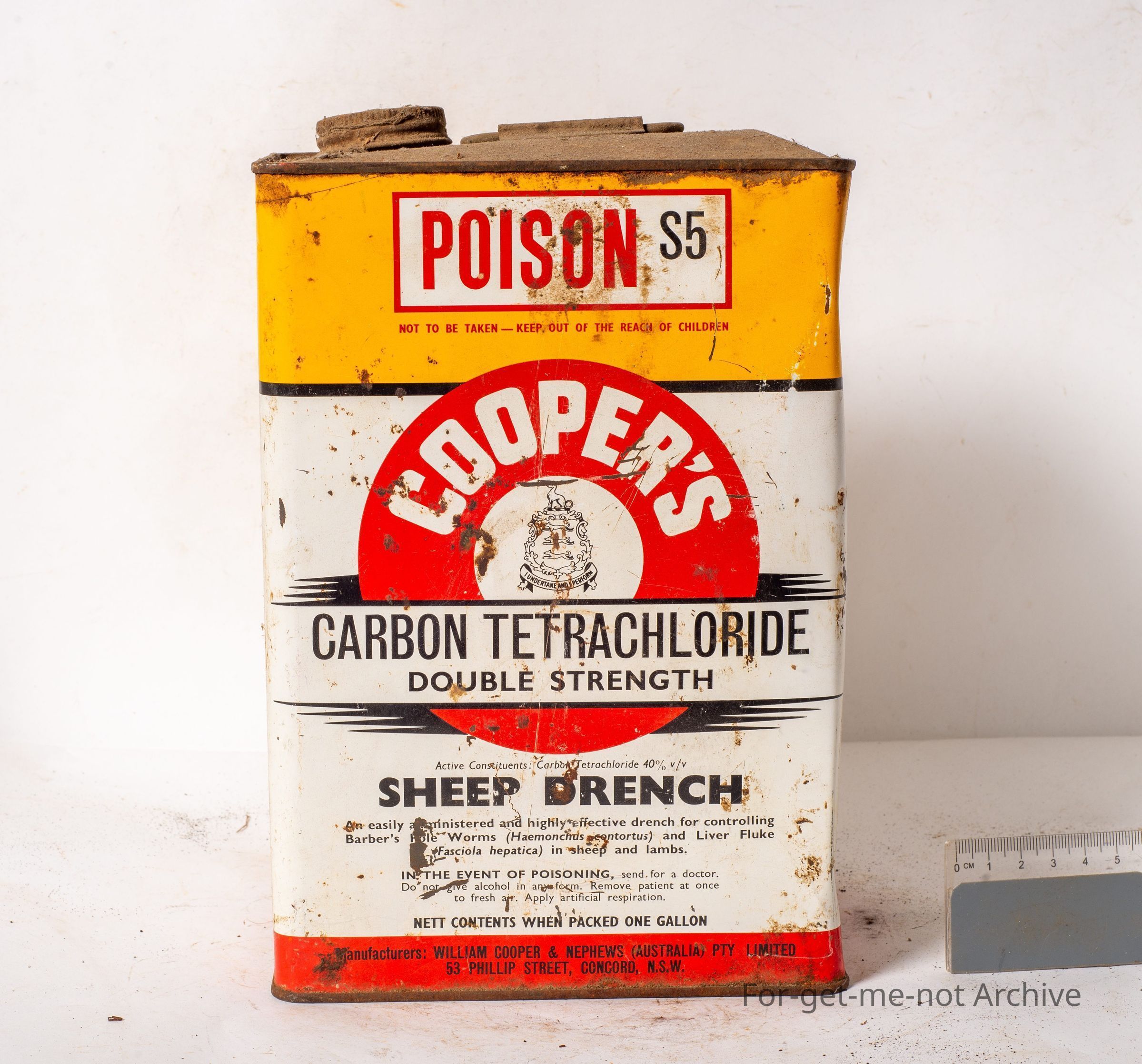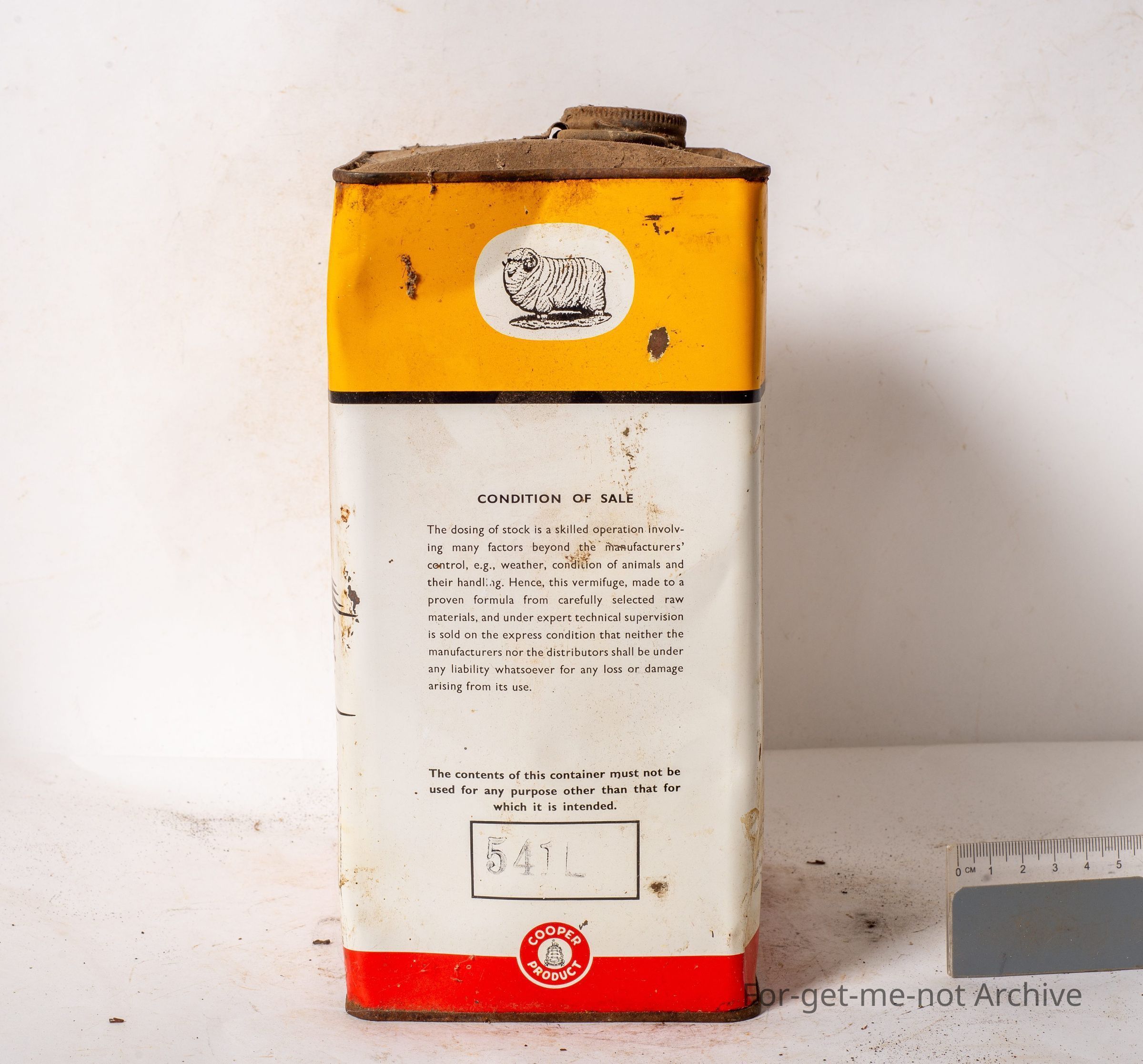 This tin is Cooper's Carbon Tetrachloride Double Strength Sheep Drench. This tin is in reasonably good condition again. All Cooper's tins are pretty collectible.