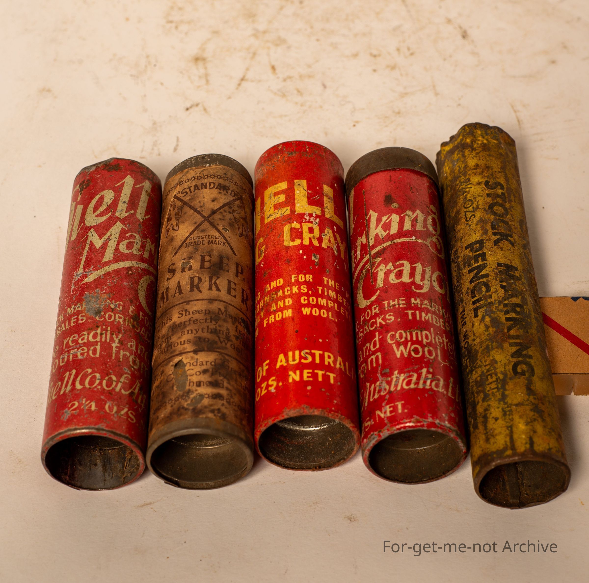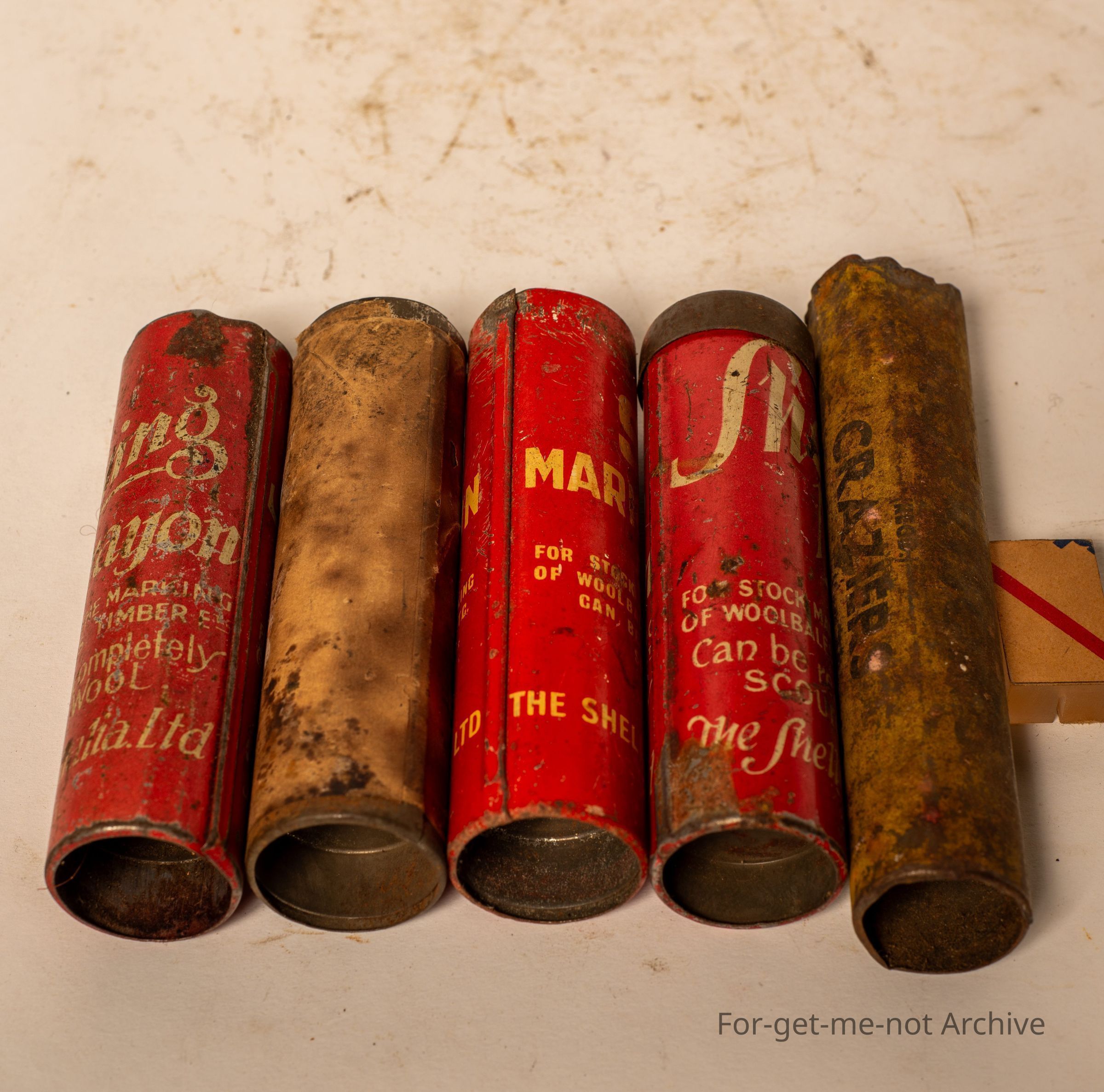 Sheep marking crayons, made by the Shell Oil Company, Standard Oil Company, and others. 5 of them altogether,