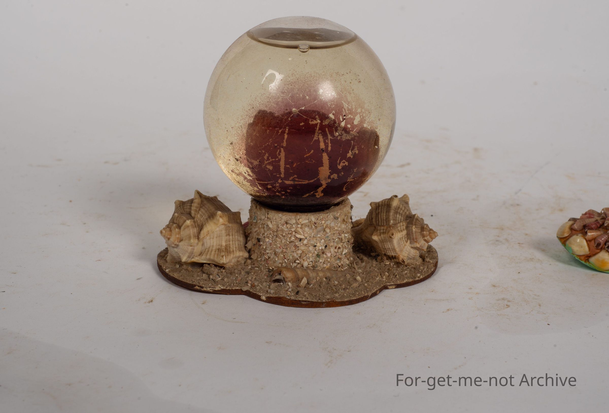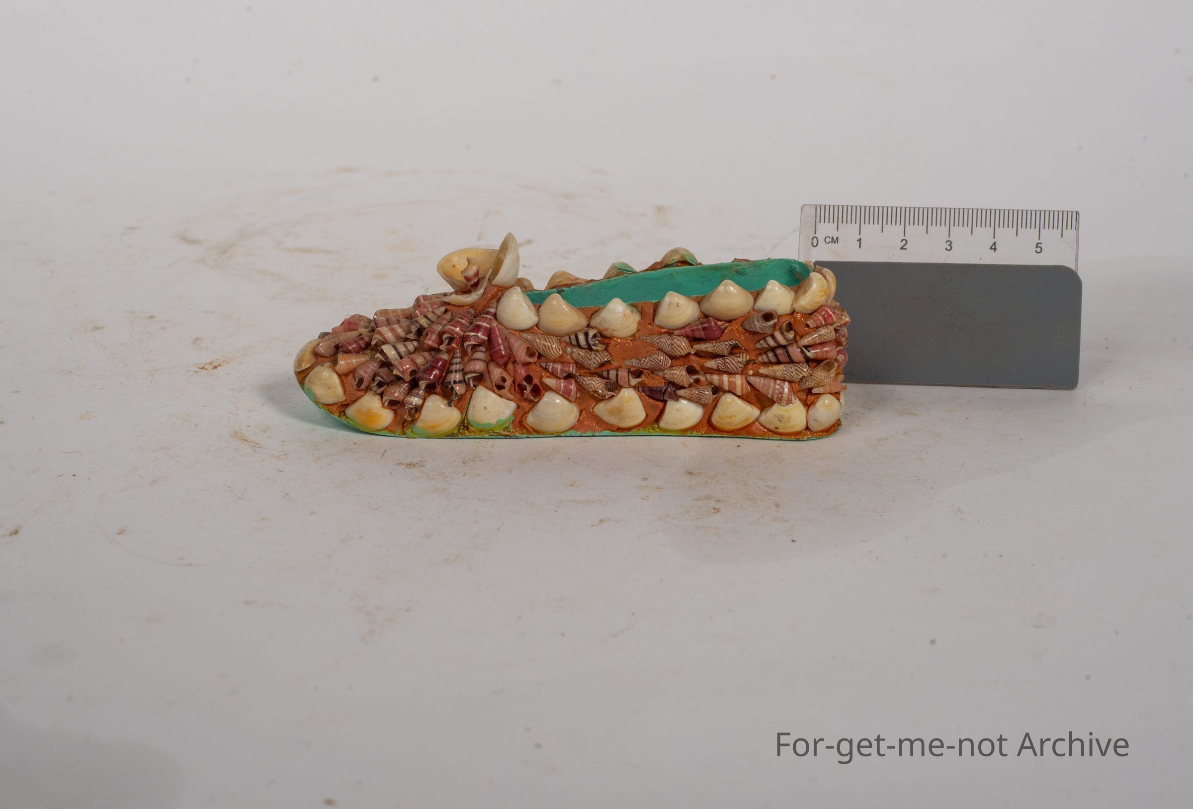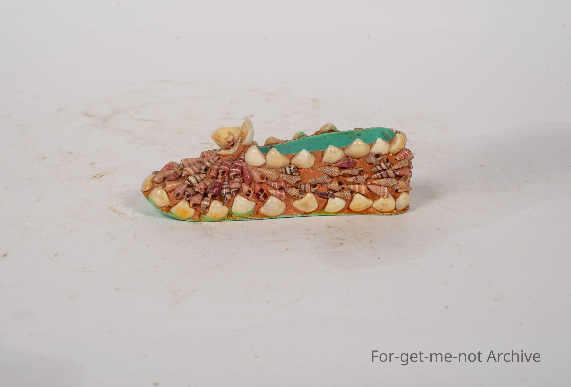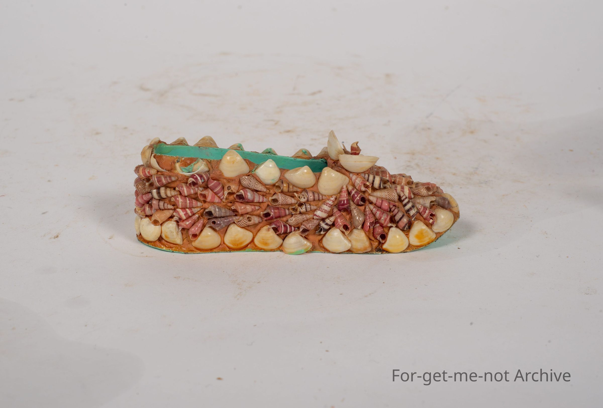 Are 2 more examples of craft pieces made from shells. 1 in the shape of a shoe, the other one a snow dome , has an image of Sydney Harbour Bridge in a bowl with a base of all different shells, has Sydney written on it. The Sydney Harbour Bridge piece is an Australian souvenir made in Sydney. No. Made in Italy for Sydney.Collection