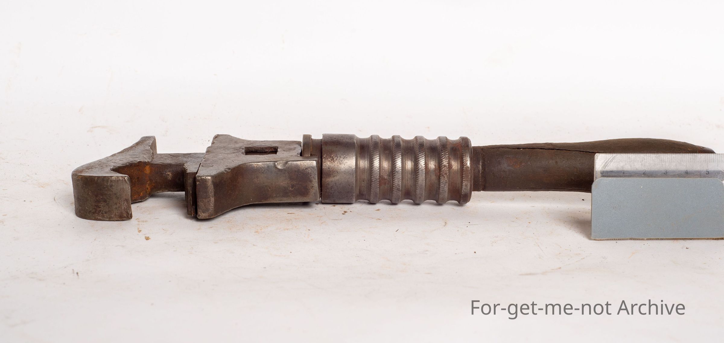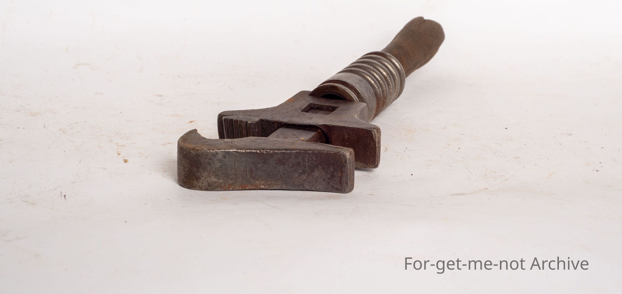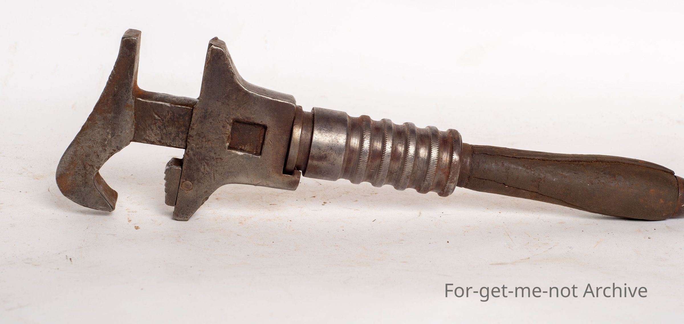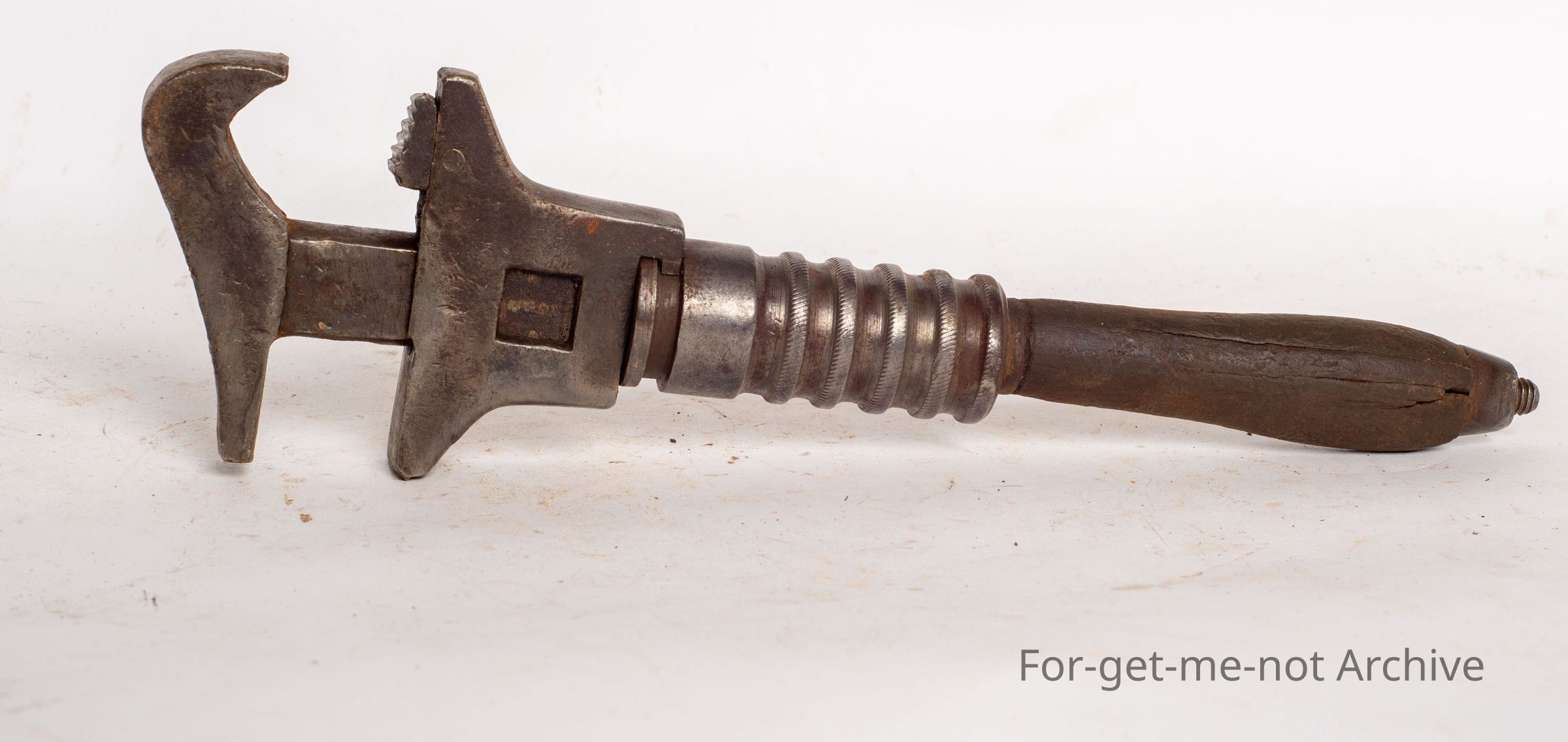 Wooden handled, shifting wrench. Quite a primitive design, but still got all its original form about it.