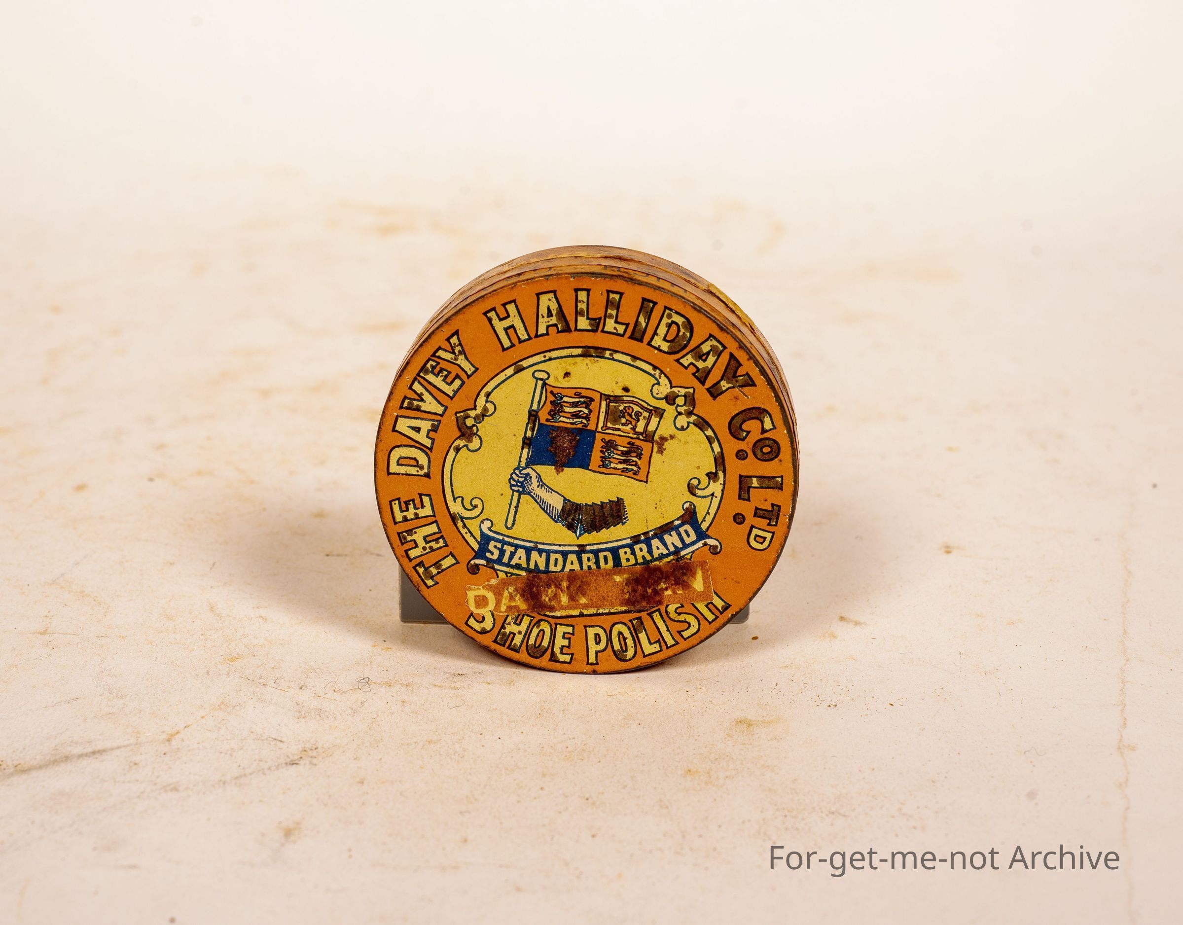 Is a tin. The Davey Halliday Company Shoe Polish. Standard brand, lovely tin, down a little bit.