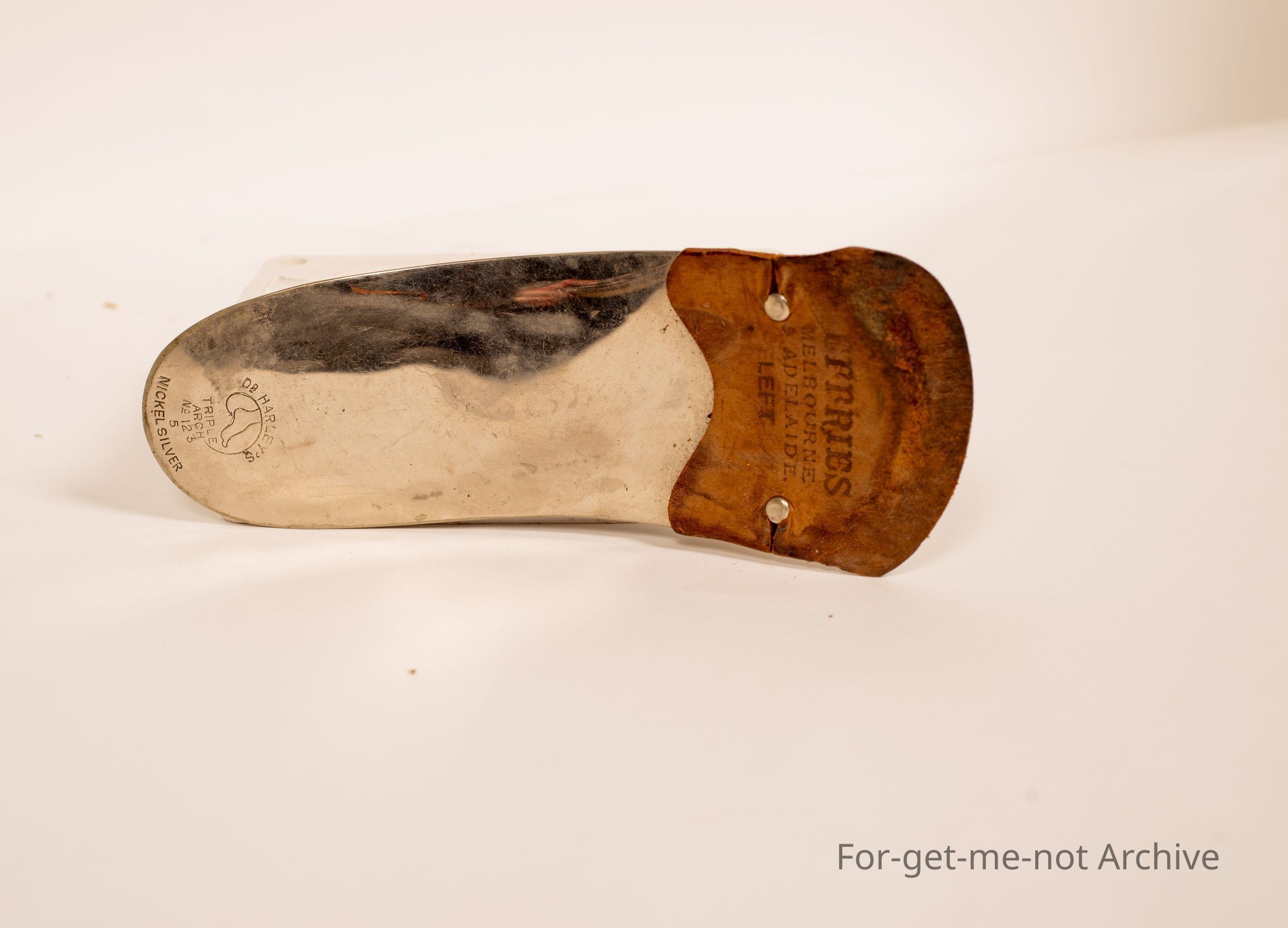 Is an arch support to go in a shoe made by Ferris, Melbourne Adelaide. This is for a left foot. Nickel Silver.