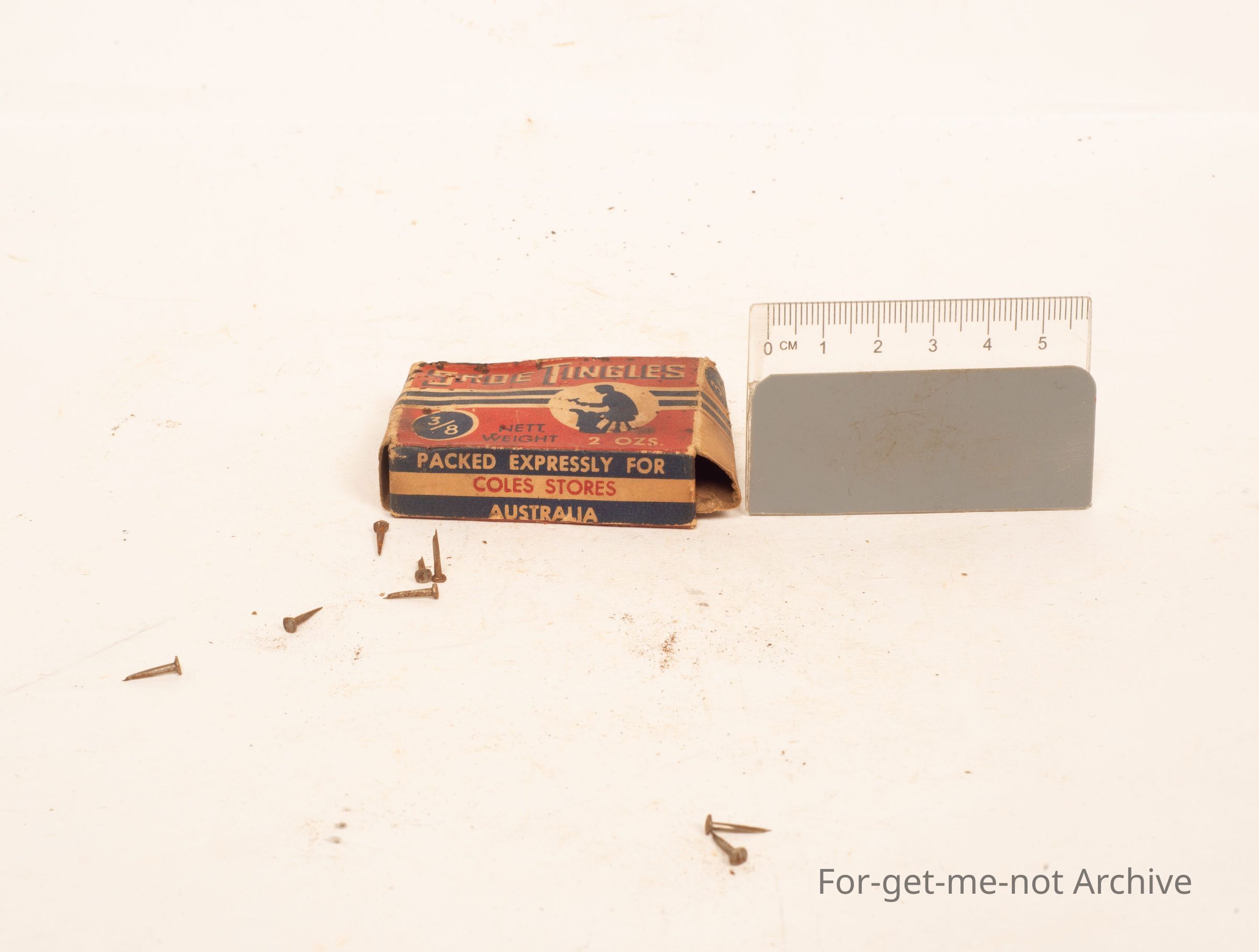 Is a small cardboard box of shoe tingles. Net weight, 2 ounces. Packed expressively for Coles Australia.