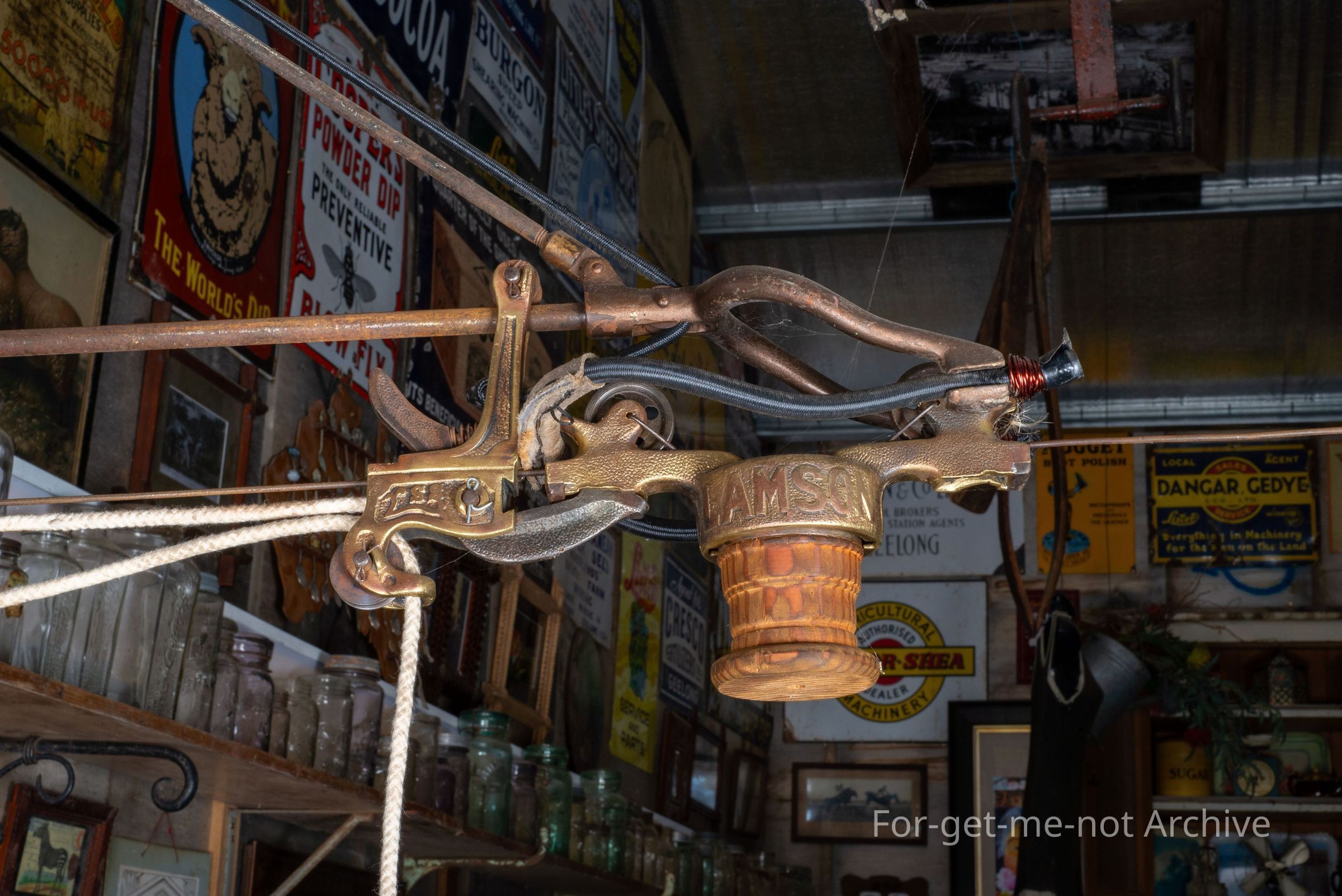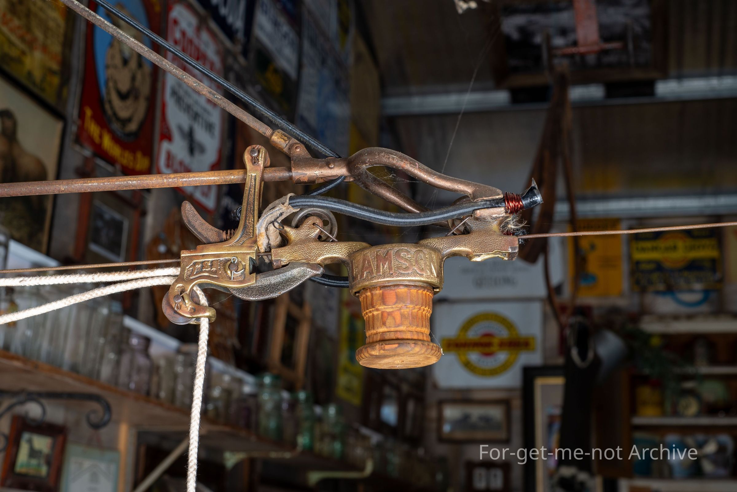 This is a shop cash trolly used to send the invoice and cash to the cashier. The cashier would return the trolly with the receipt and change