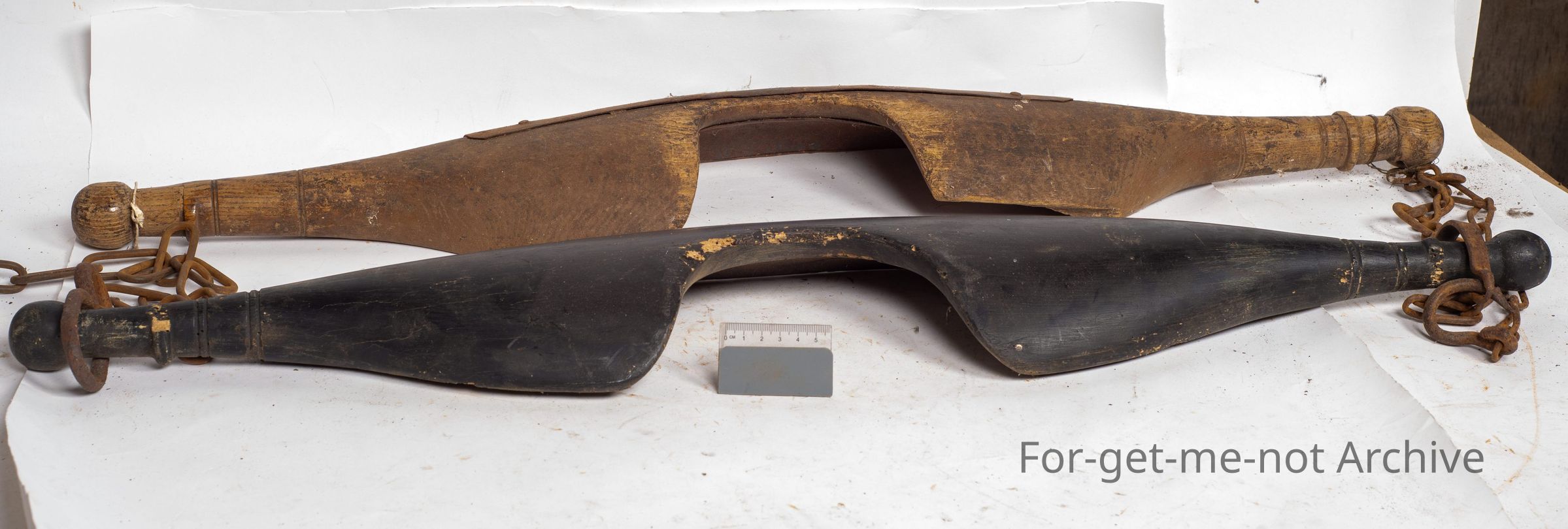 These are 2 wooden shoulder yokes that, went on the shoulder. There's a cutaway section for your neck, on these. They carried on a train either side, buckets of either grain, water or whatever the necessity was. These are from the earlier days of Chinese occupation in the Gold Fields.Collection