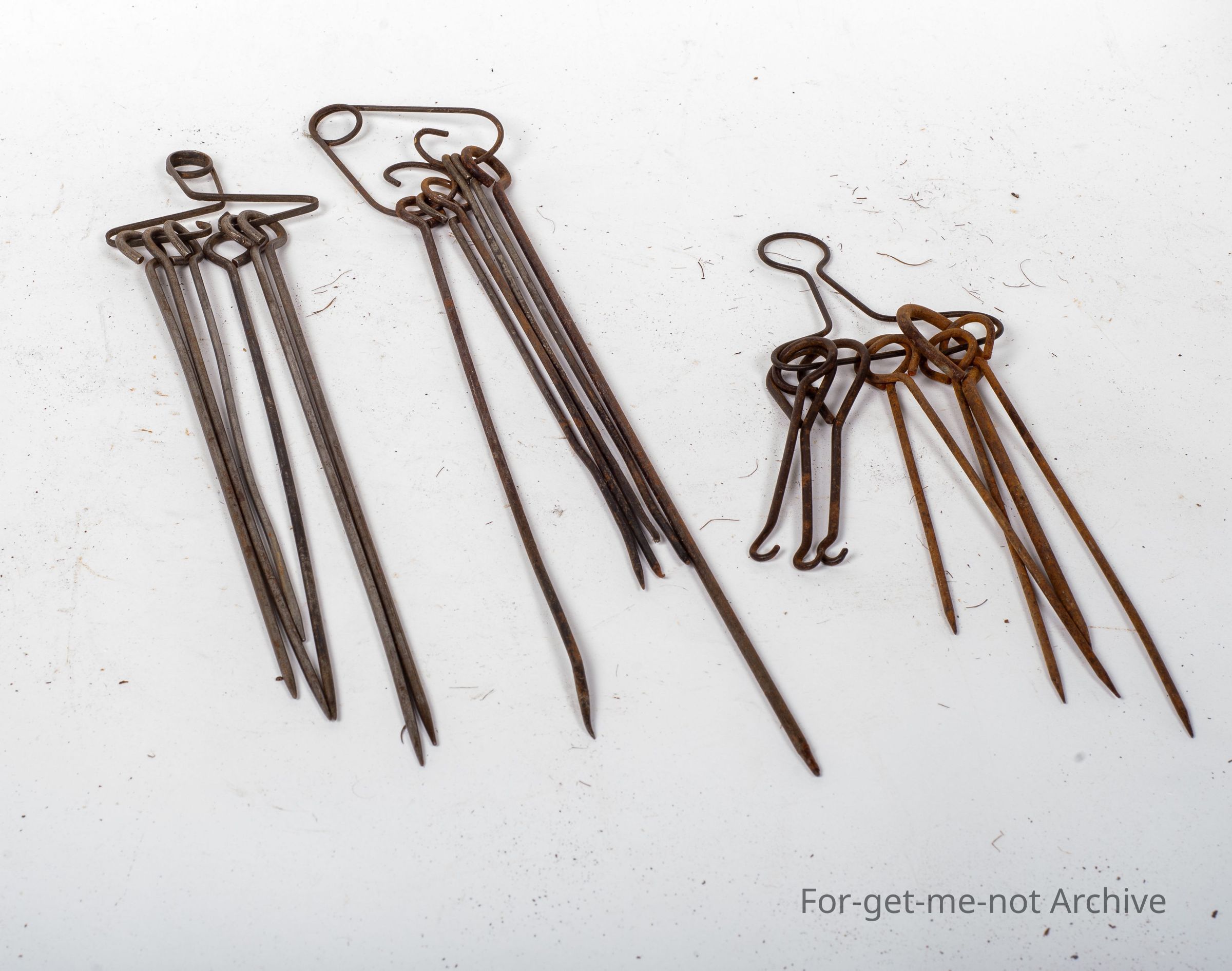 Is a group of 3 skewers racks with the holder that hangs on the wall. The little hanging part is quite difficult to find. Each one of these has a separate design wire work hanger.Collection