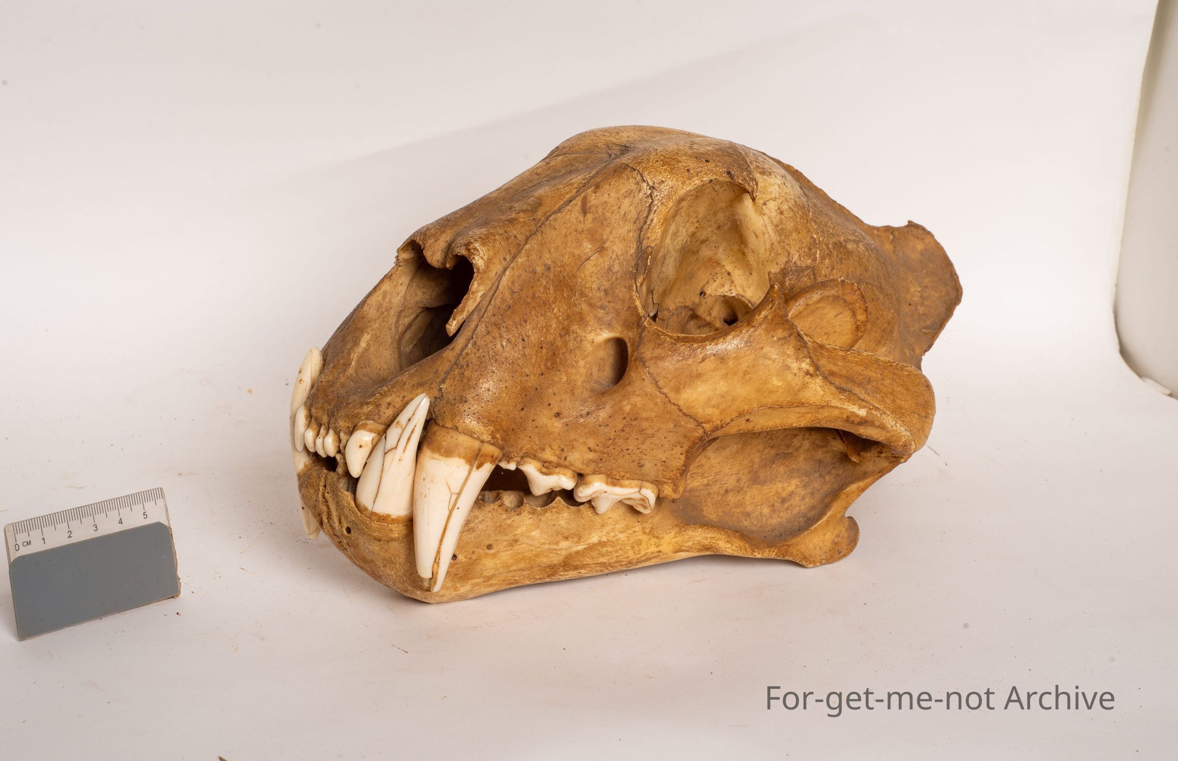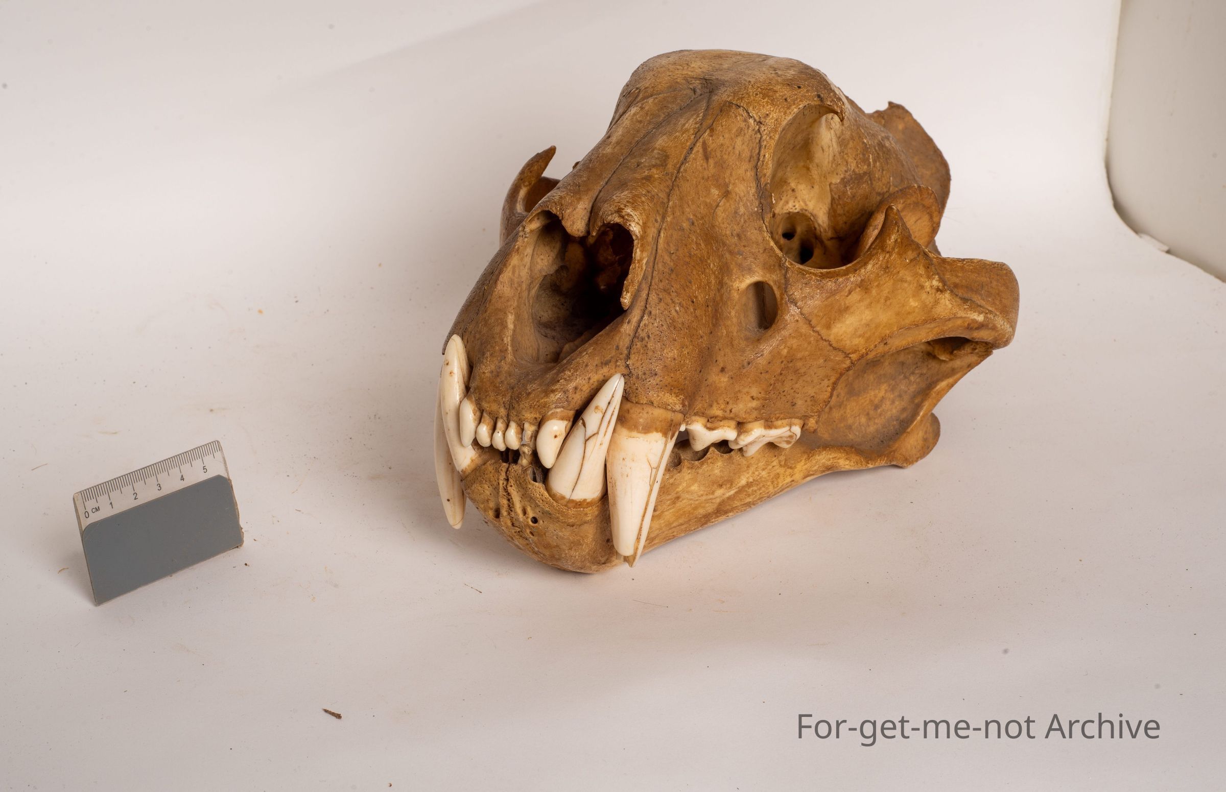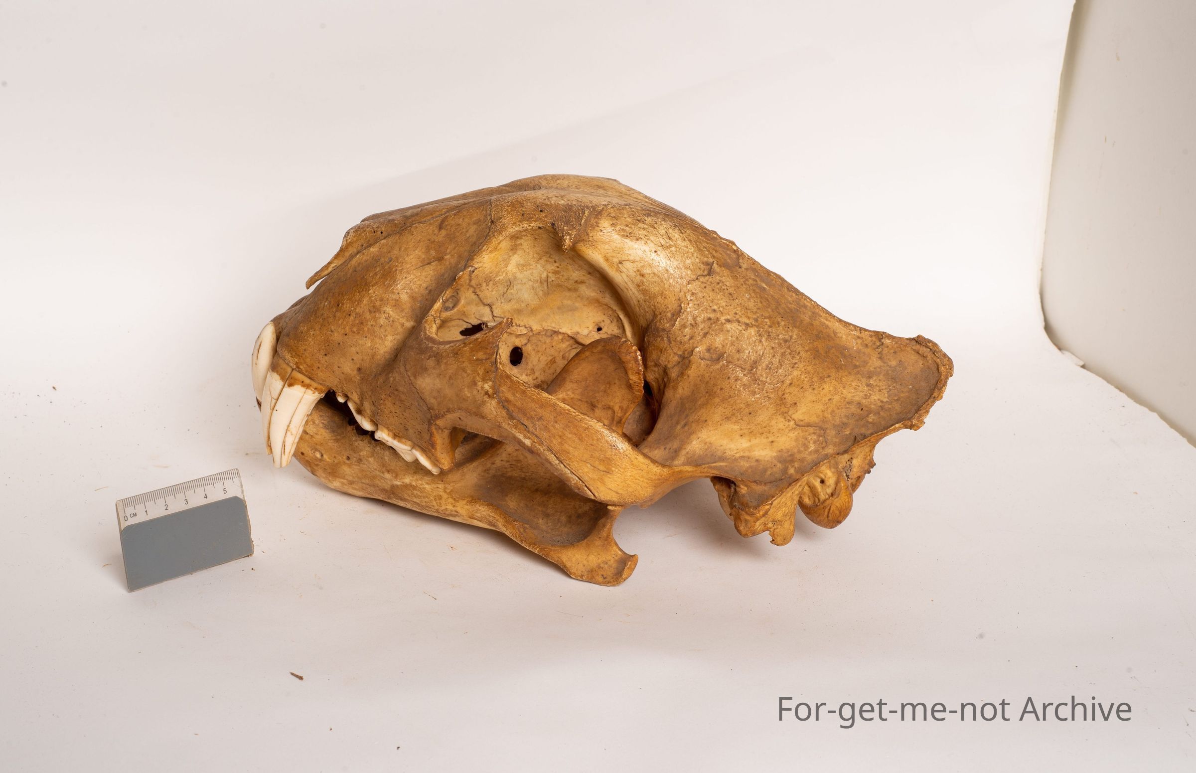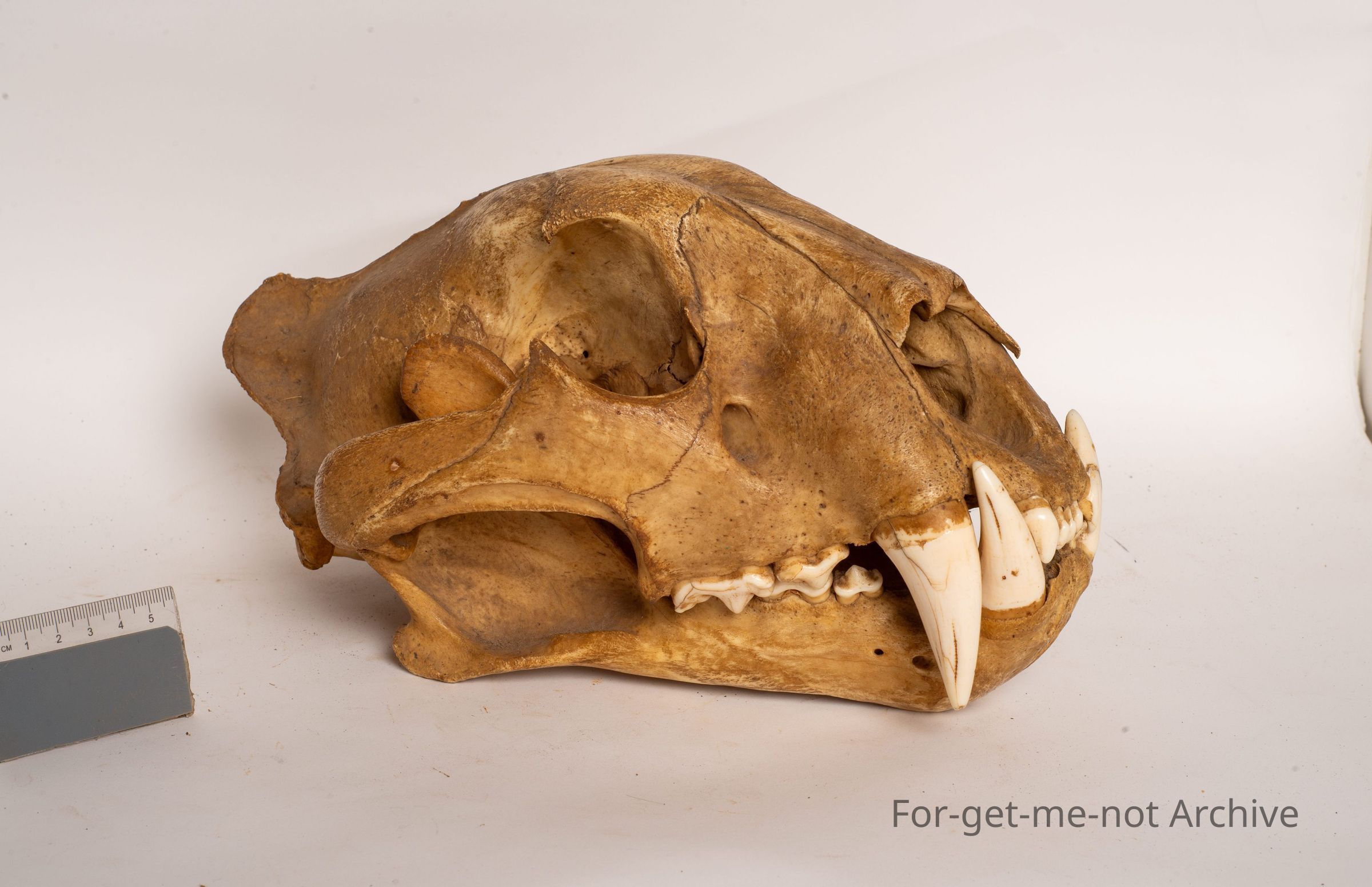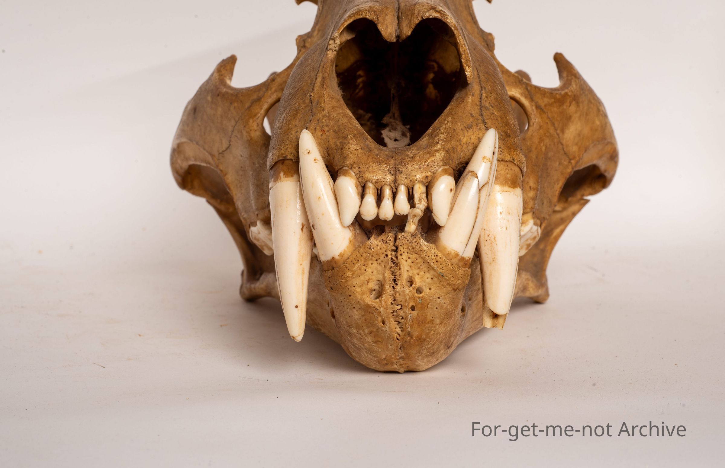 This is the skull, top and bottom jaw from a Bengal tiger. This is a male. This head was brought into Australia by Alex Galbraith, who was an early tea importer from China to Australia.