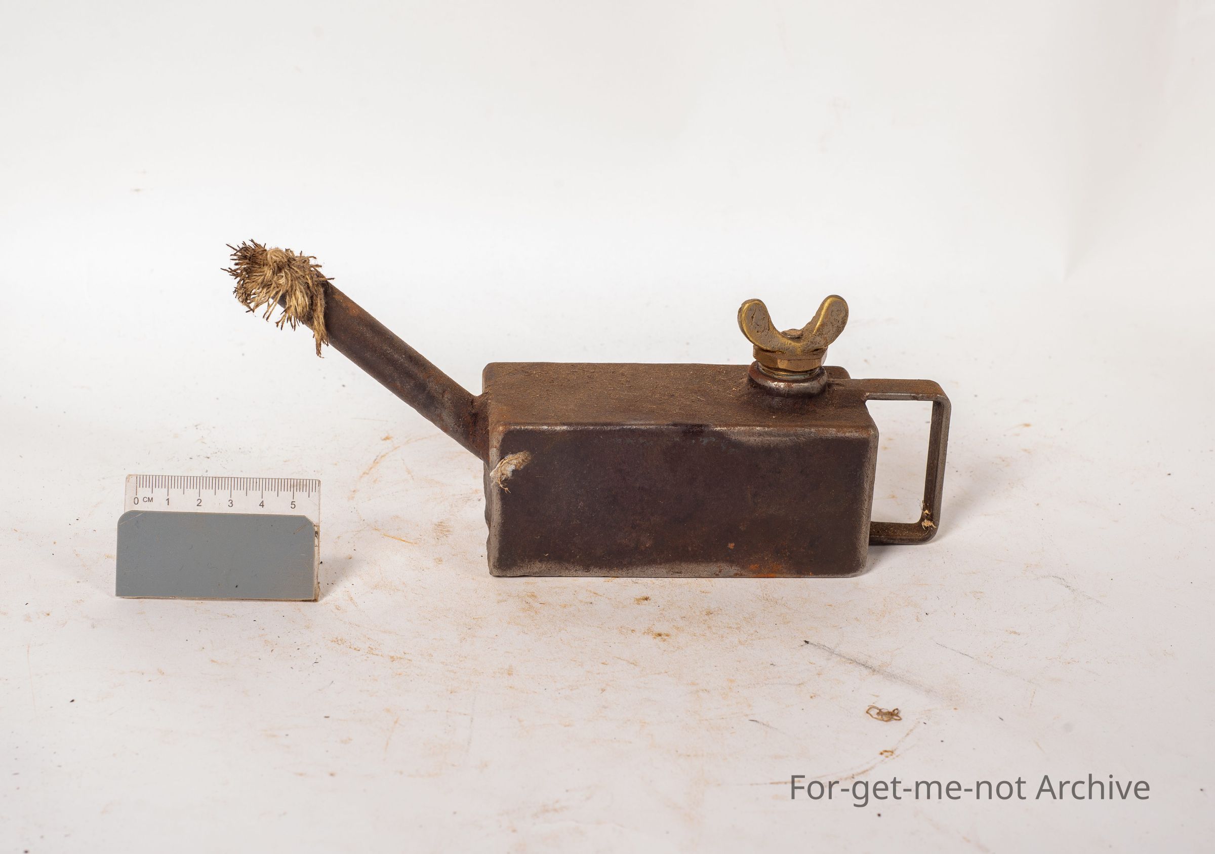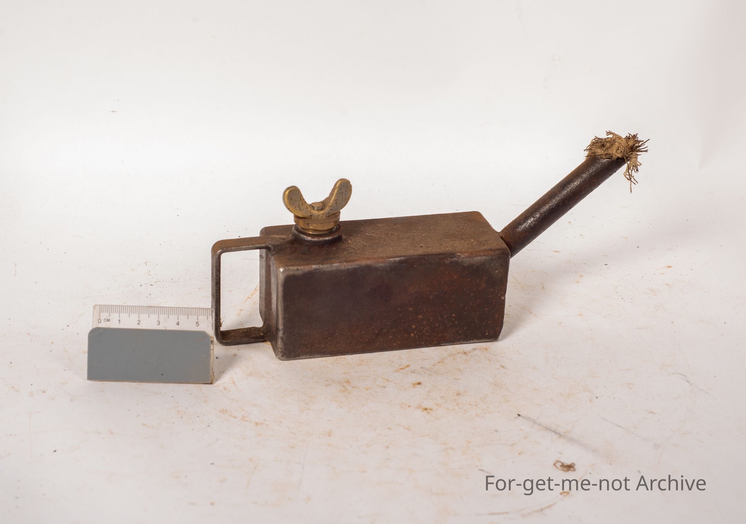 This is a pretty rustic looking lamp known as a slush lamp. Burnt, heavy oil, would have been smelly, smoky, but in their day, they served the purpose.
