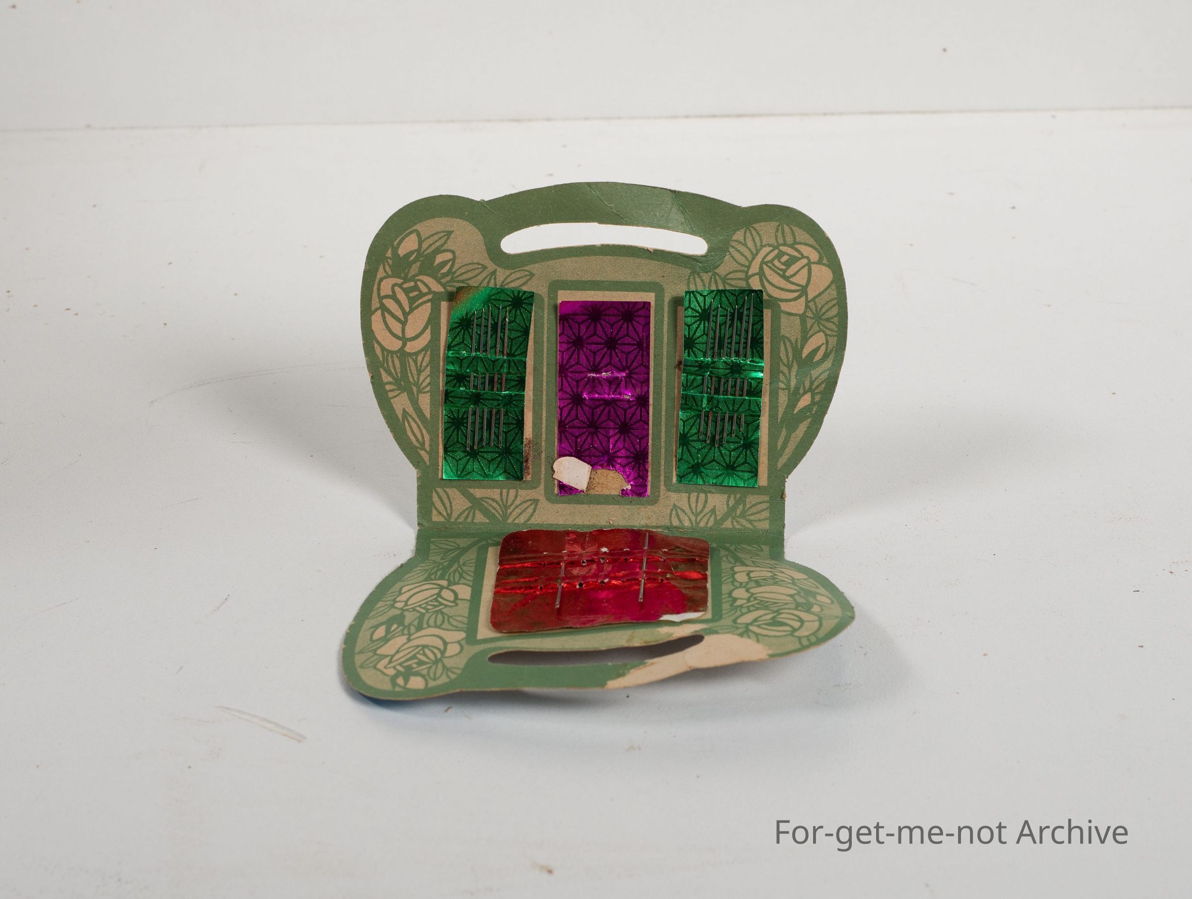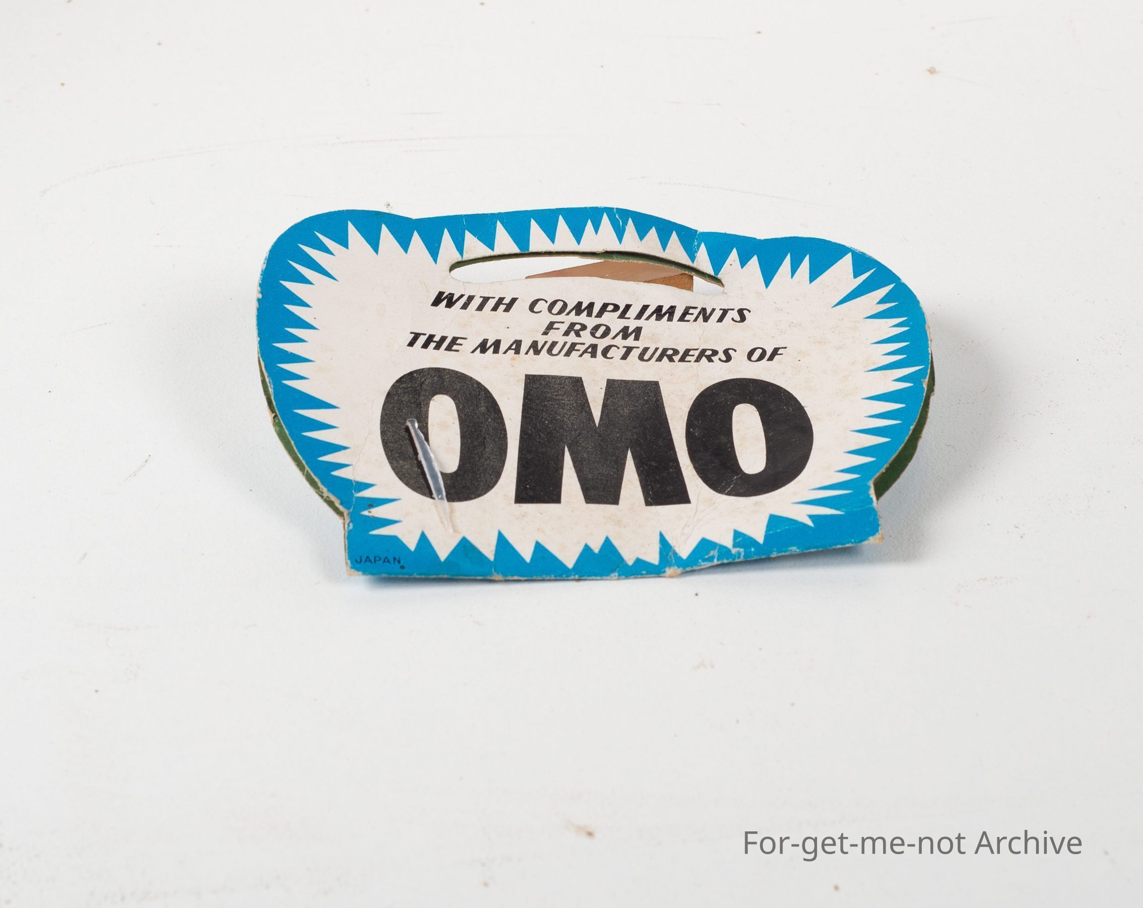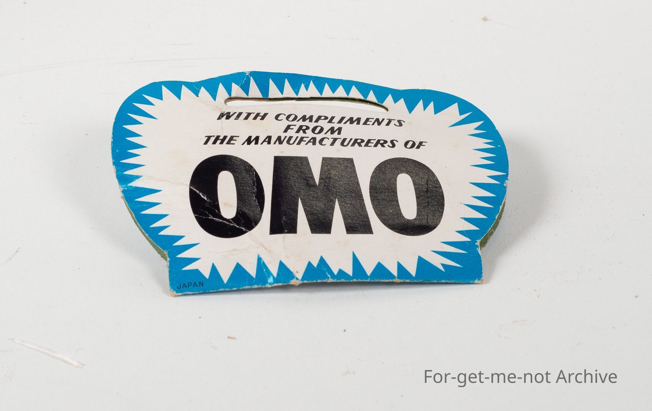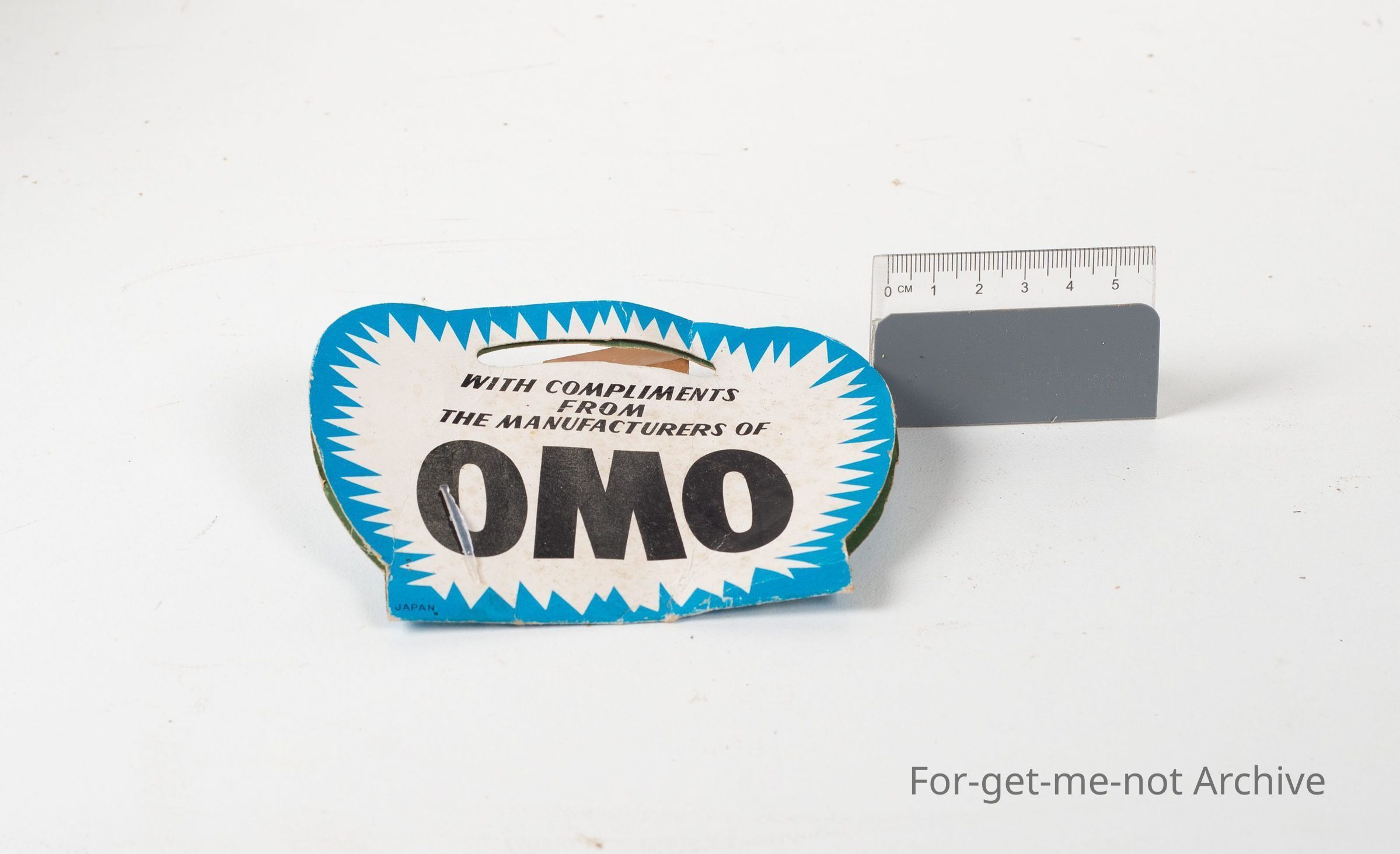 Made of cardboard with blue with black writing, 'With compliments from manufactures'.