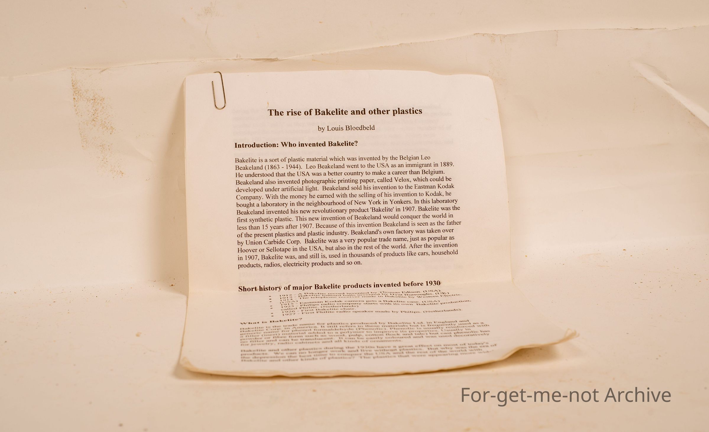 The Rise of Bakelite and Other Plastics' by Lewis Blobeld with the complete history from 1912 to 1927. A valuable piece for the information needed to explain Bakelite, very comprehensive.Collection