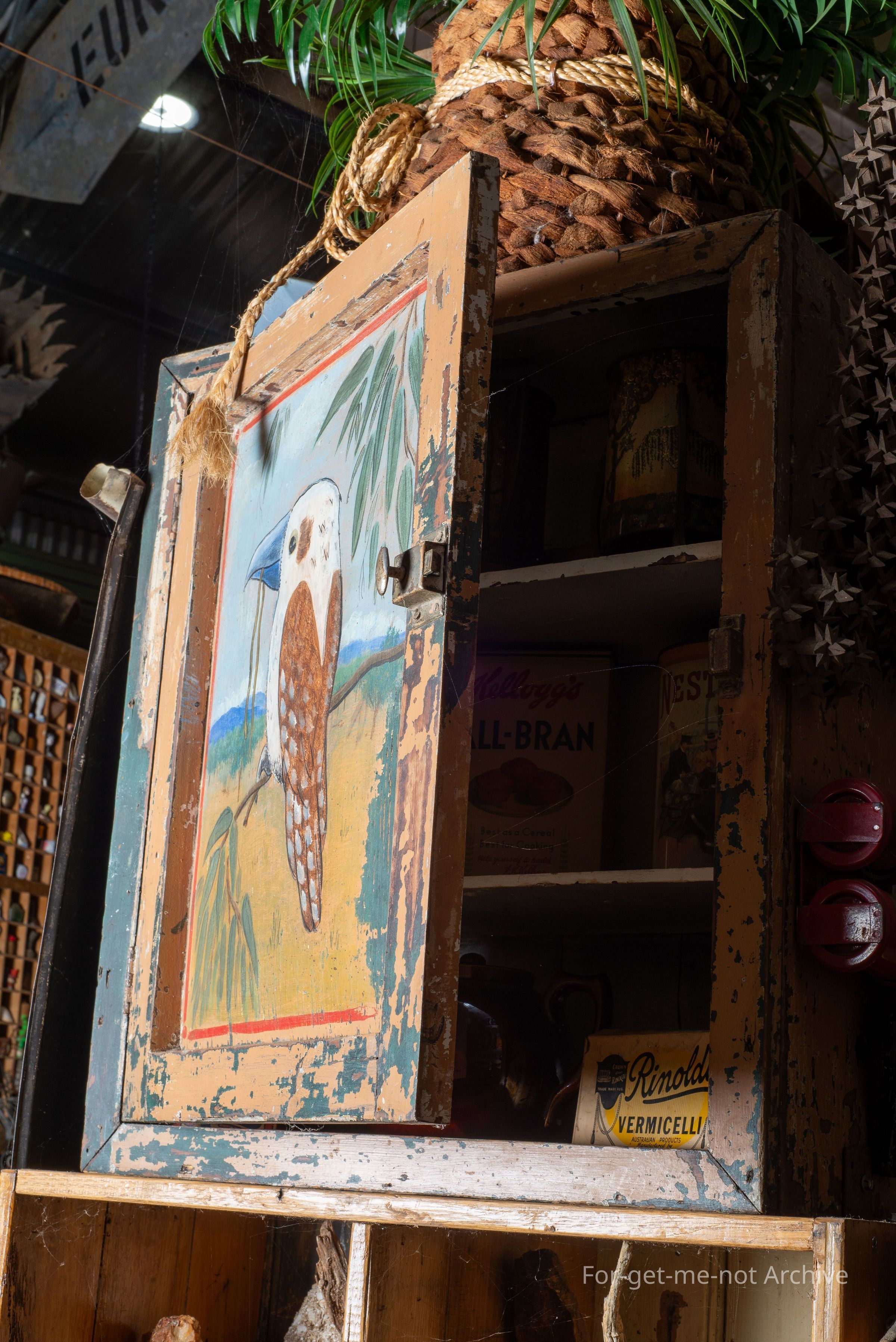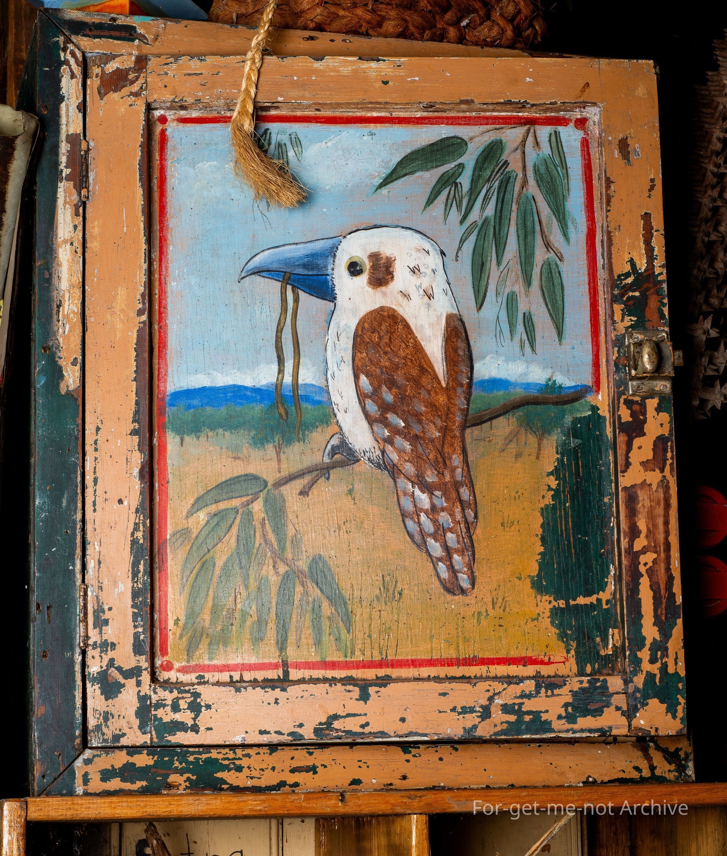 This is a small cupboard with the feature being a hand painted kookaburra on the door of the cupboard. Early country style furniture