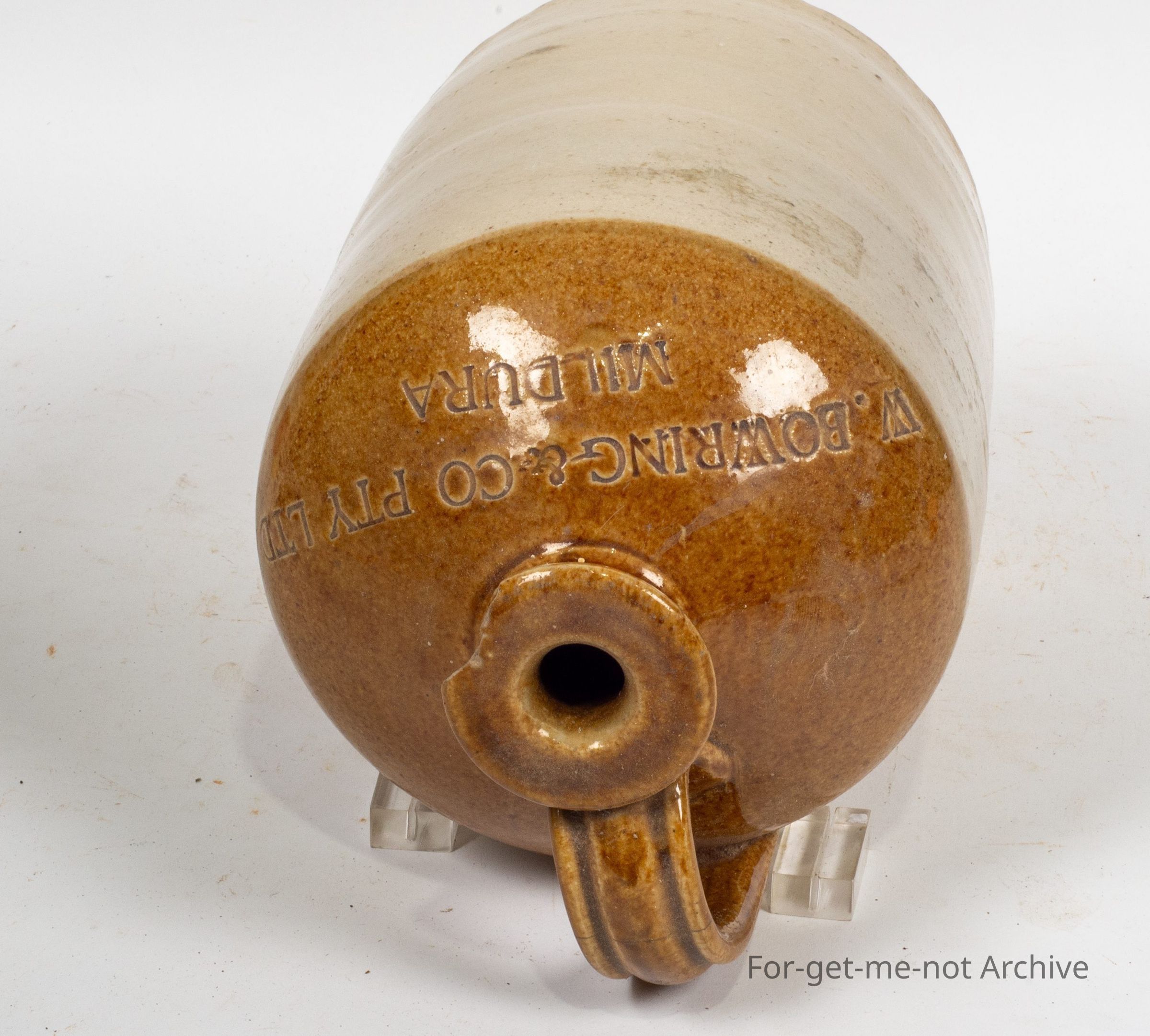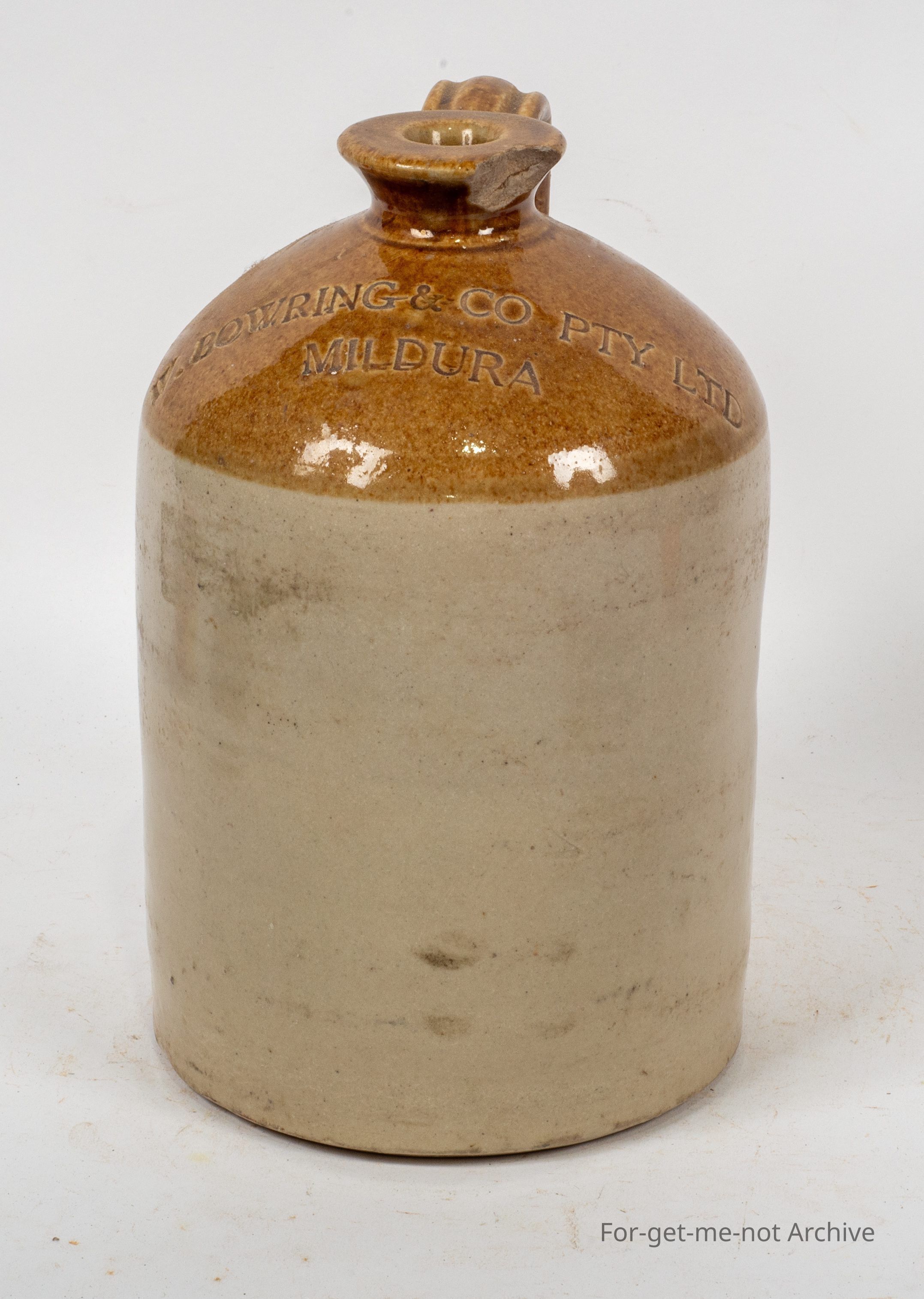 chipped to top lip, stamped W.Bowring & Co, PTy Ltd Mildura, very likely made by Bendigo Pottery