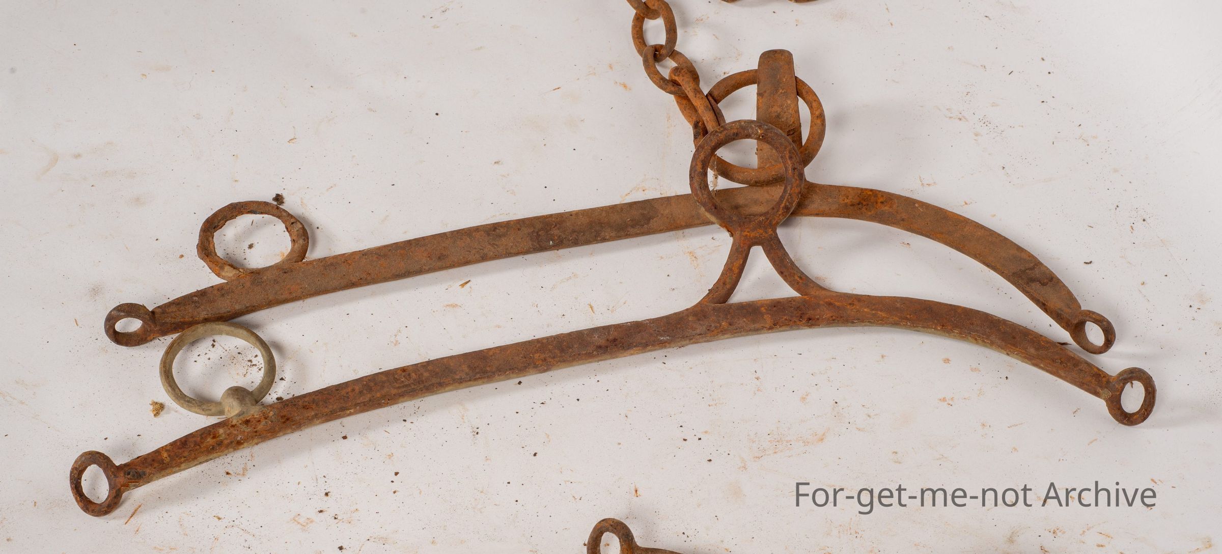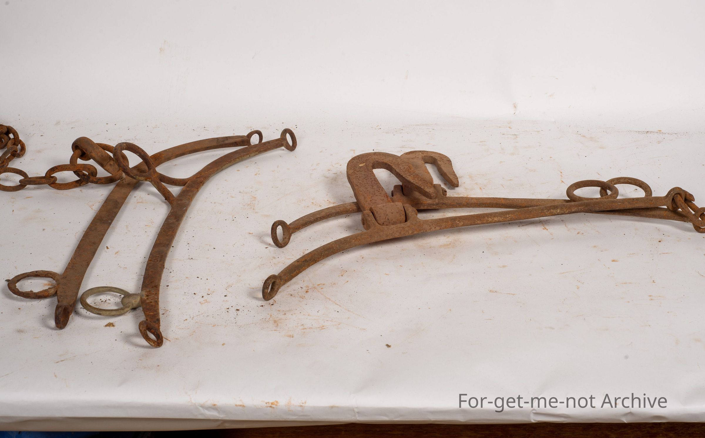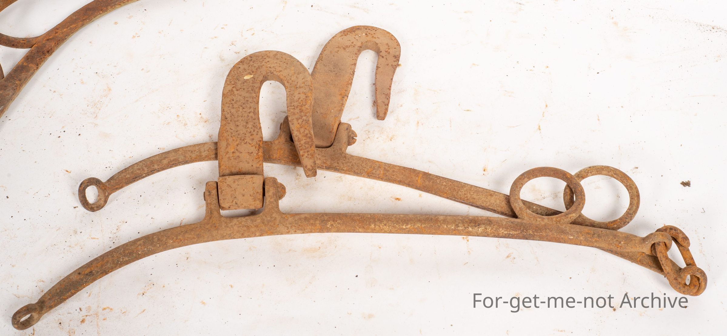 Dual Tools. These are small hames believed to have been used on donkey teams. These are all metal. The chains and straps for pulling were hooked into the large hooks. Not as common as horse ones. the 2 sets.Collection