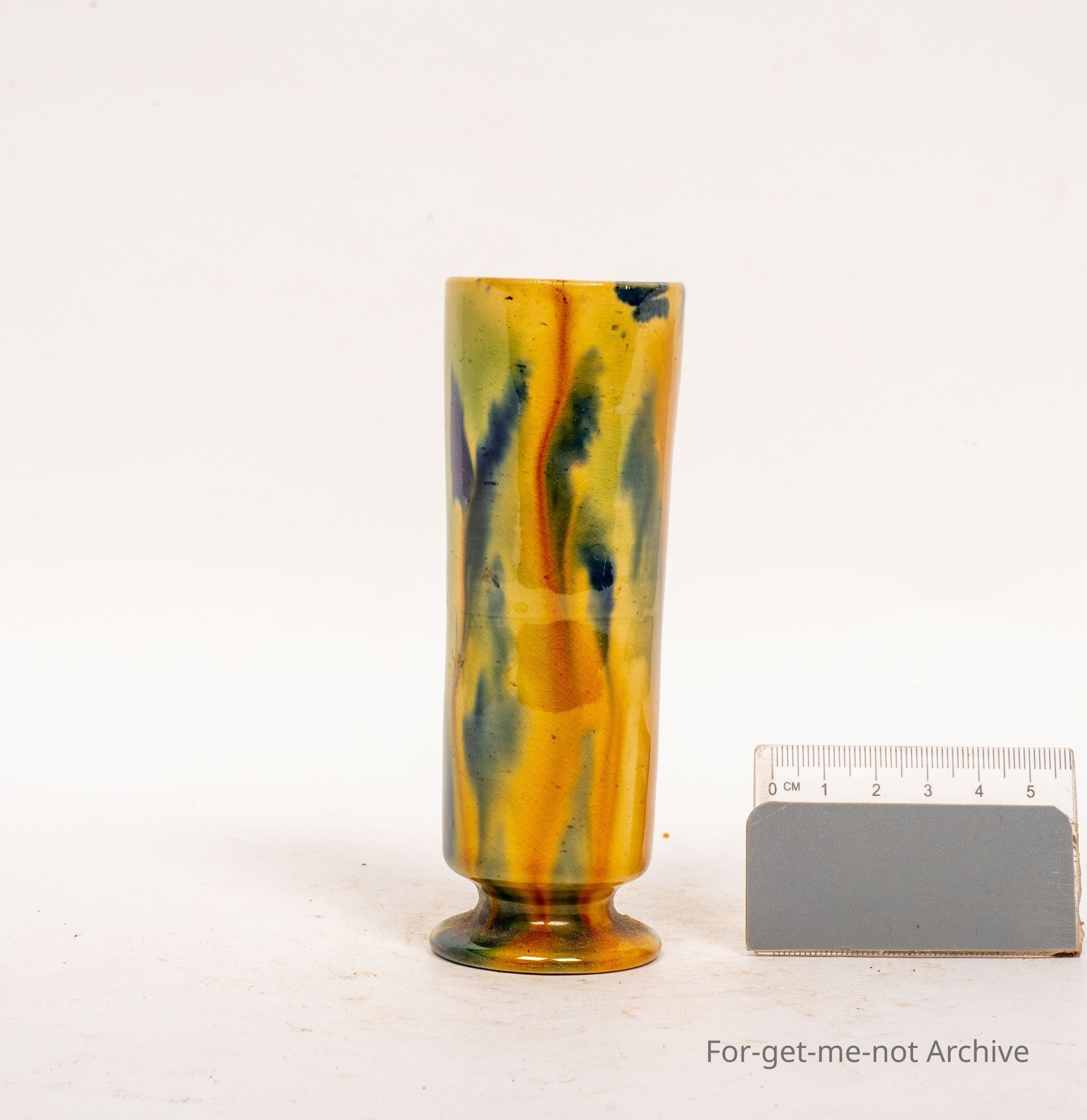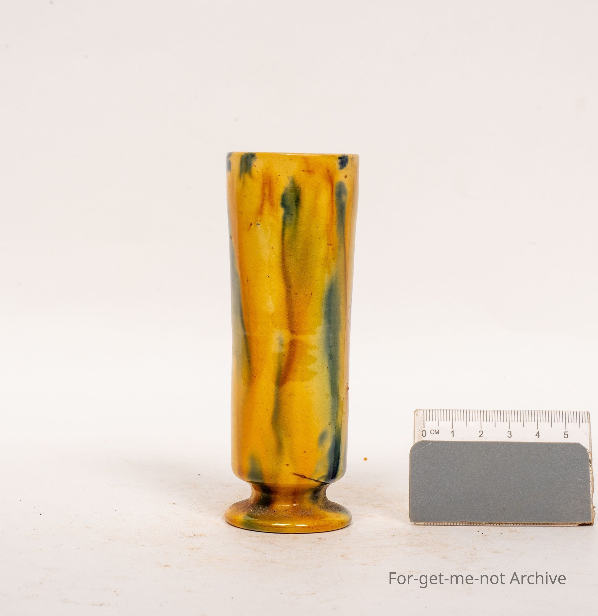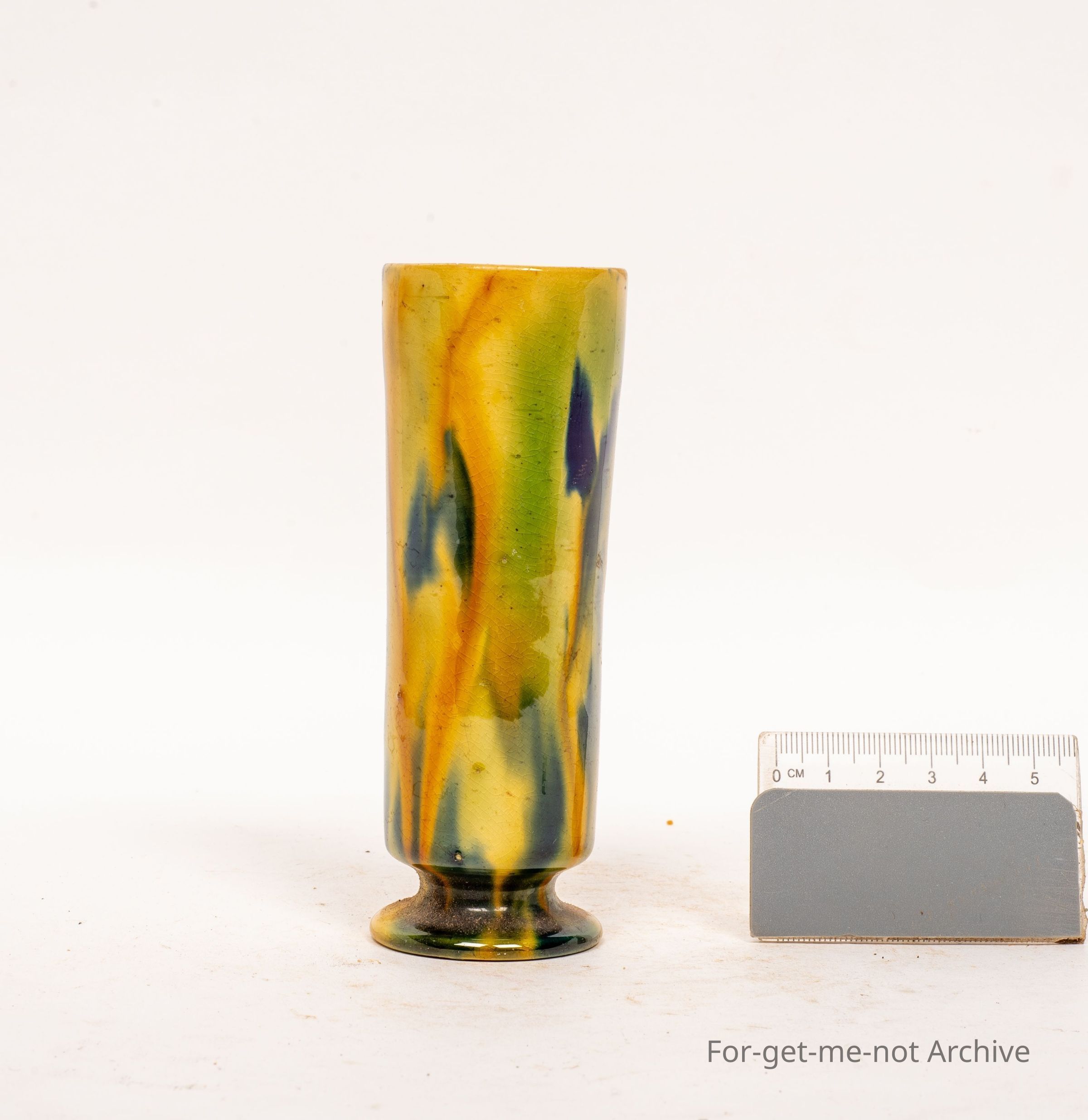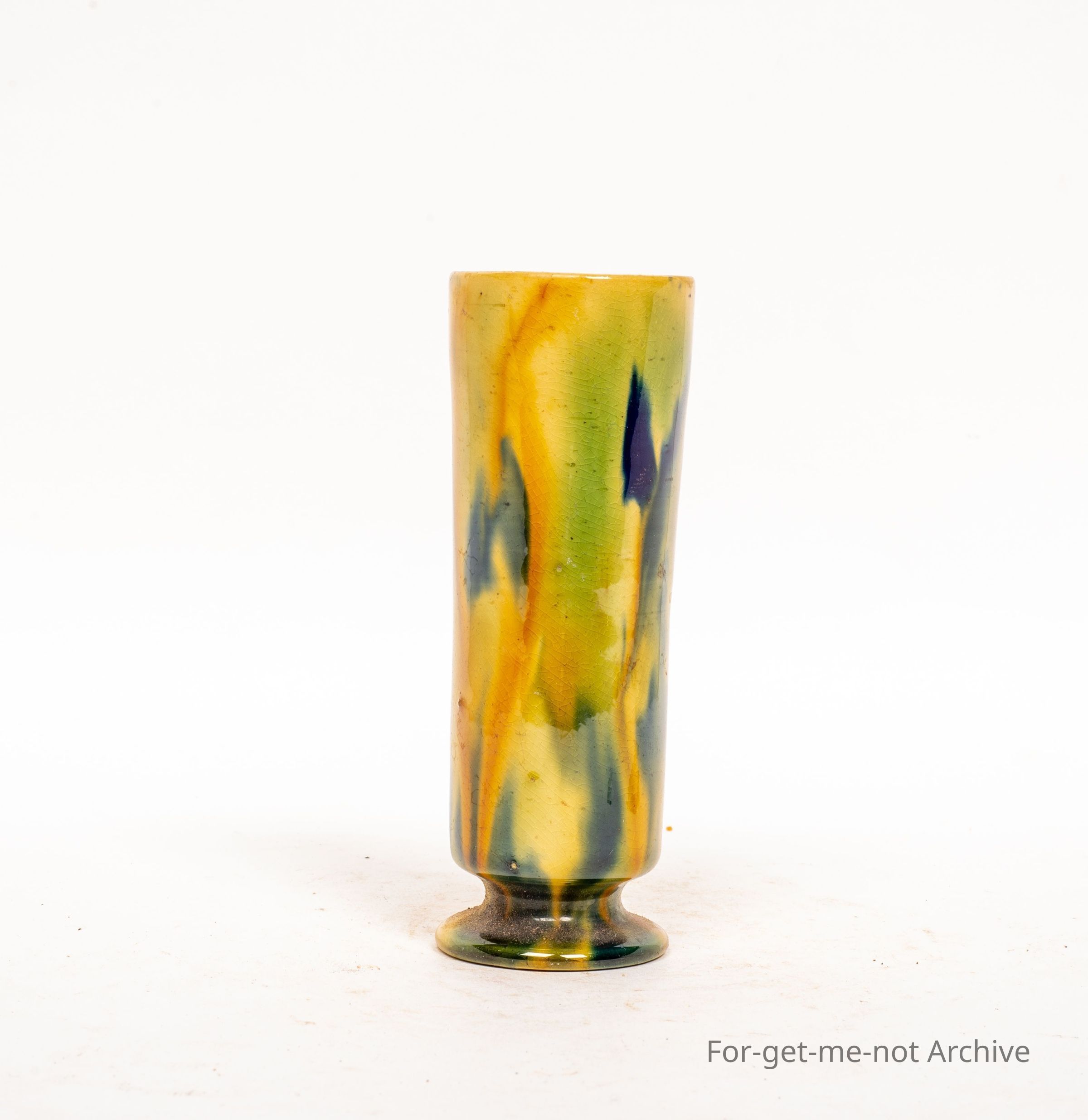 This is a small cylindrical vase, beautiful, almost majolica type glaze. No signature, but in very good condition.