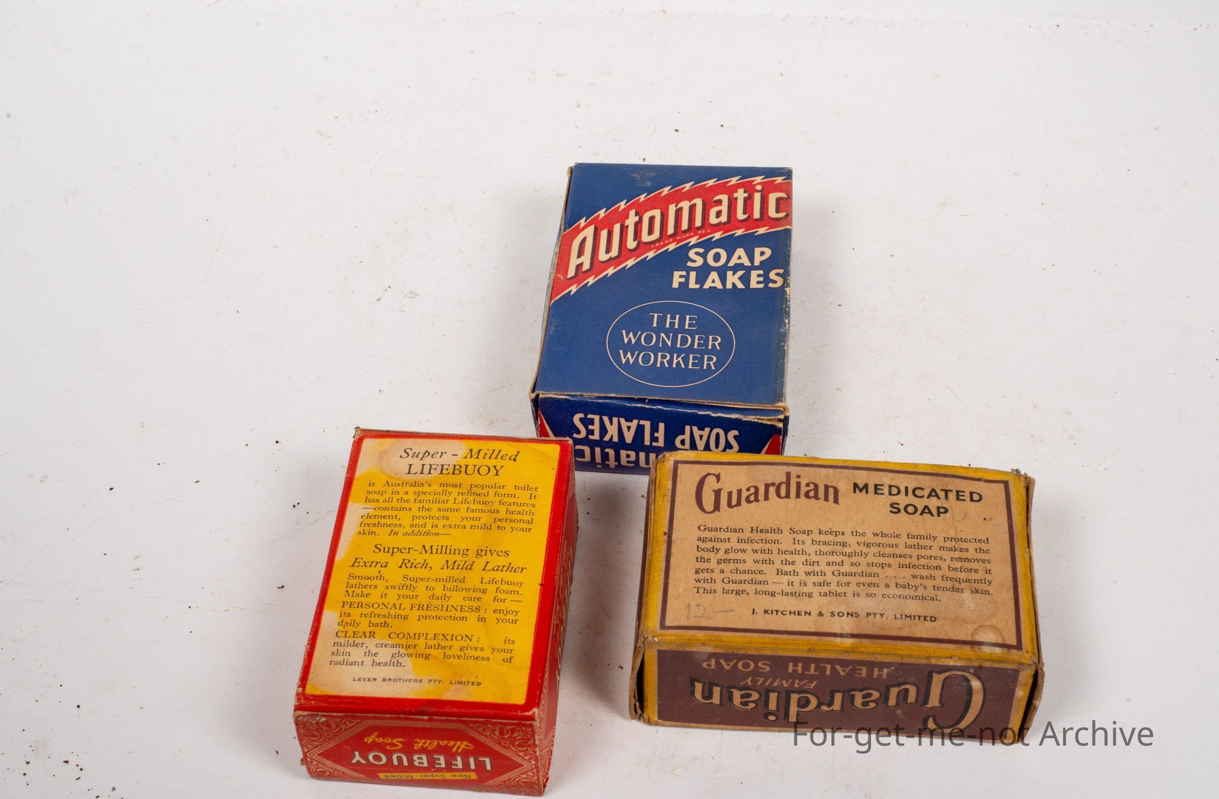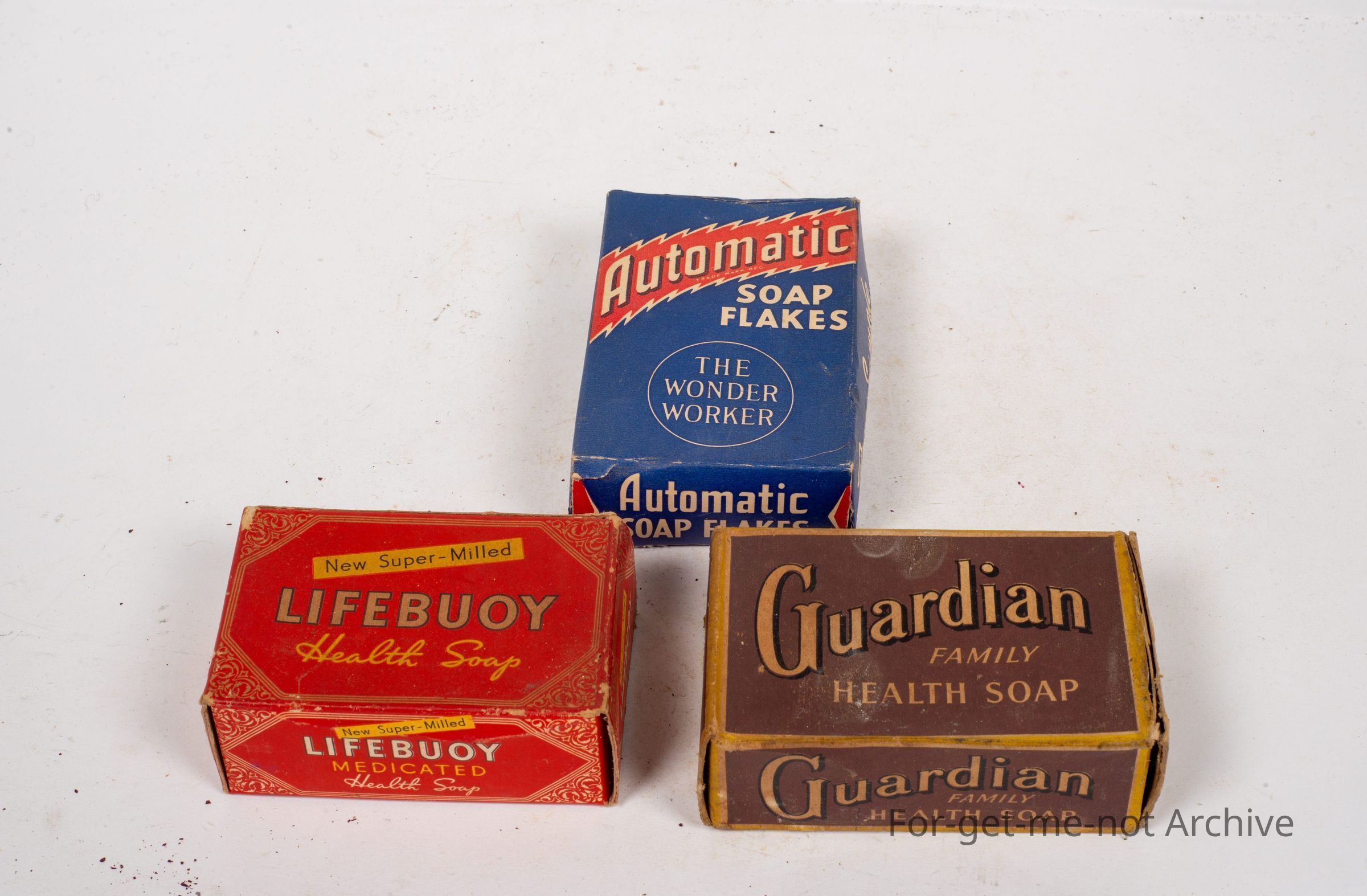 3 x Boxes of soap, , 1 Lifebuoy soap, 1 Guardian Family Health soap, the third one, automatic Soap, Flakes, the Wonderworker.