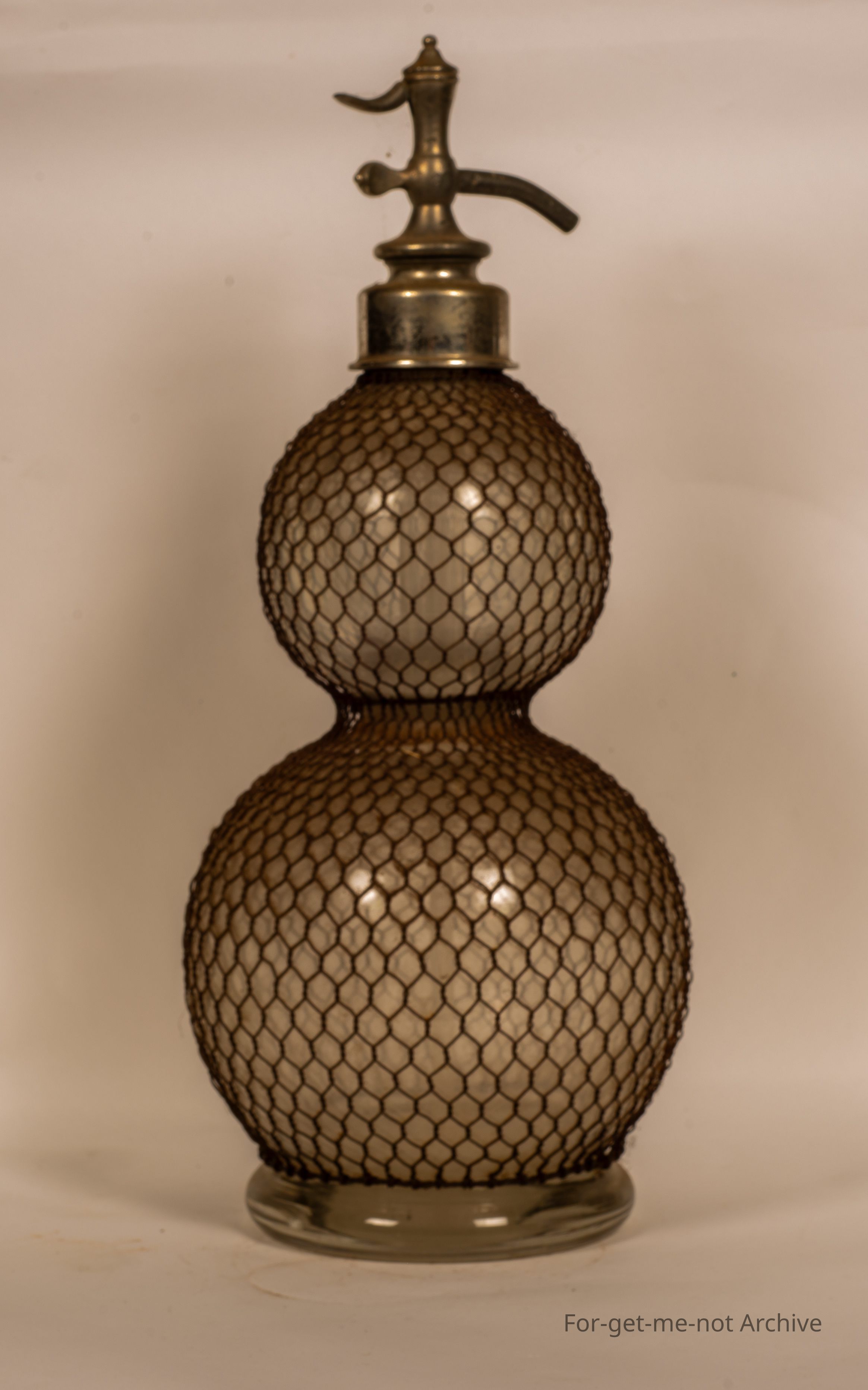 Soda siphon This one is a twin bowl, large at the bottom, small at the top, complete mesh safety net with the top, part all intact. Probably a more unusual one than the straight cylinder ones.Collection