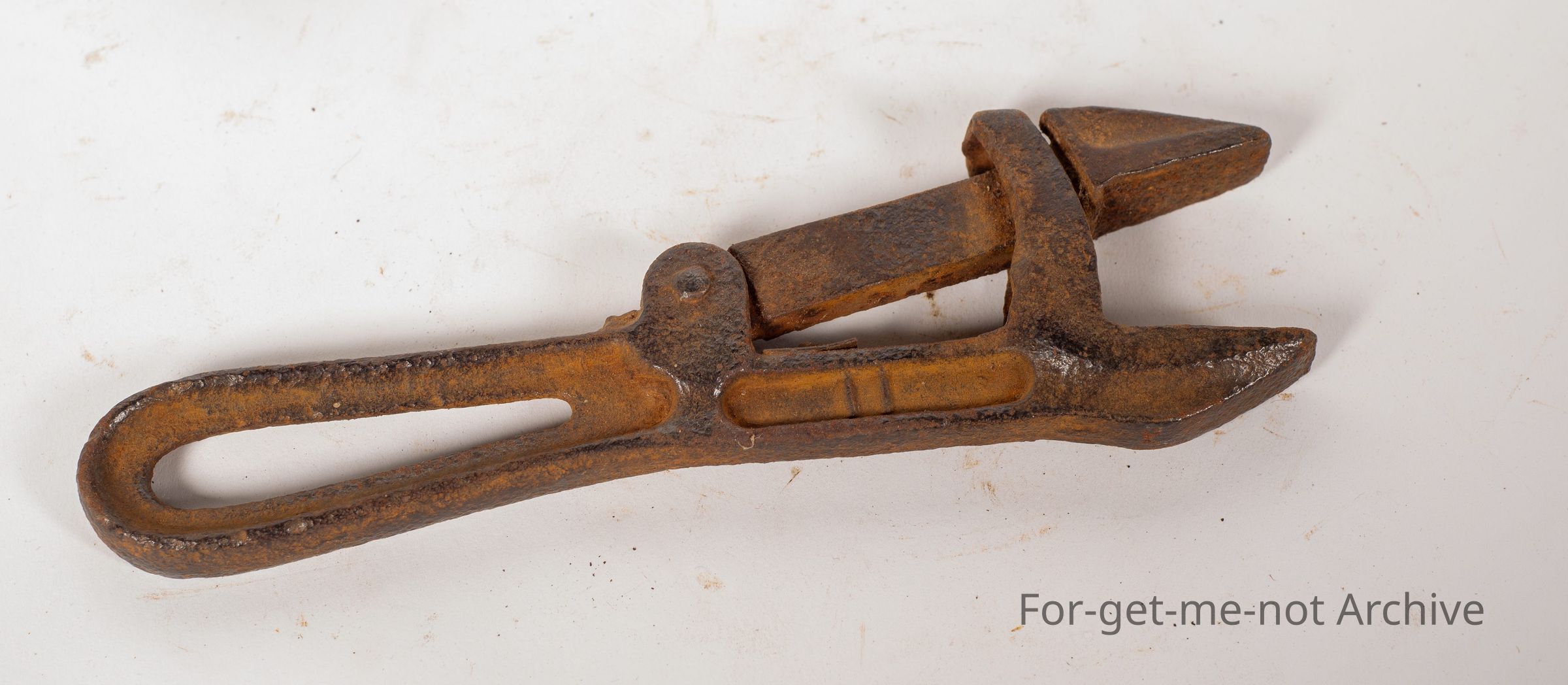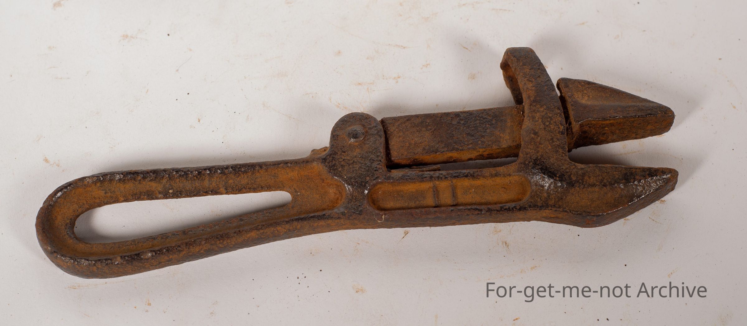 This is a very early reverse action spanner. The spring has been broken off on the movable jaw. Has number 11 but no maker's identification.