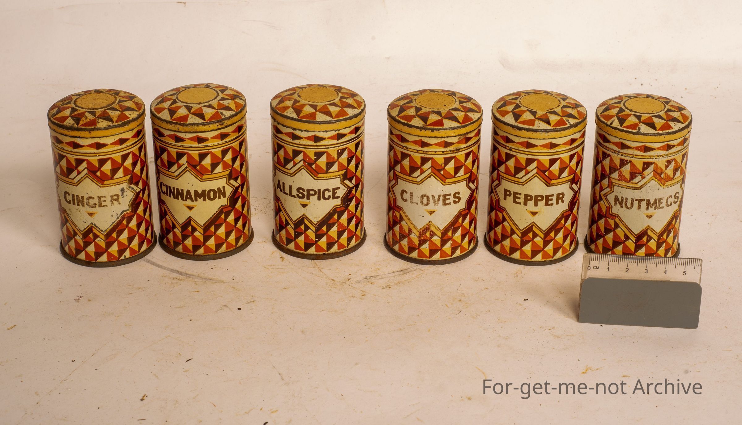 This is a group of spice tins, 6 in total, all in good order with lids,
