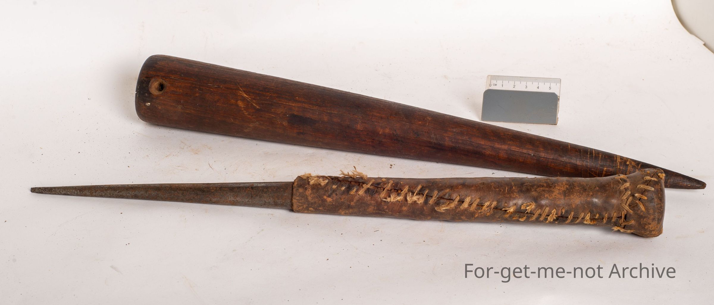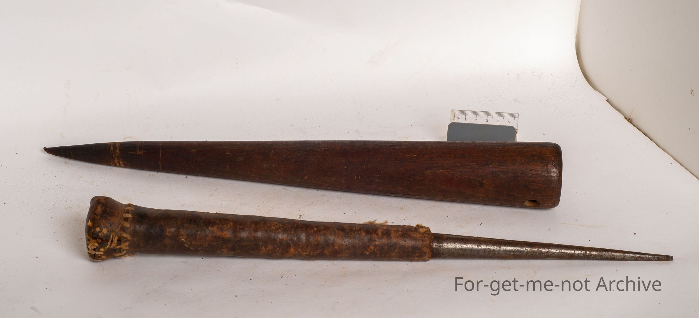 These are 2. The wooden one is called a fig, which is a wooden spike for rope making. The iron one is referred to as a marlin spike for the same purpose, but making, wire cable or wire rope from cable. Neither of these tools are used anymore, but these are a relic from an earlier time of rope and cable making.Collection