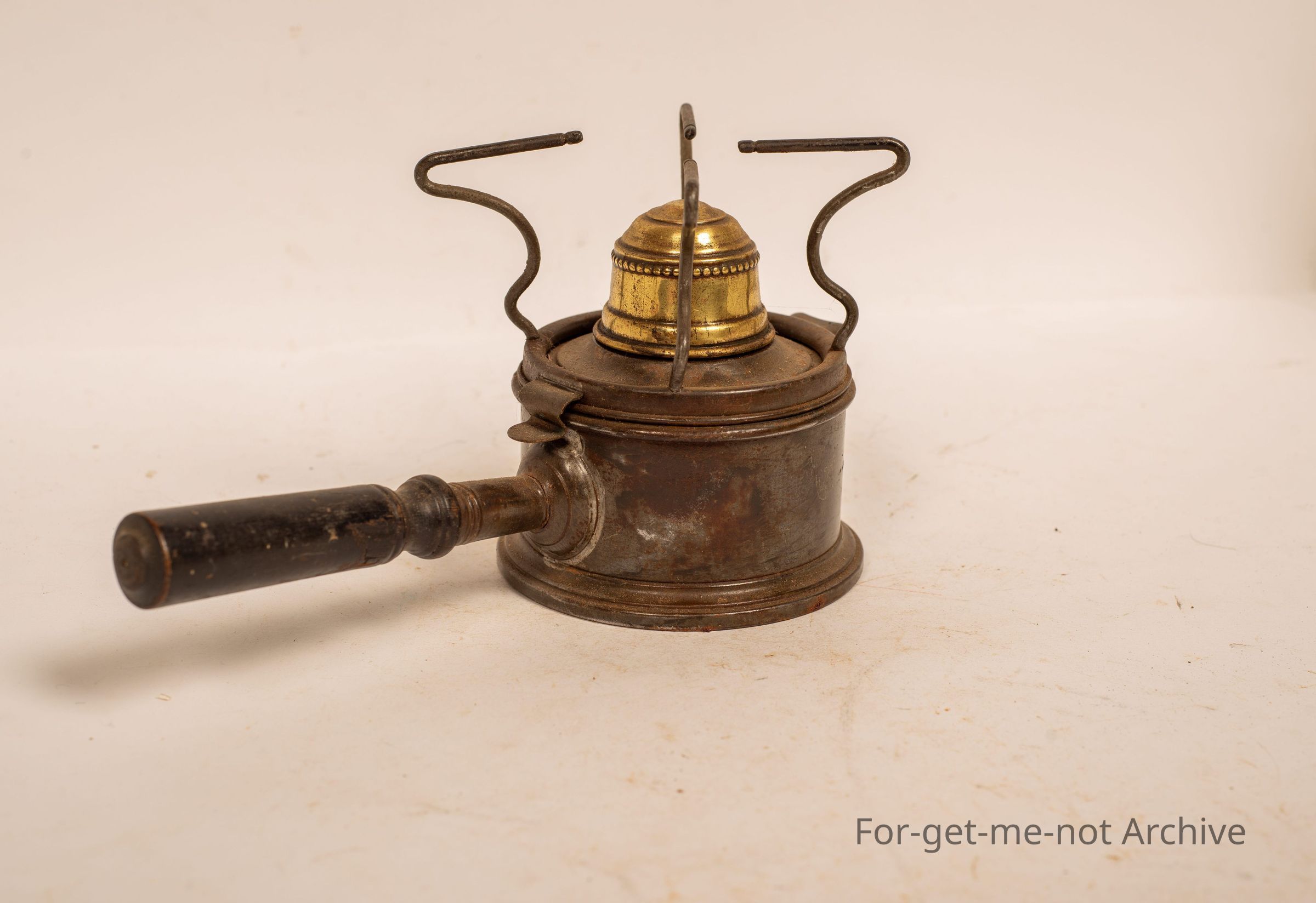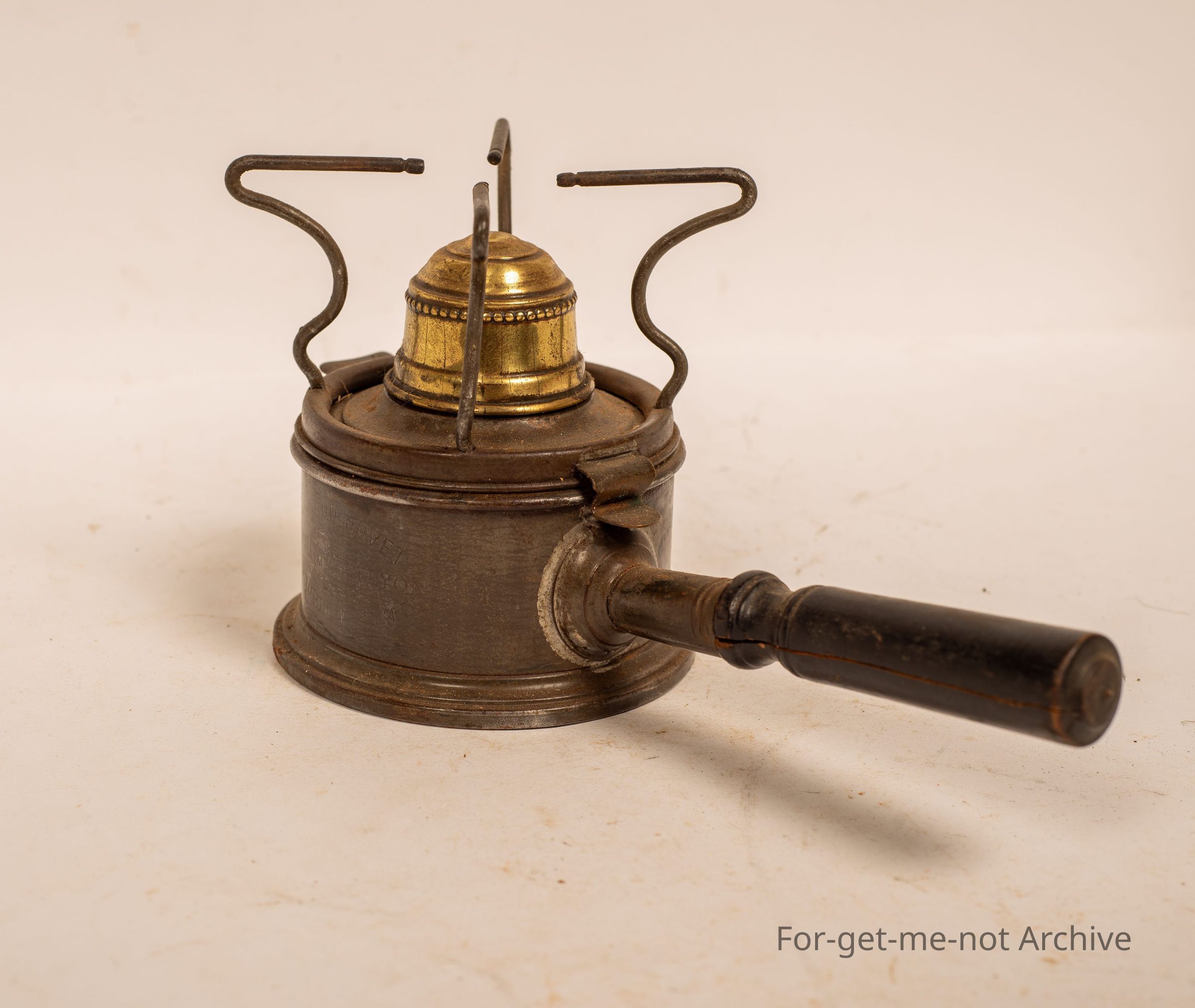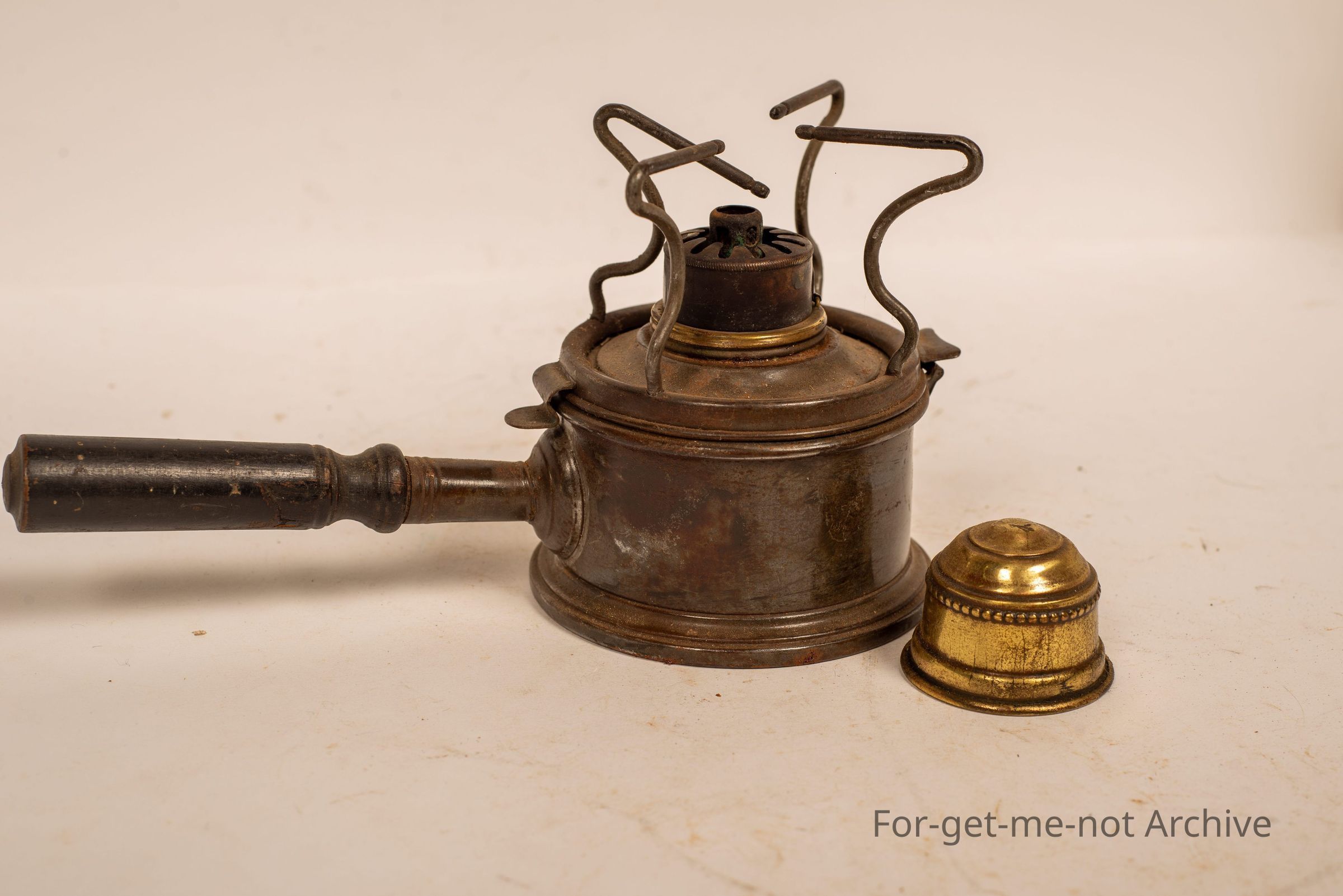 This is a small spirit burner with a wooden handle, with the burner cap, which is brass still with it. It's called the Reichhold Charvet. Must be in French or something. Can't read the rest. Anyway,Collection