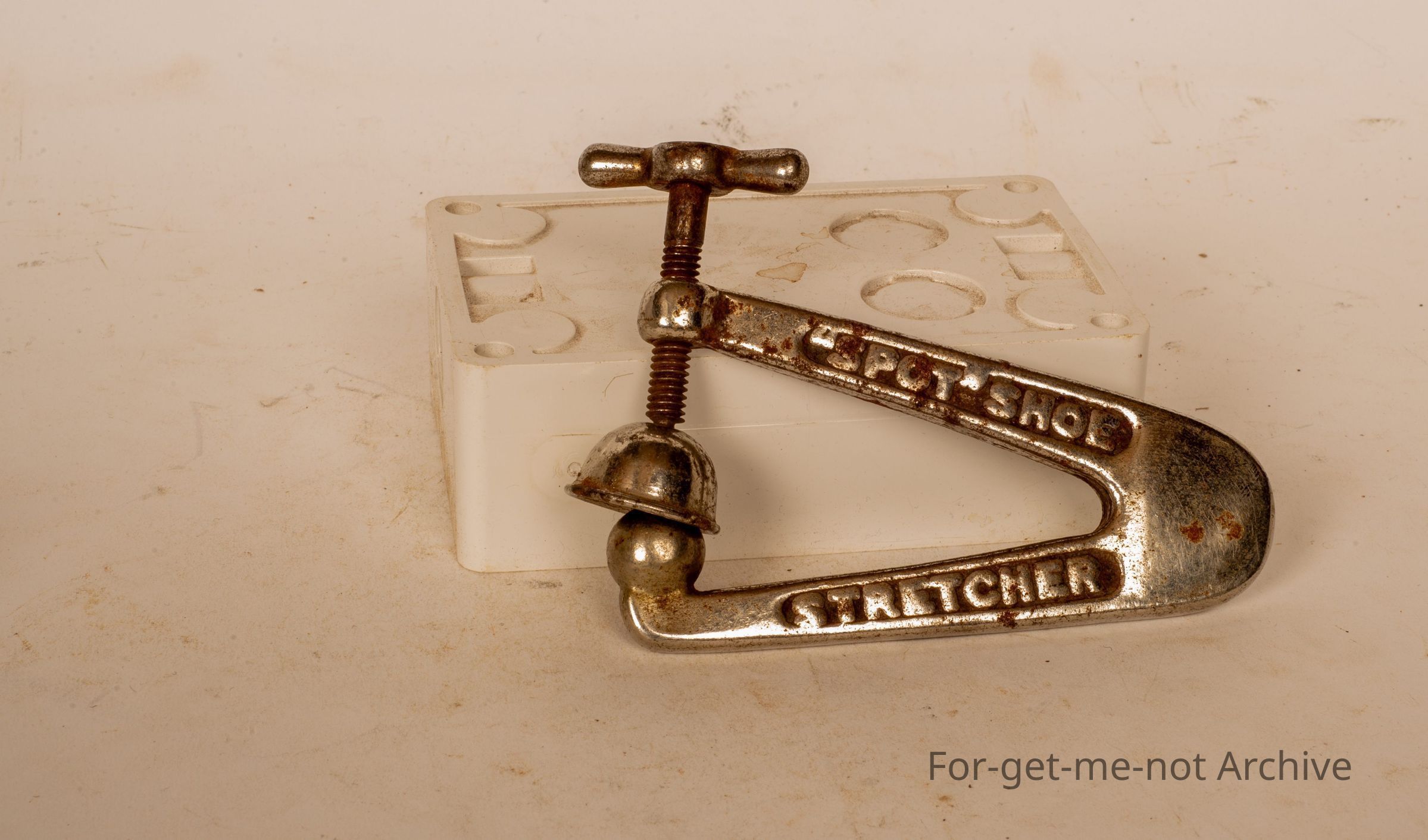 This is a small shoe stretcher called the Spot. This is made for children's leather shoes to get lumpy pieces out of the sole or the side. Made in London.