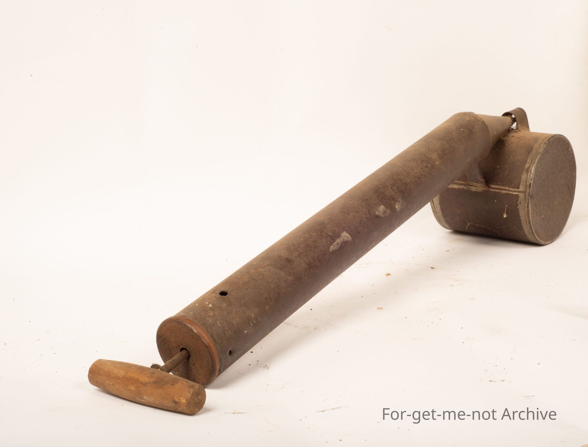 This is the second Riga garden spray, sprayer. All made of tin, from an early period. Riga was a Tasmanian company. This one is in good order, but it's different design to the earlier one.Collection