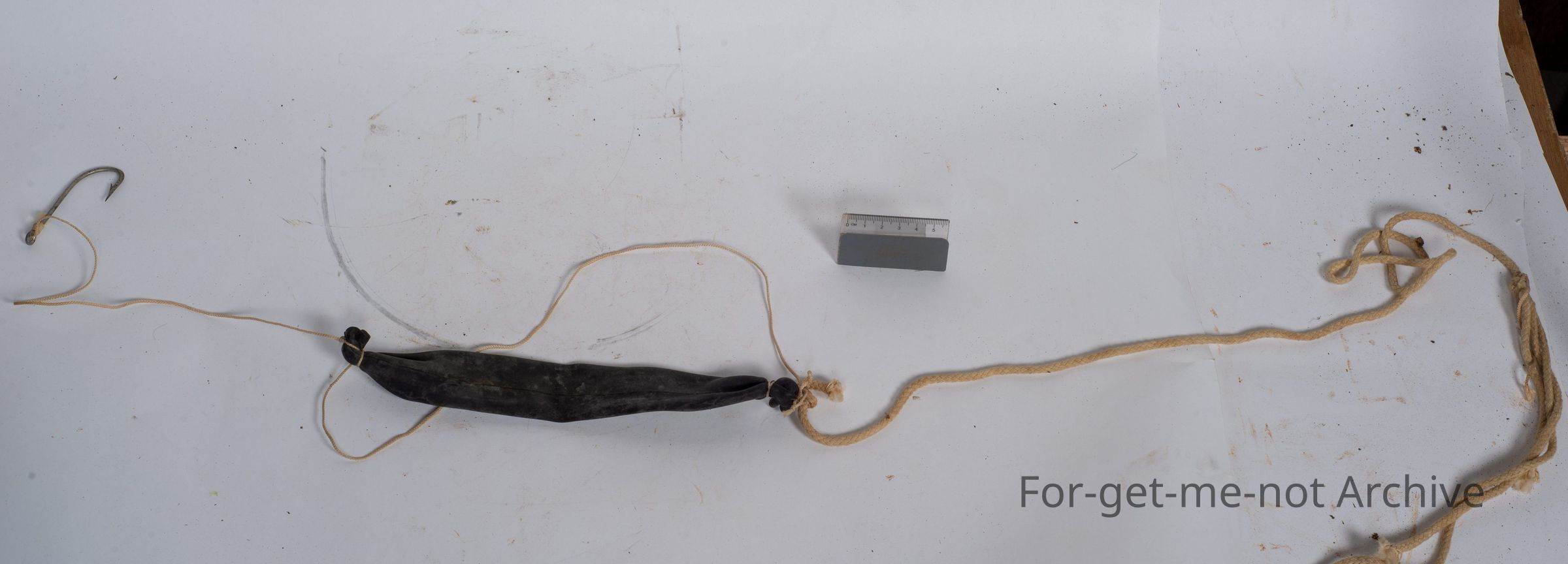 This is called a Springer. This was for catching Murray Cod. The rope was tied around a tree. The line that went into the water was attached to a short section of bicycle rubber tube. Sometimes a bell was attached to the rope that went to the tree. During the night, if a fish became attached, the bell would ring and the, elasticity on the rubber tube would wear the fish out eventually. These would not be permitted under today's, laws of fishing. This one was given to us by Tom Reedy at Baringa.Collection