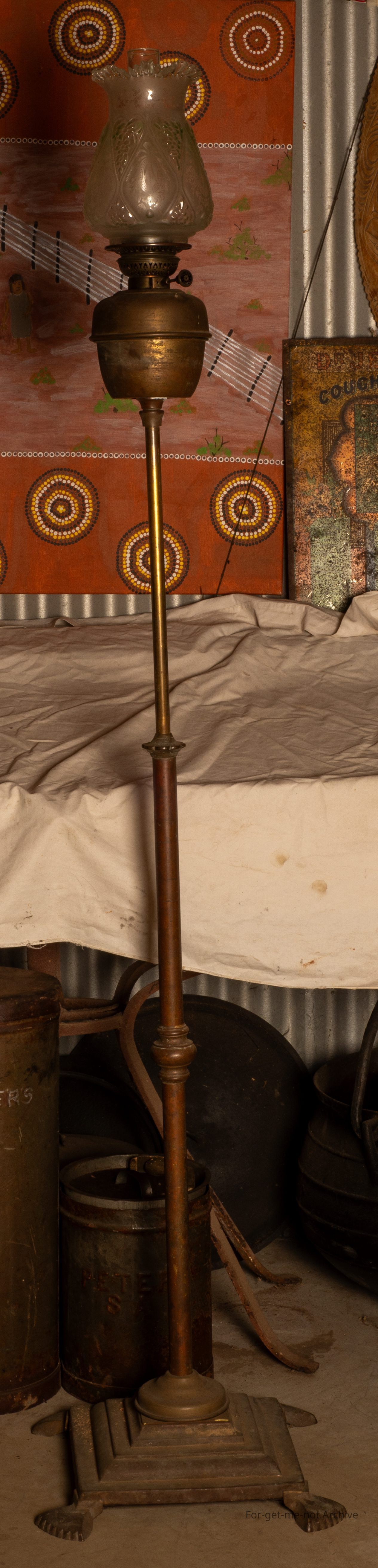 This lamp is known as a standard lamp, a domestic lamp. It's got variable height on a telescopic tube. The background of this lamp is it originated from the owner of the Maldon Brewery, which part of his, domestic belongingsCollection