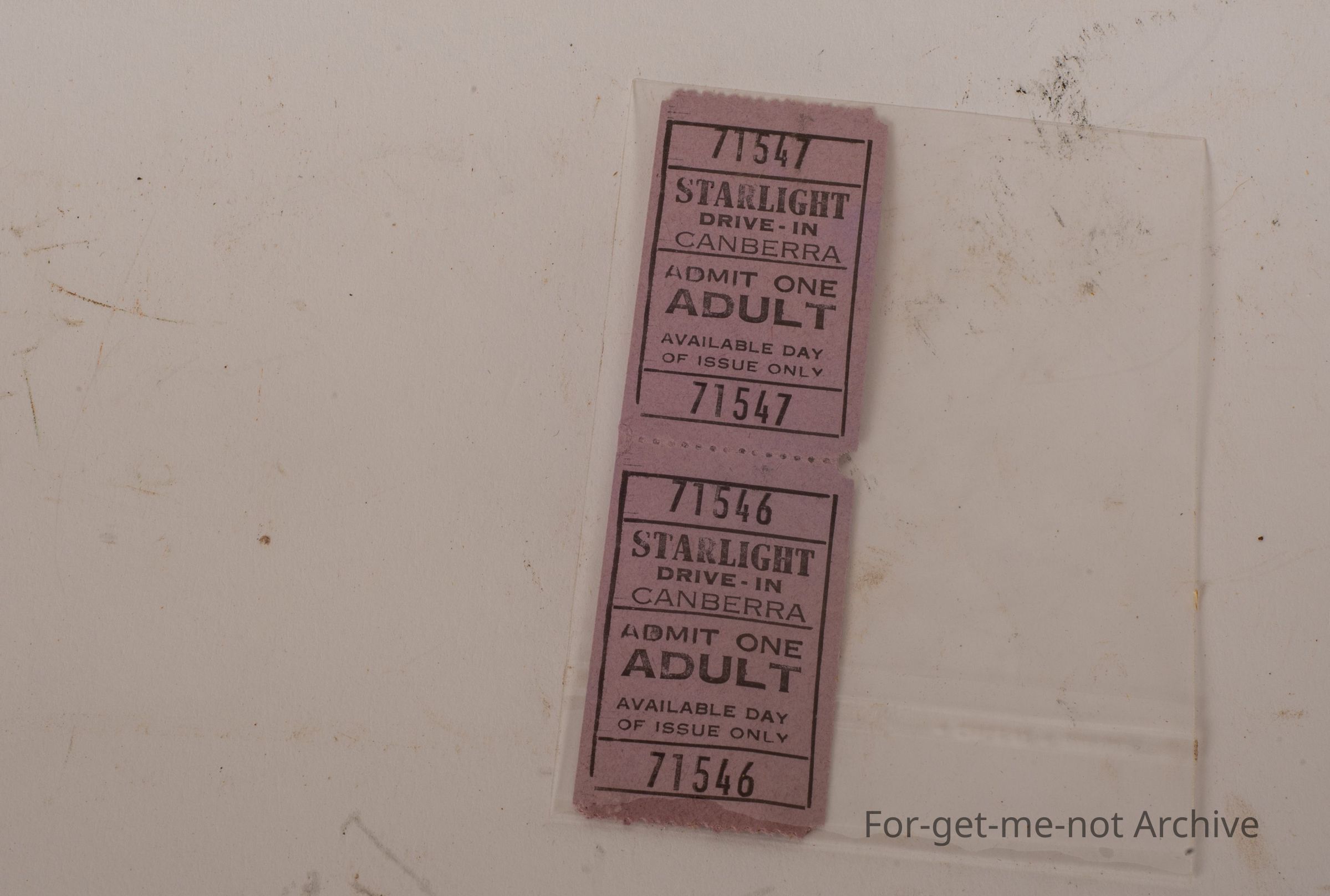 These are tickets for the Starlight Drive In Canberra. Admit 1 adult. Don't know whether that drive in is still going, but the tickets are in unused conditionCollection