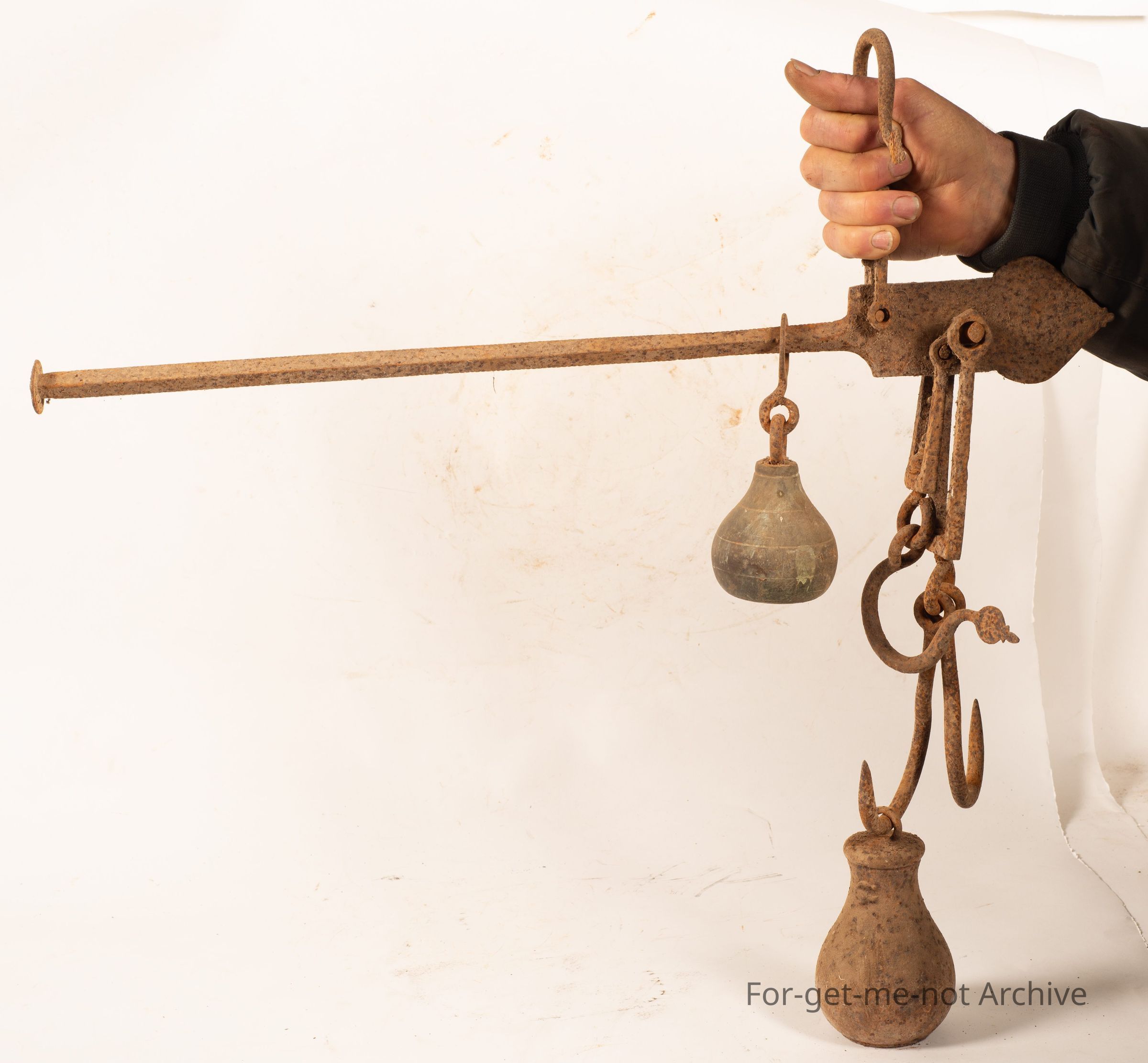 These are a set of, balance weights called Steelyard Scales. Most commonly made by Ivory. They have the capacity to weigh quite extraordinary amounts on a large balance bowl, was a bit different because of a large brass weight.Collection