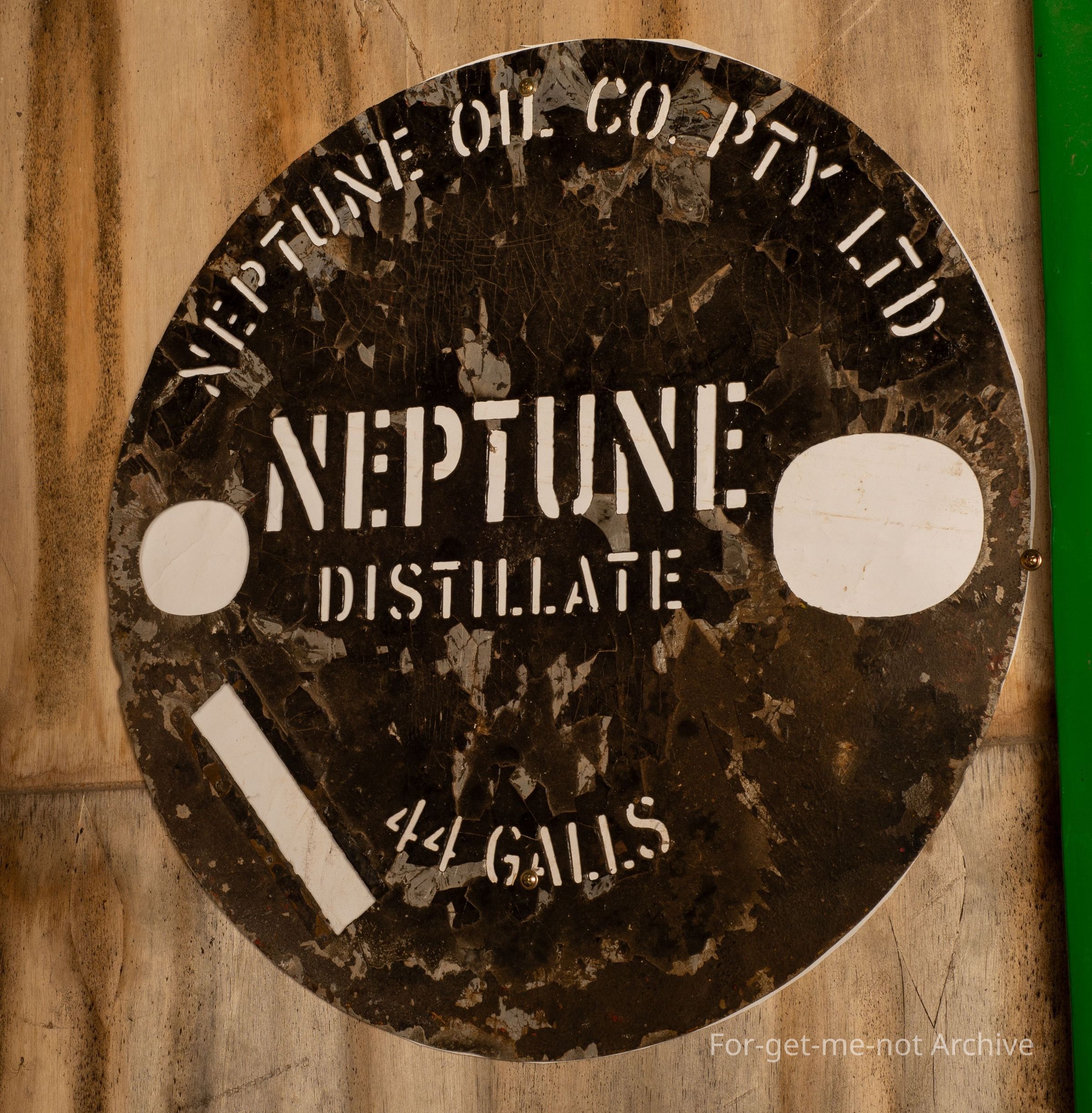 This is a lightweight tin stencil that was used on the top of 44 gallon drums. This one is advertising Neptune Diesel. Quite collectible for fuel people. This one in good condition