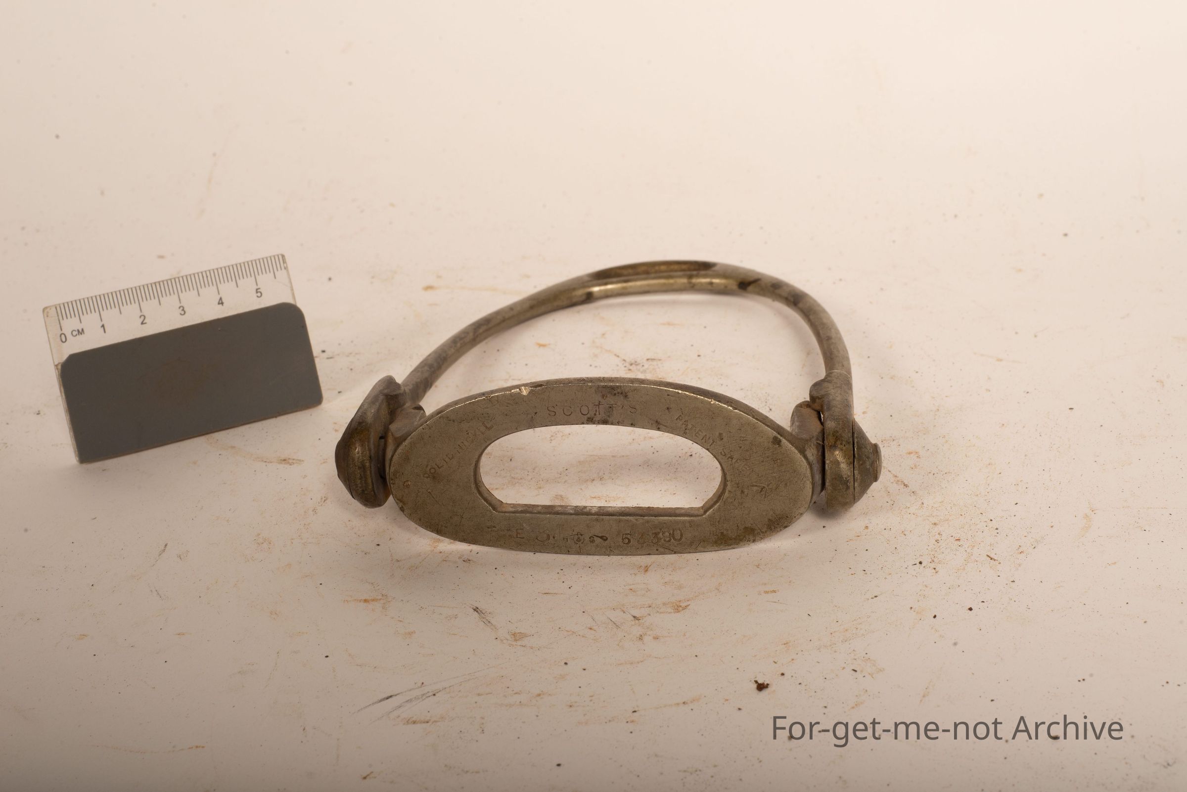 This is, a safety stirrup to release the foot when you fell off a moving horse. All sorts of different mechanisms. This one does have stamping on the bottom. The stamping says, solid nickel, Scotch patent, with the metallic numbers, stamped as well. So quite a good qualityCollection