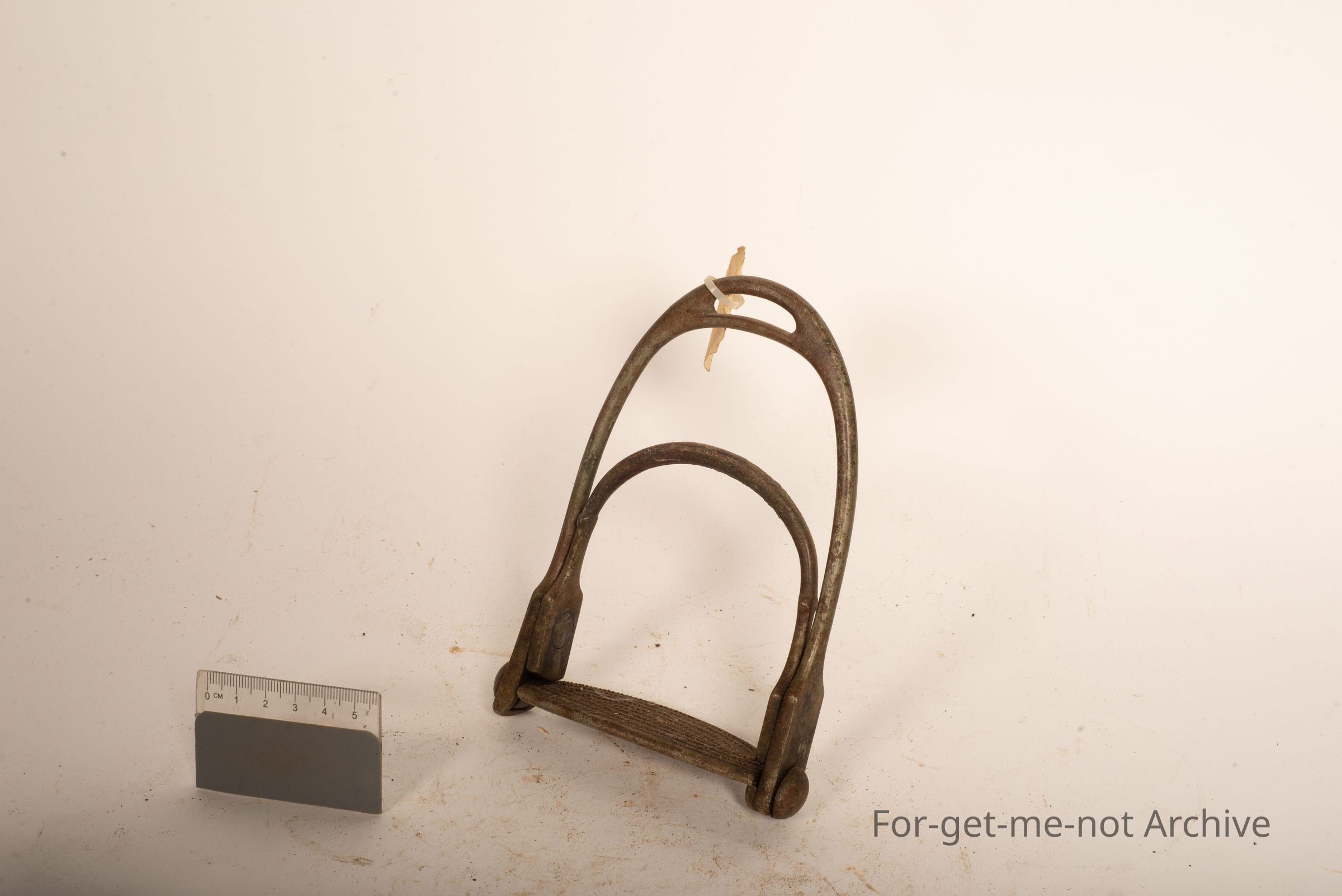 Horse rider safety stirrup. This is another one of the ladies side saddle stirrups, where only one was used. This one is stamped at the bottom. Nickel silver, in very good condition, would polish up beautifully.Collection