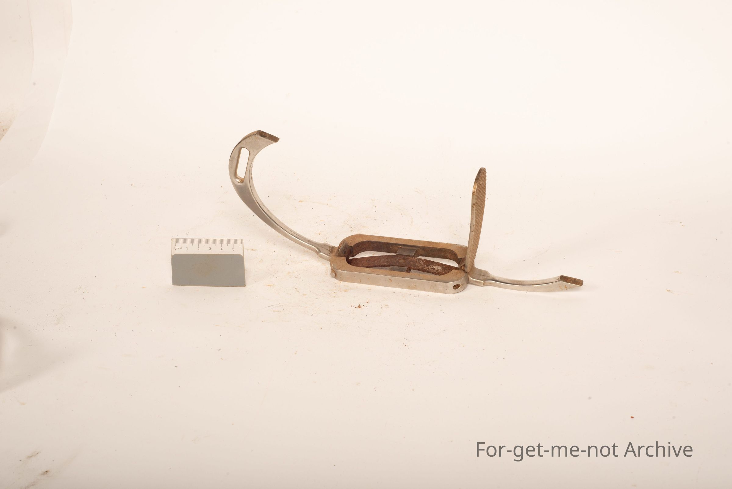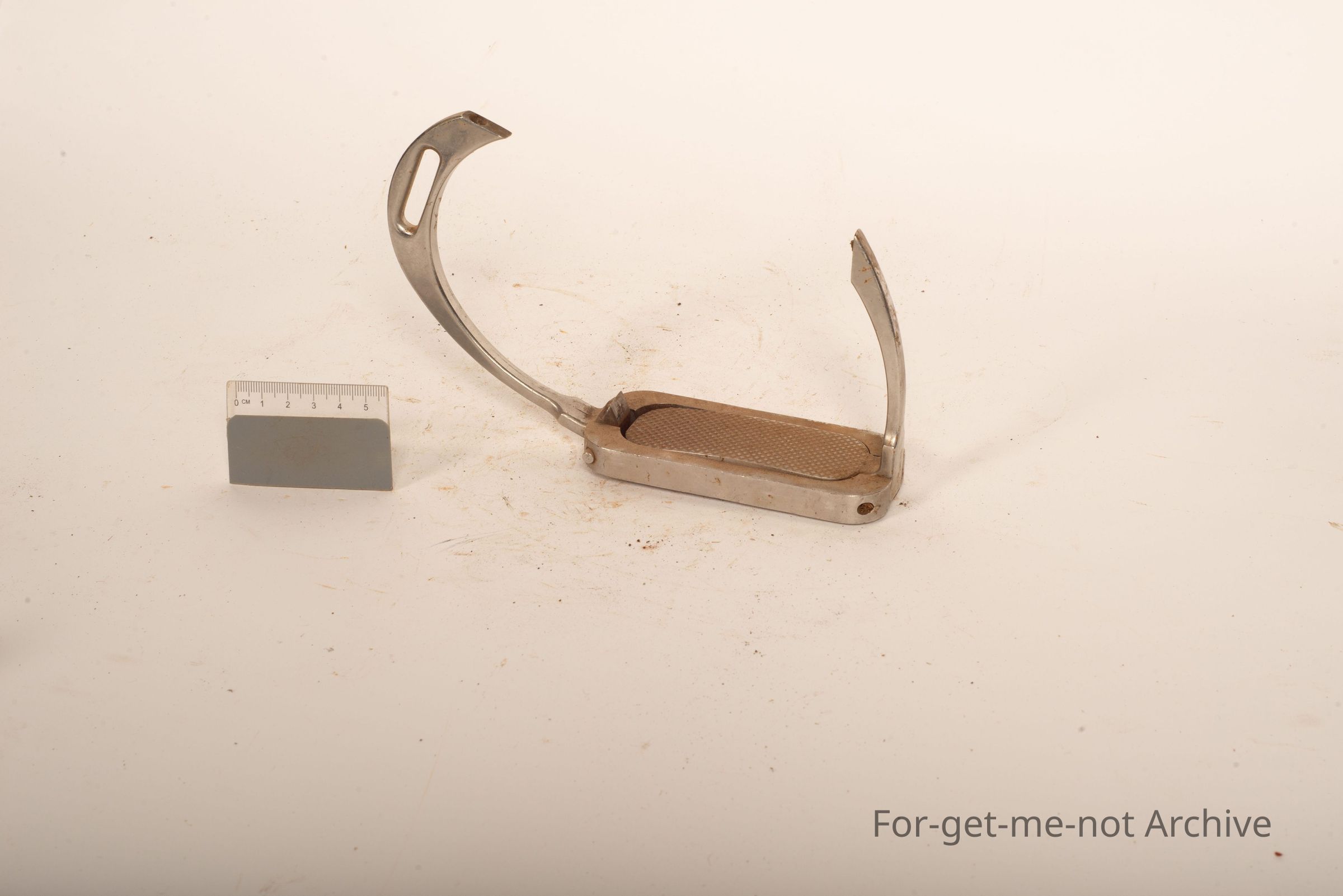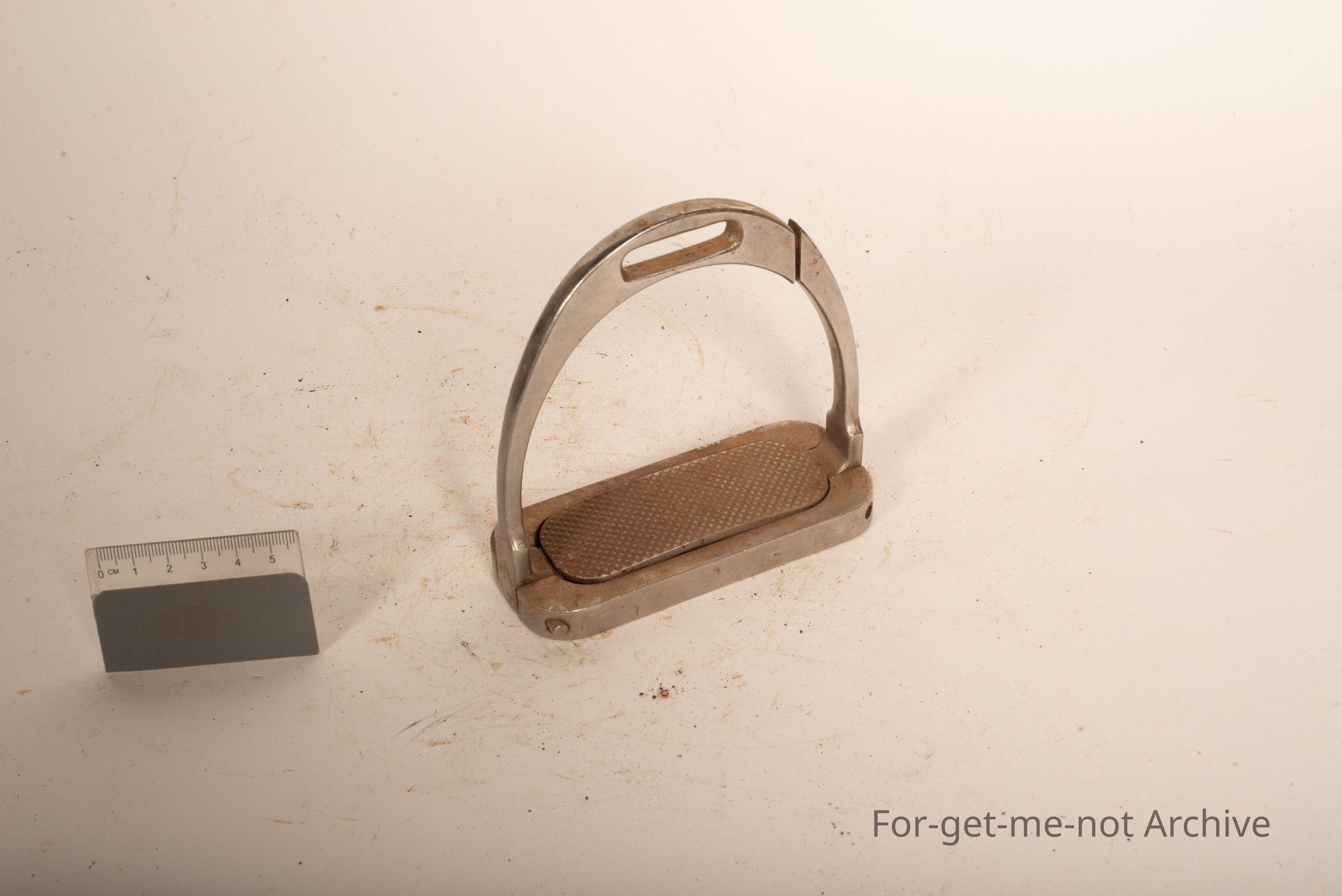 A cast iron men's safety stirrup. This one has quite a bit of engineering built into it. A breakaway side that flicks the foot, out of the stirrup by the use of a spring loaded plate in the bottom.Collection