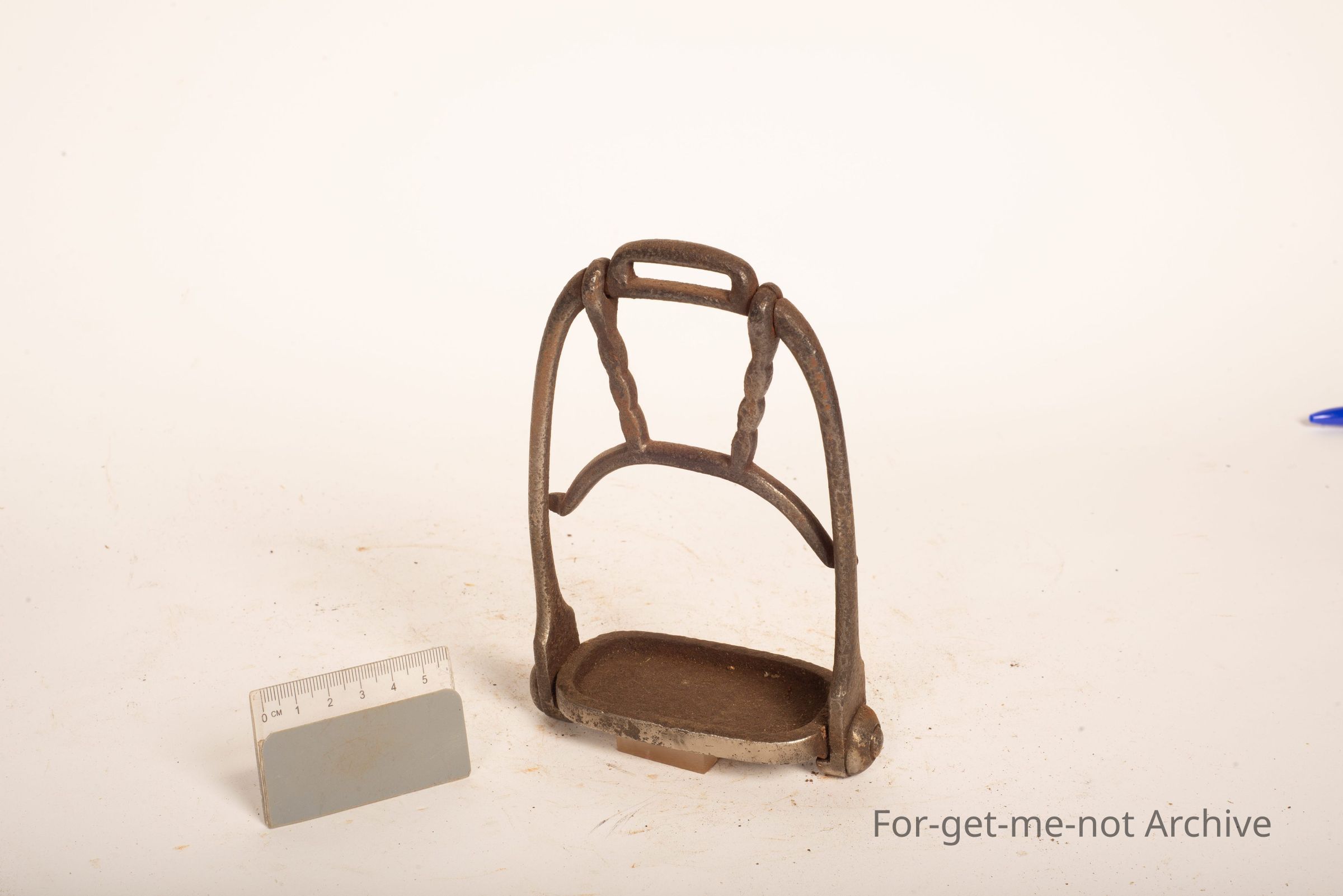 This is another iron safety stirrup for horse rider. This one, once again, has a fair bit of engineered, capacity about it. The bottom rotates with a, spring part at the top value