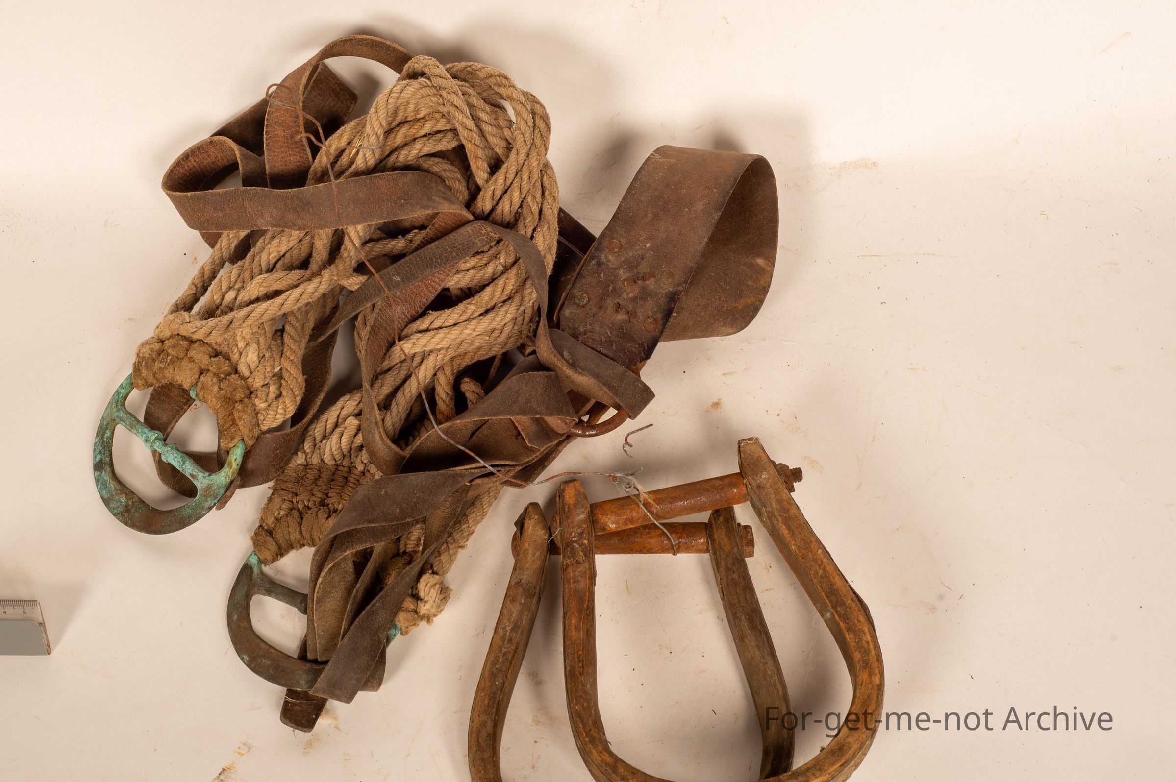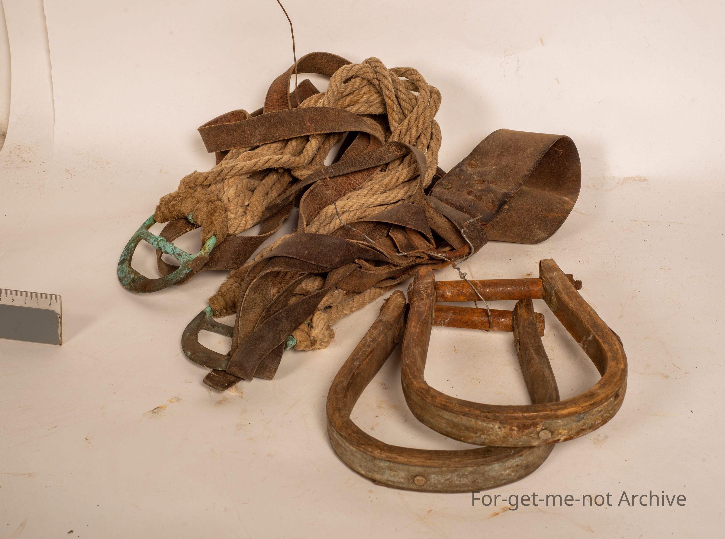This is a set of wooden stirrups, Origins America, this is the way they make them over there, with an American girth strap. Quite complex, large size but still usable.