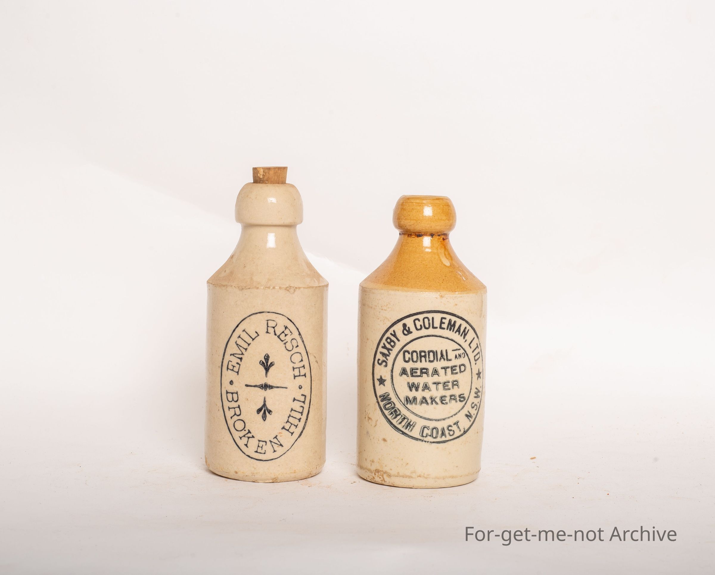 Group of 2 bottles. 1 from Saxby and Coleman, North Coast, New South Wales,. The second one, Emile Resch, Broken Hill