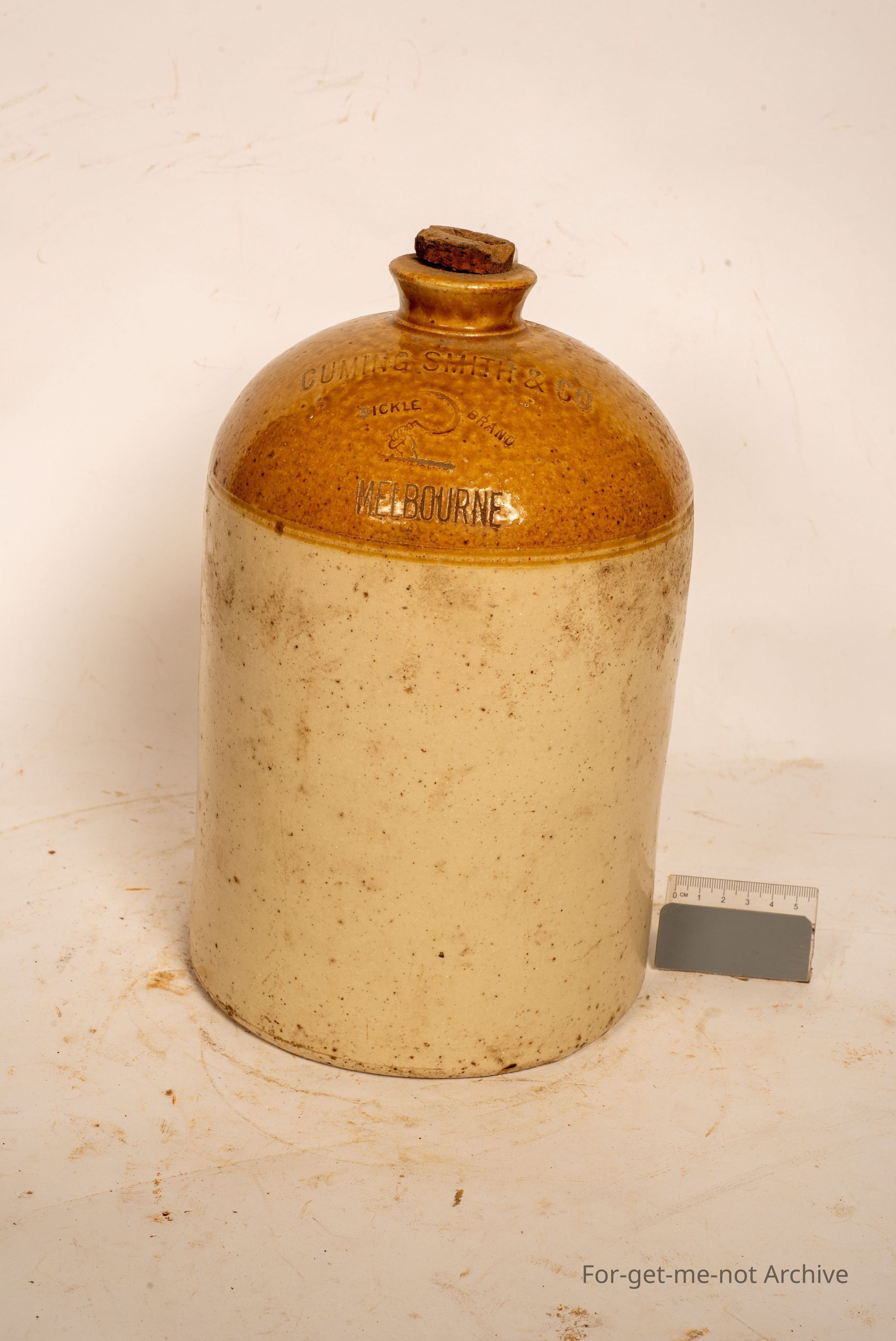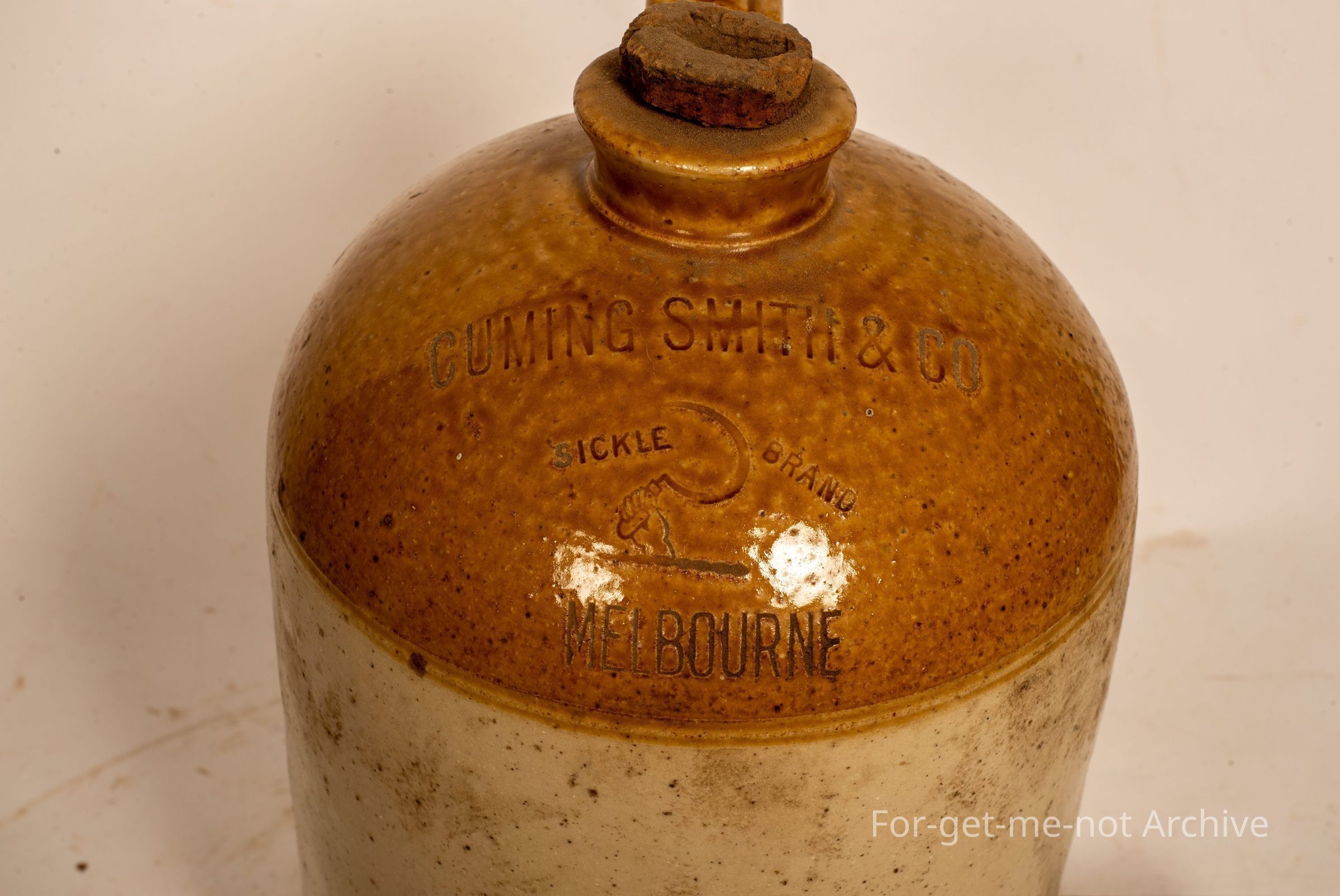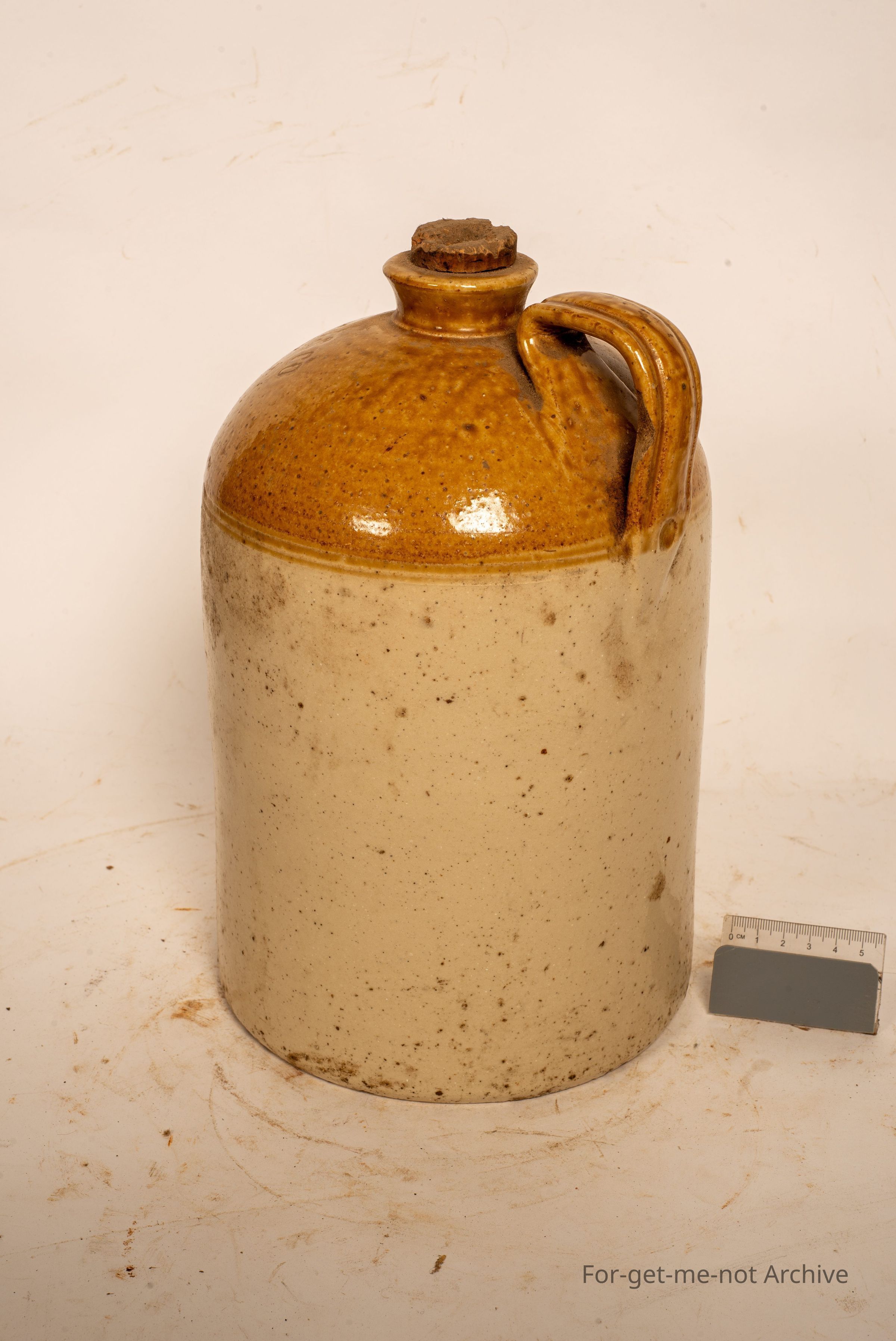 Lovely handle. No chips to the neck. Cork in it. No pottery stamp, but would be more than likely attributed to, Hoffman, Melbourne.Collection