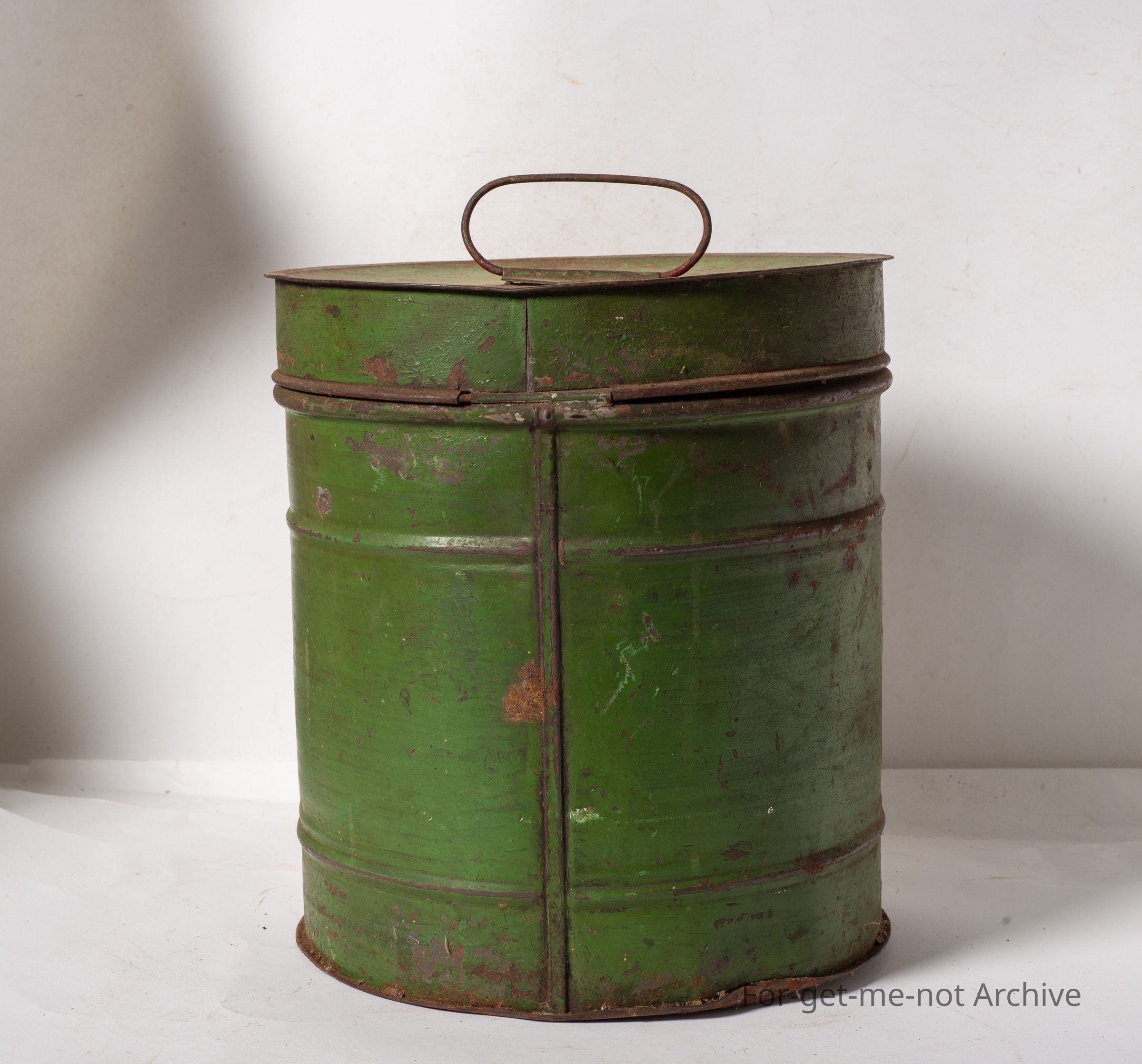 A storage canister with a hinged lid and catch, with a transfer on the front. Sugar. This is not in very good condition.