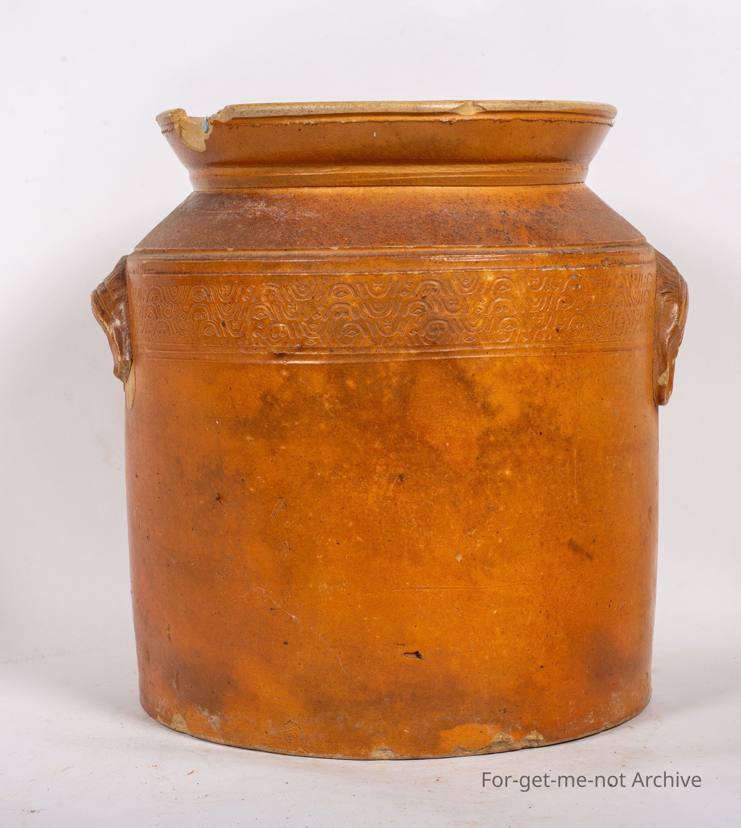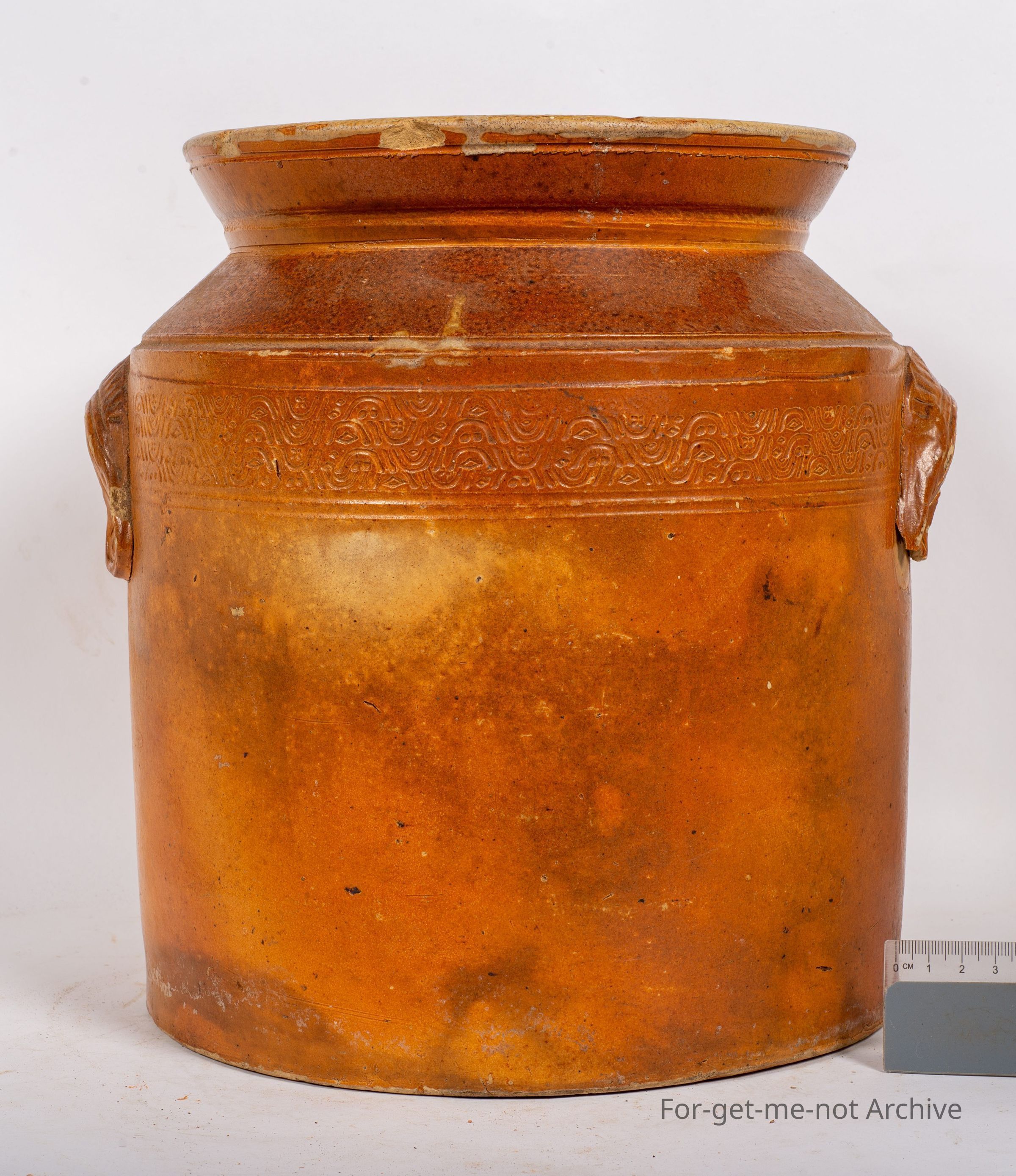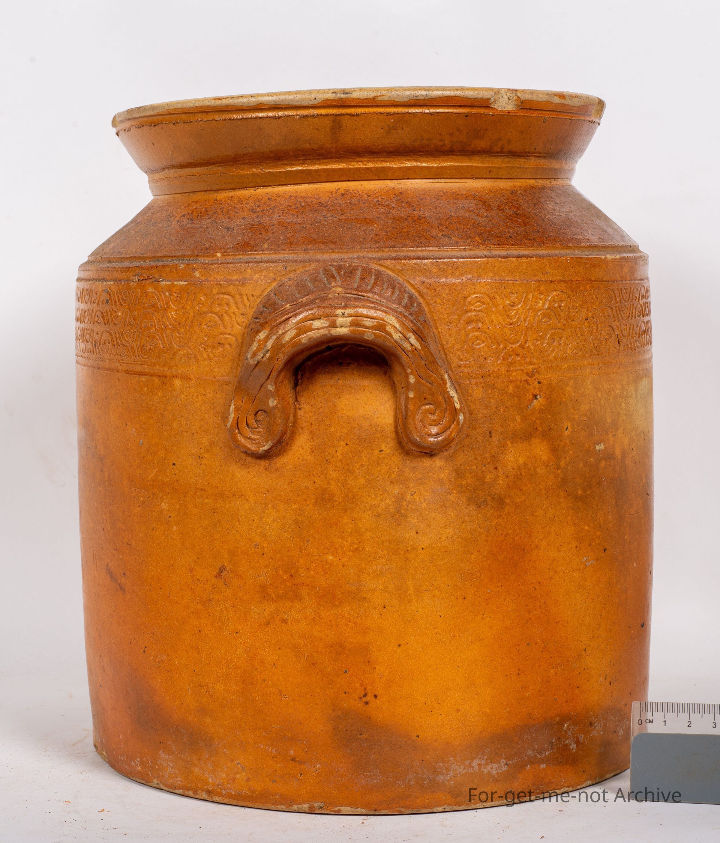 This is quite an important piece. This has been attributed. This is a storage jar. No lid, beautiful decorative cover work around top shoulder, quite decorative ear type handles, attributed to Gobleed Zawina, 1844 to 19 Zarrina. 18/44 TO 1916, from Logothill, South Australia. Quite a rare piece,Collection