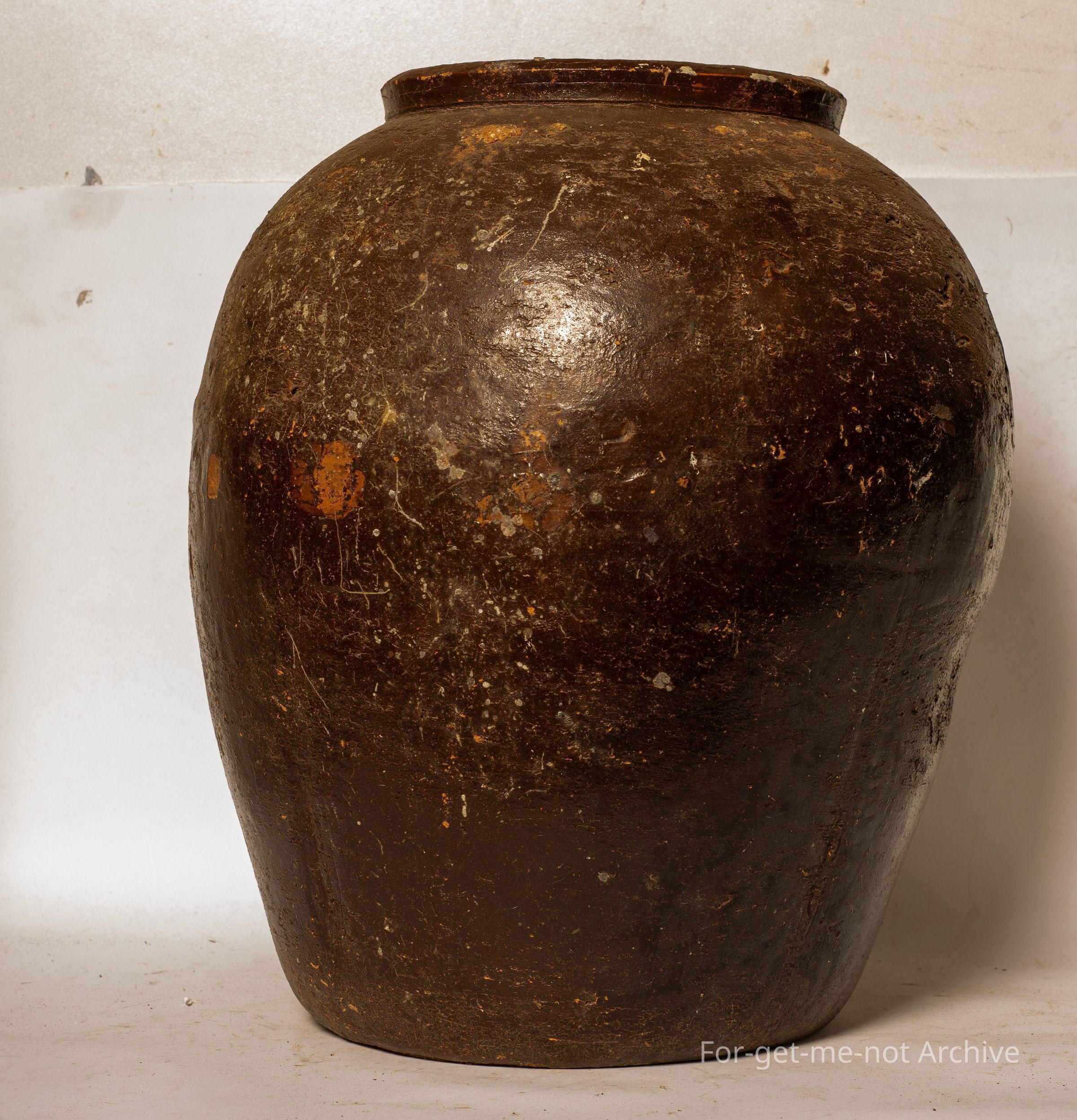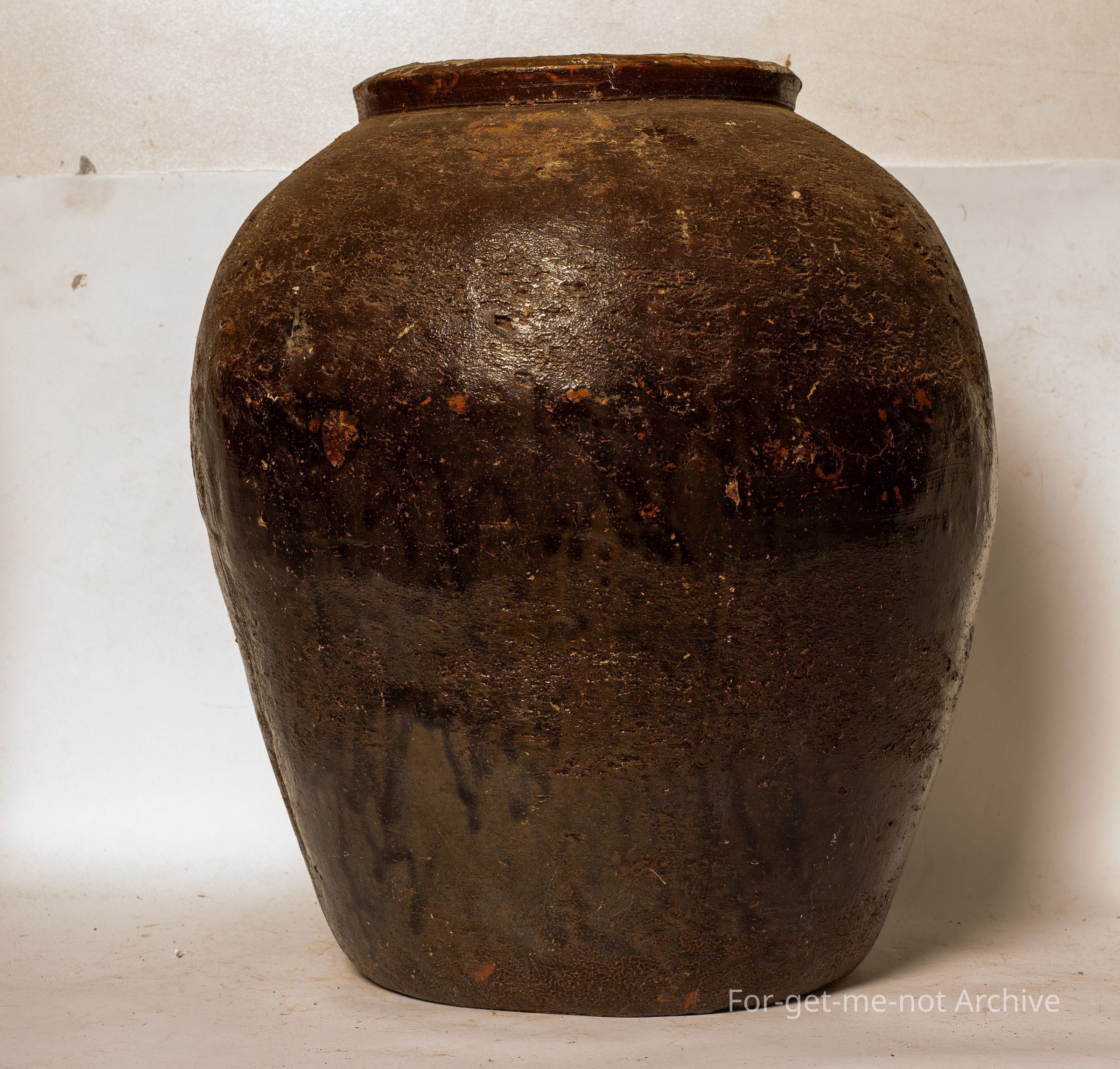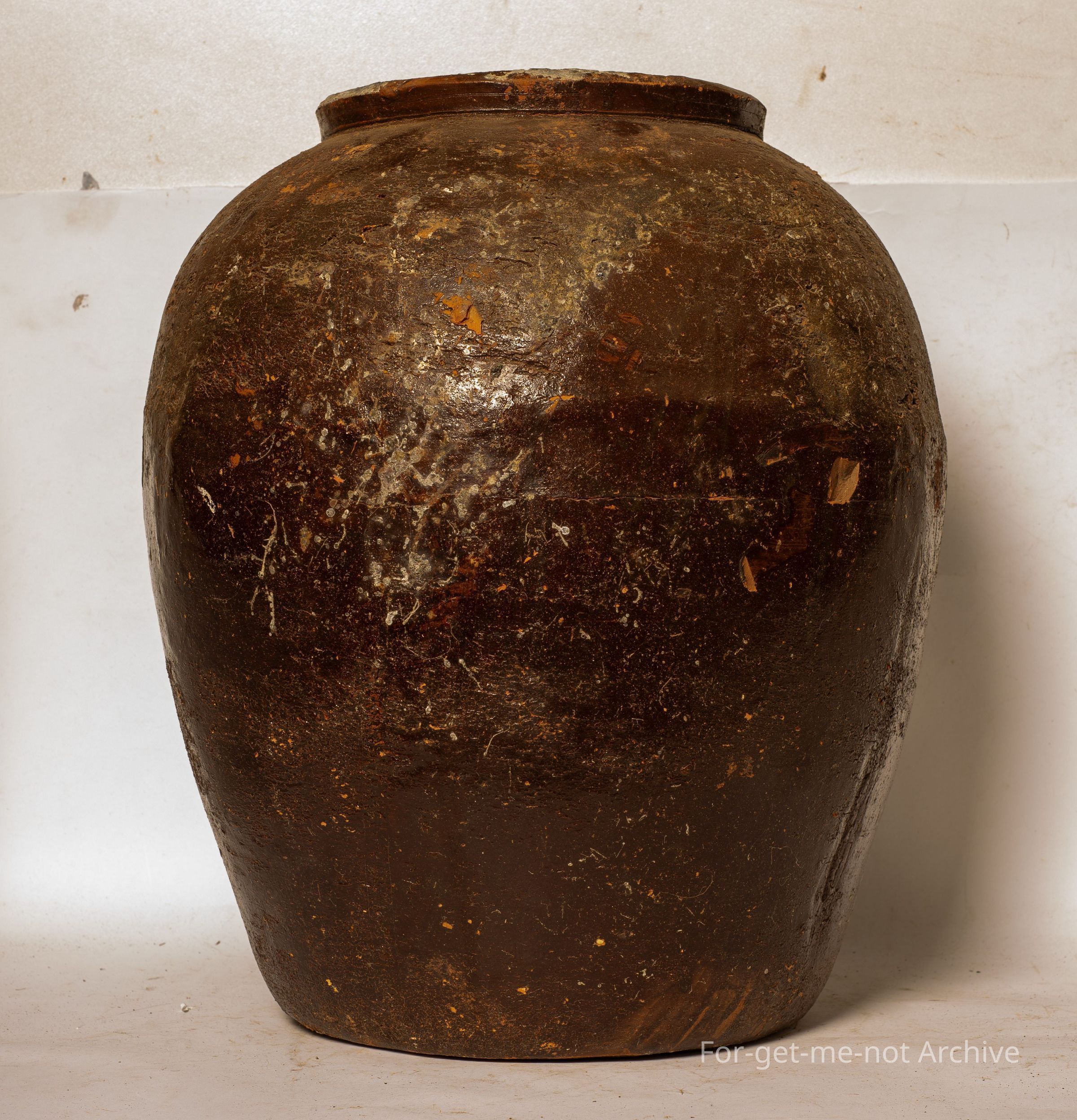 Chinese collection. This is a large heavy traditional storage jar. The normal heavy brown glaze. This one has seen a fair bit of, action, but no chips or cracks. It's where the beaten of lies. A fine example,Collection