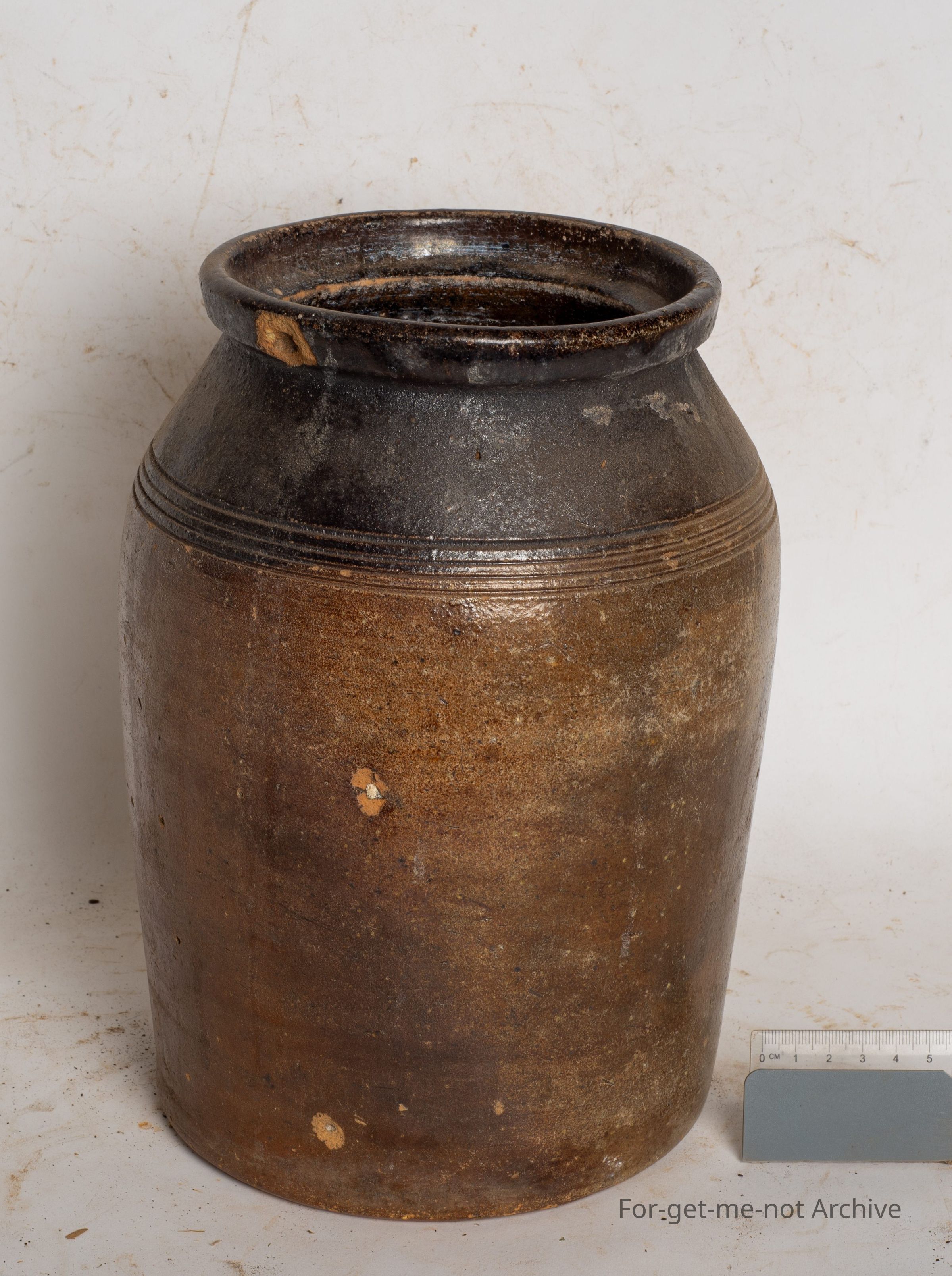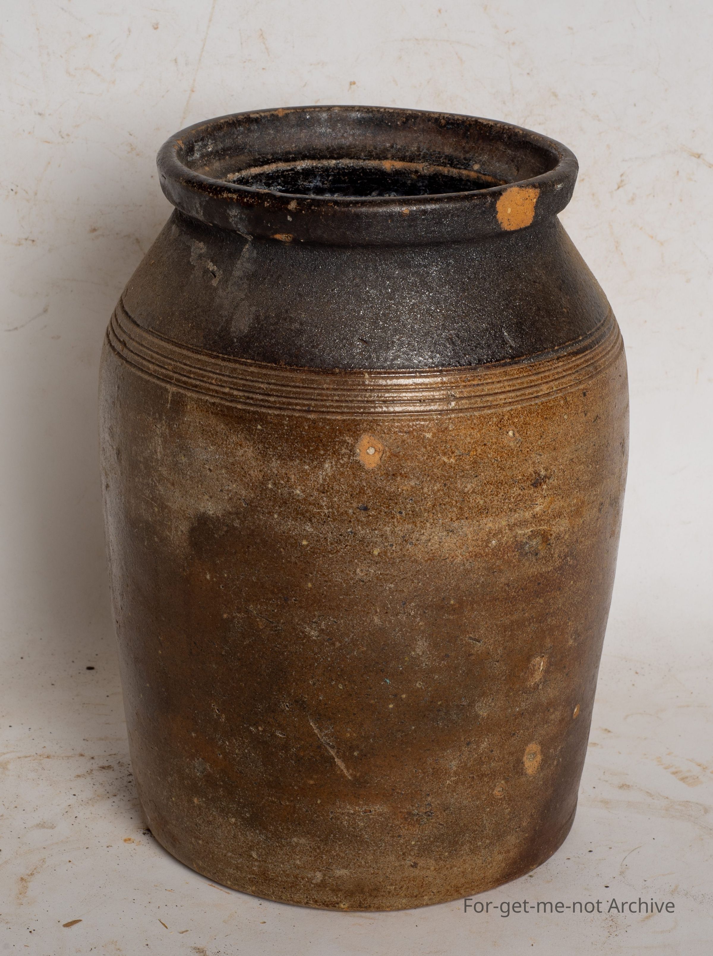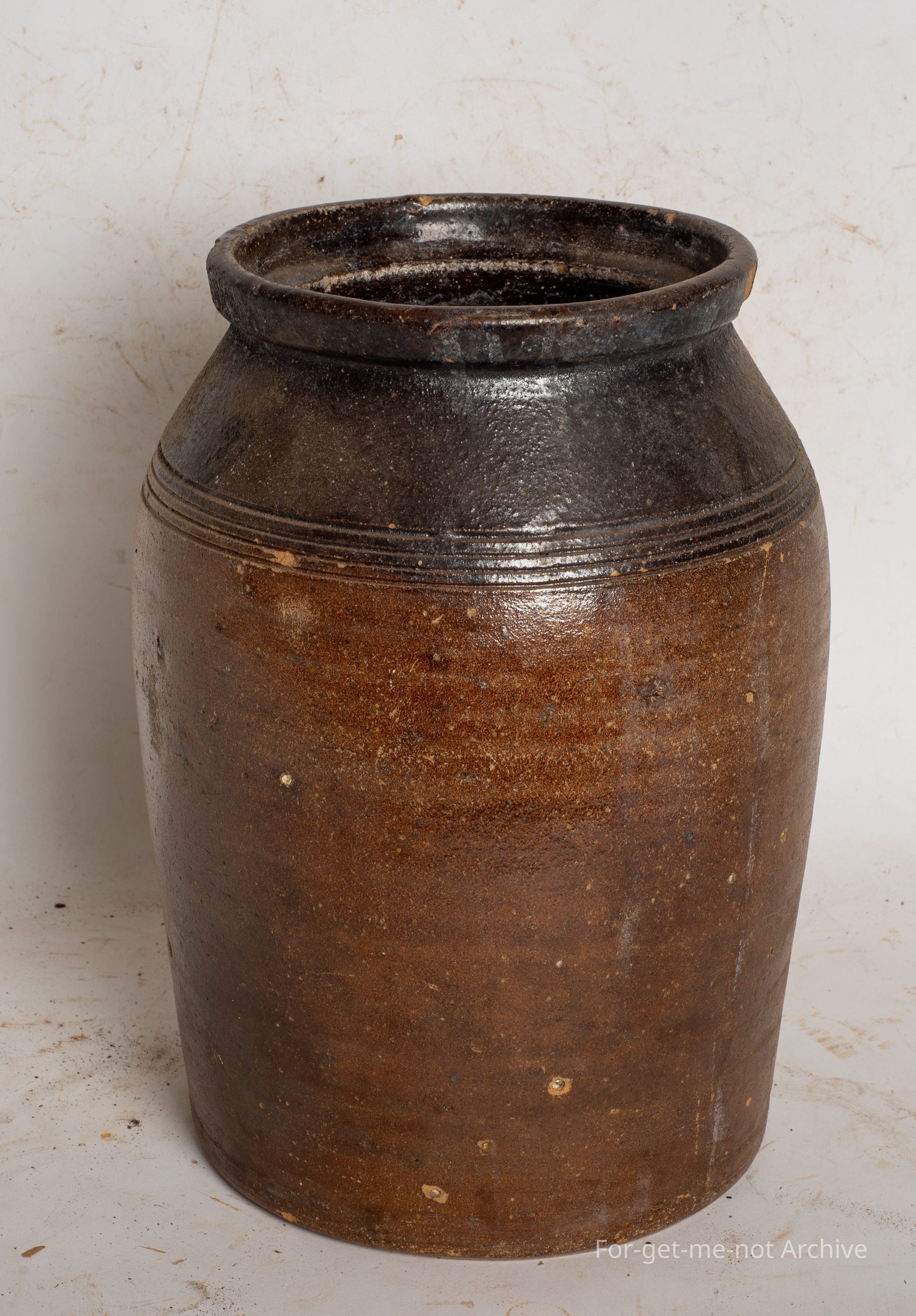 This is a medium sized storage jar, very dark brown glaze, possibly of English origin.