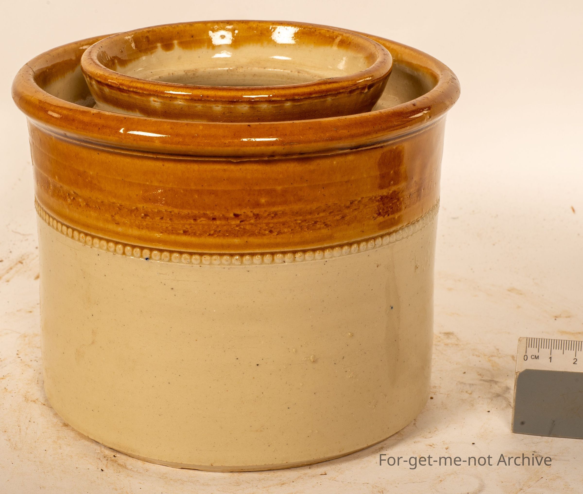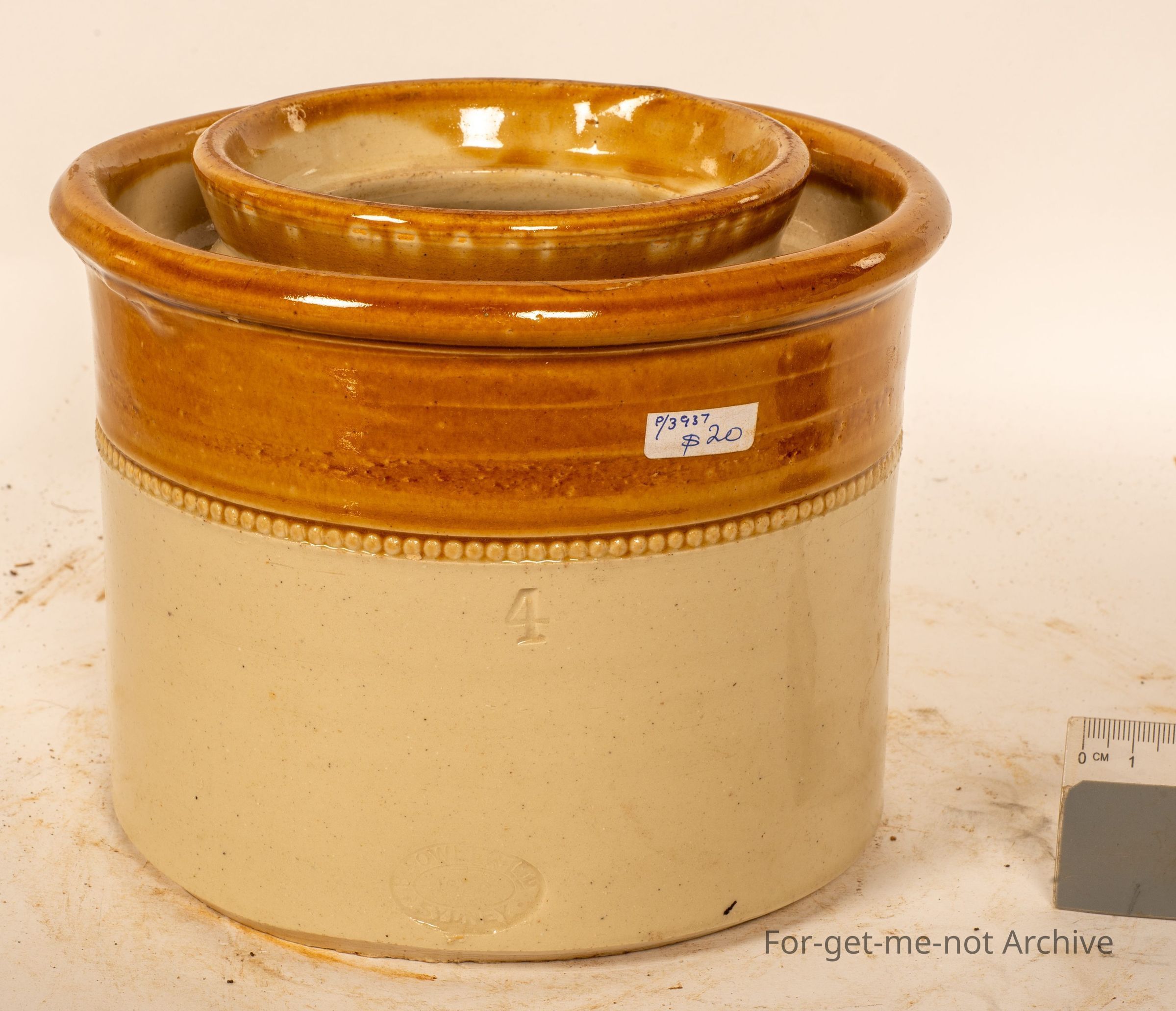 Stoneware pottery section This is a storage jar, in very good order. Collar work to the outer rim. Does have a stamp. The interesting part is it has a water moat around the top, so that insects cannot get through the lid to get into the contents. stamped Fowler Sydney. Quite a lovely piece.Collection