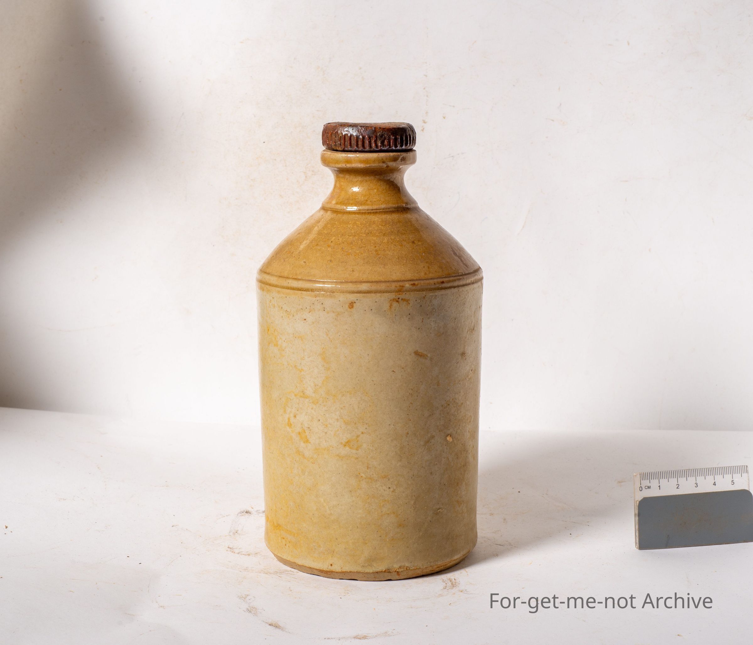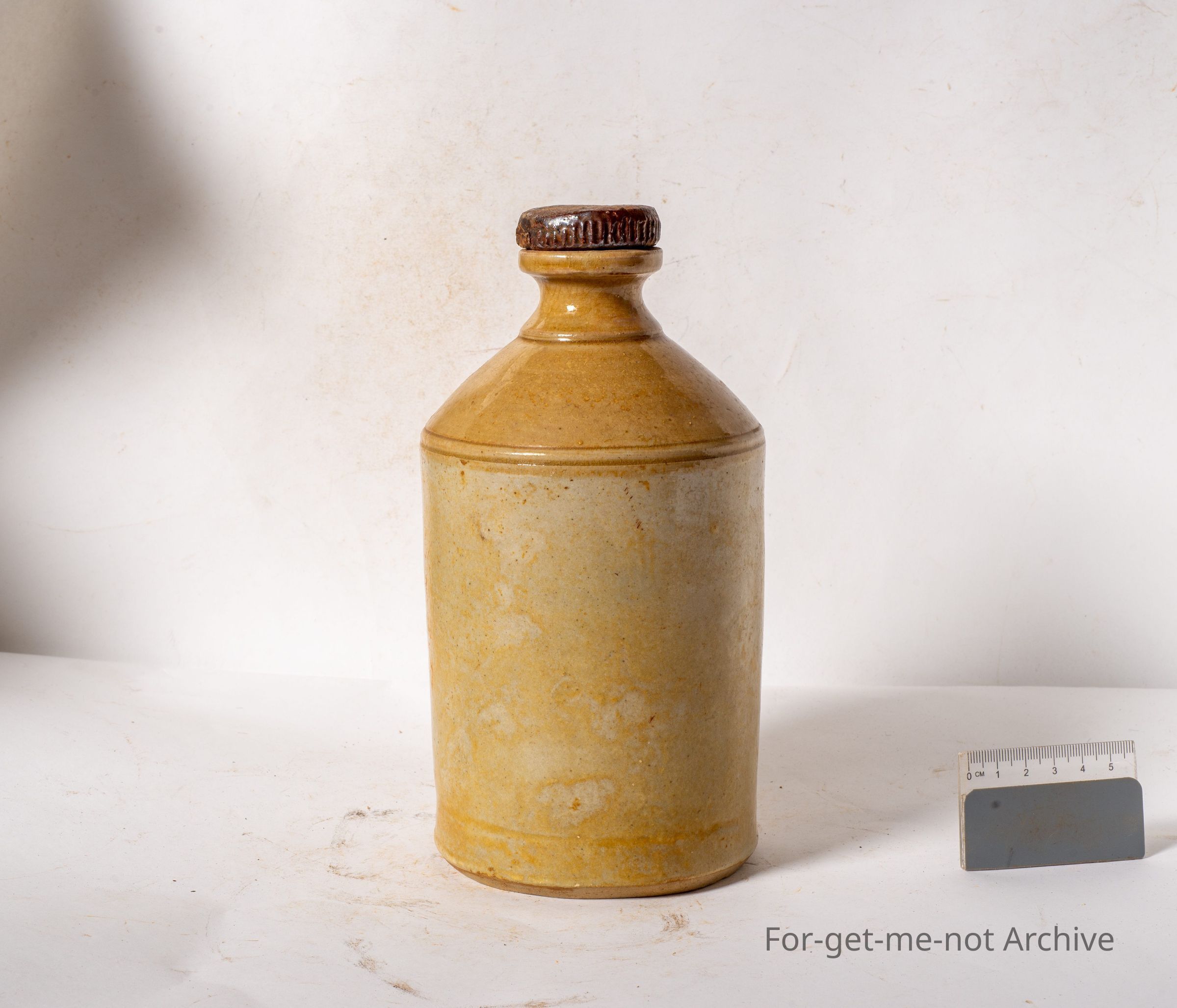 This is like a small storage jar. No identification as true pottery, but it gives the appearance of Bendigo. Has the stoneware lid, screw in lid, which is lovely.