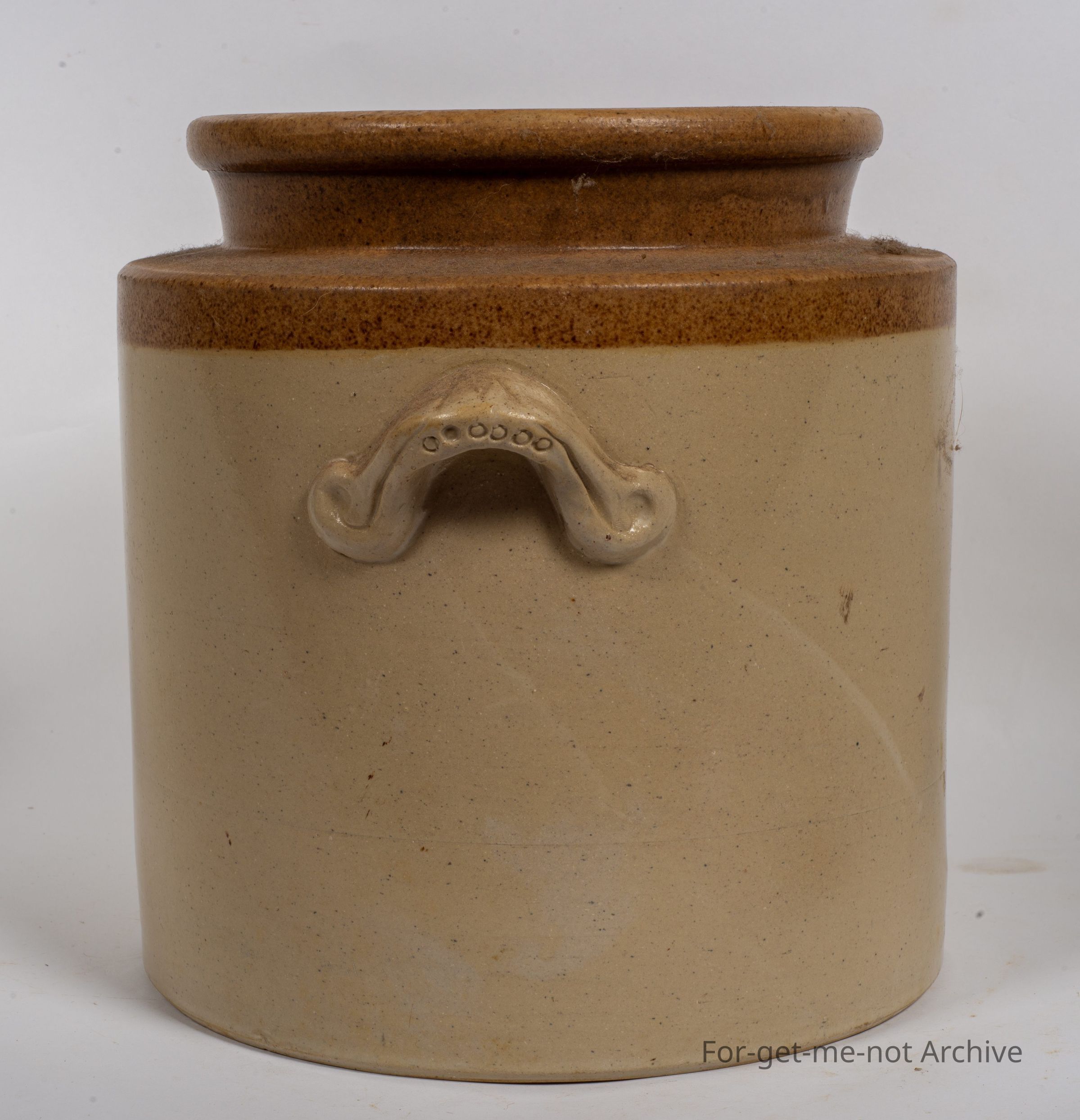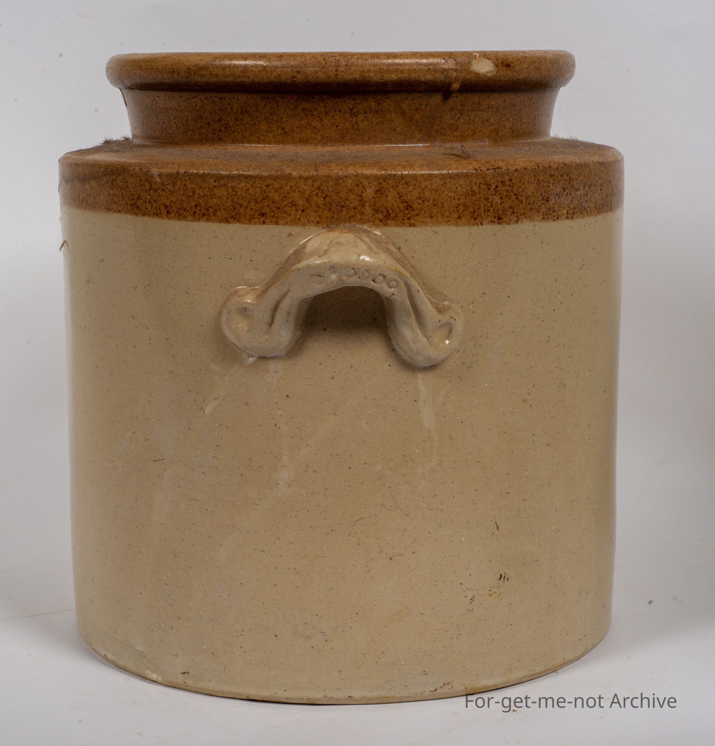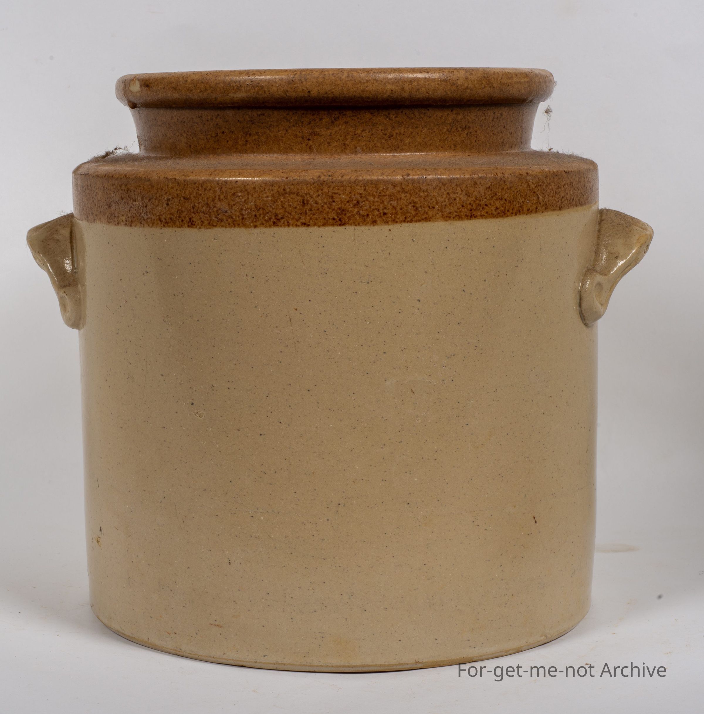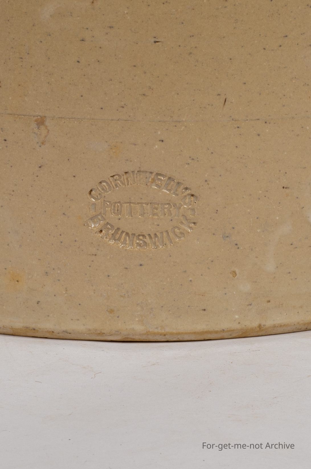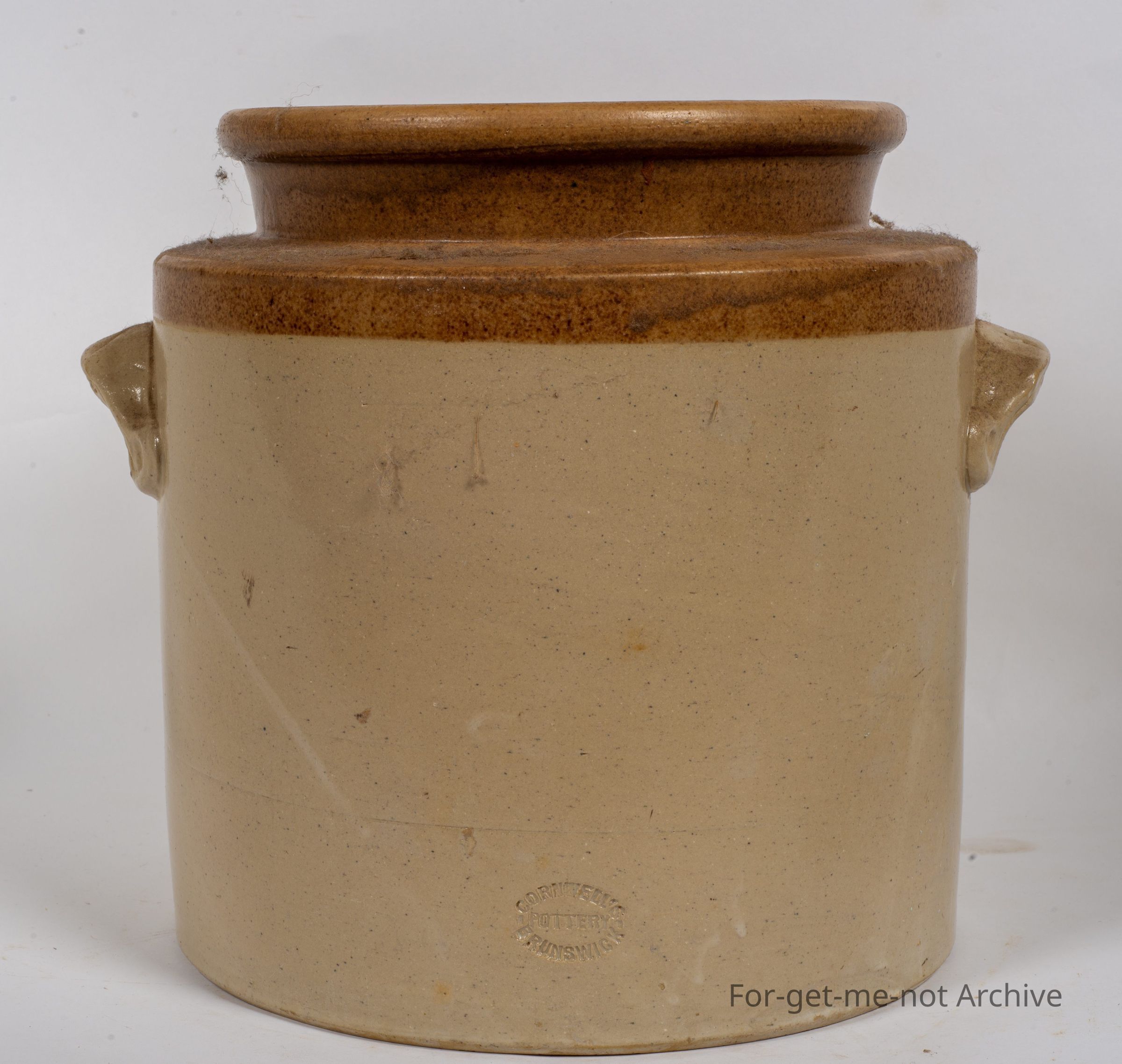 Stoneware pottery, storage jar. This piece has, the ear handles on the side, in very good condition. This is beautifully stamped, Cornwells Brunswick Pottery. Very clear. No cracks or chips with the, rings embedded in the handles which was a Cornwell characteristic.Collection