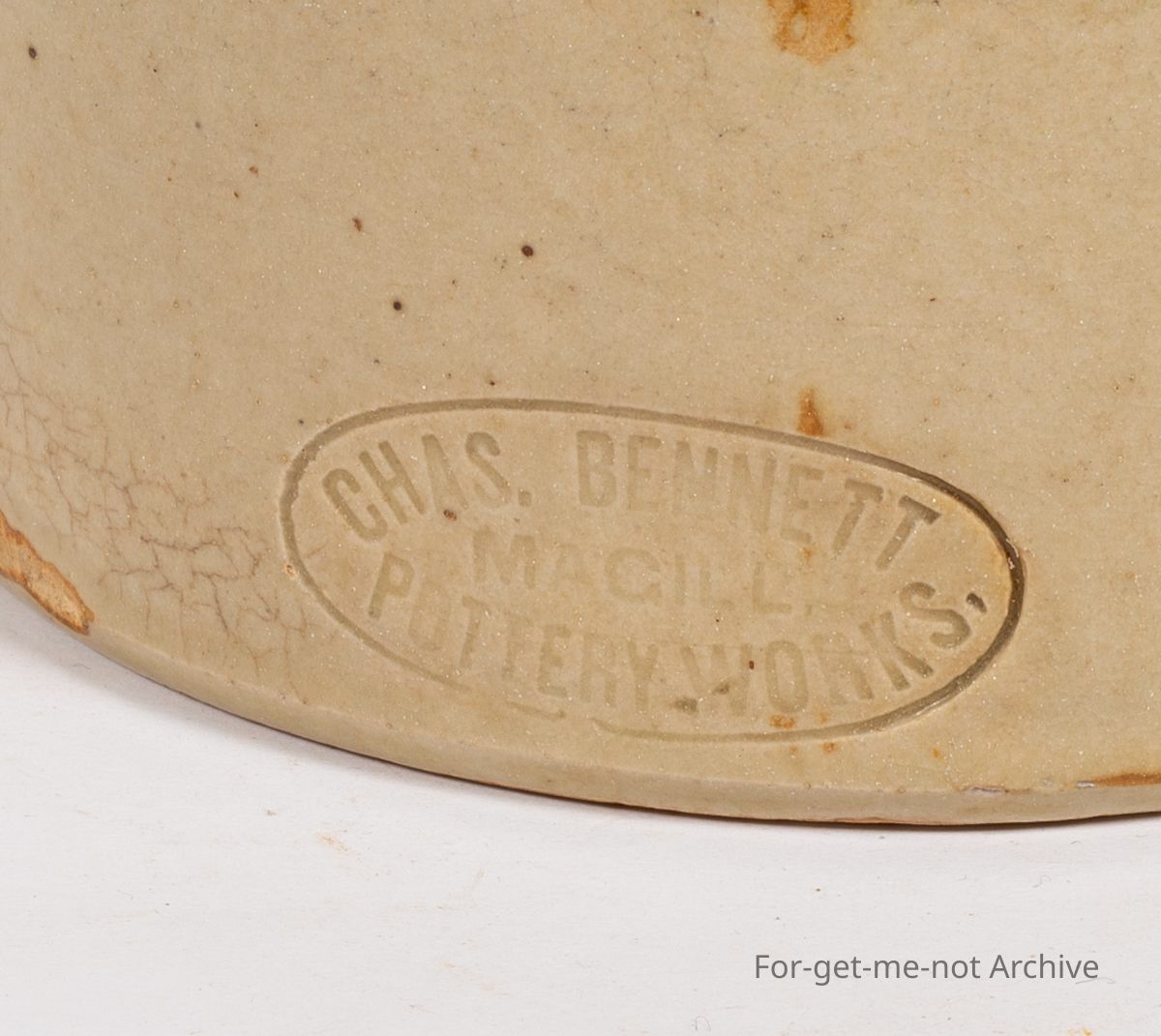 Stoneware pottery, this time storage jar, in very good order, This piece is well stamped. This is the , a brown necklace. The stamping is Chaz Bennett McGill Pottery Works. This is the original Bennett. Bennett's pottery is still going today, but this is the grandfather that started the pottery off, a rare piece.Collection