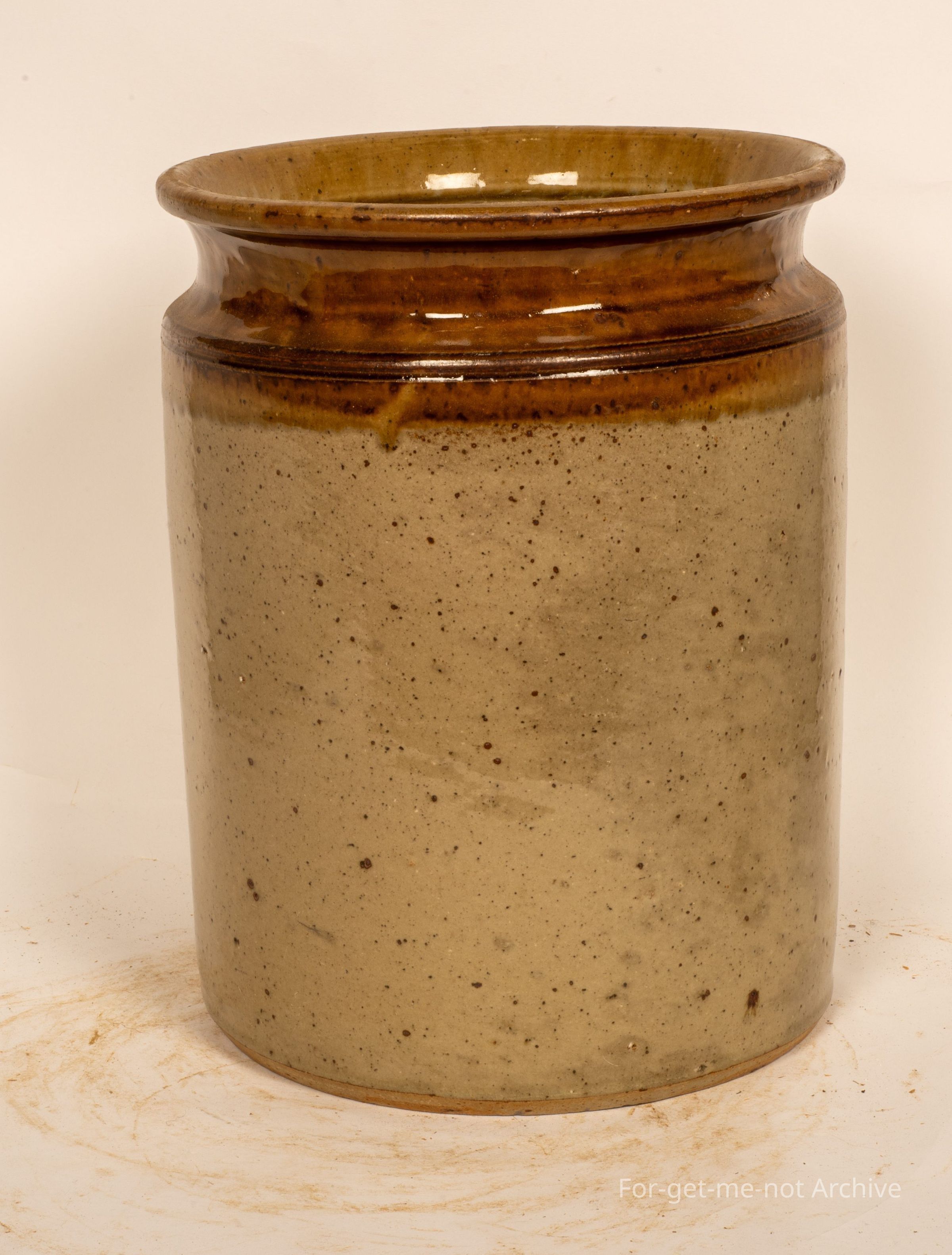 Stoneware storage jar. No apparent stamp, but, a very obvious high sheen lead glaze, a beautiful high neck. This is very likely to be another South Australian piece, but no identification.Collection