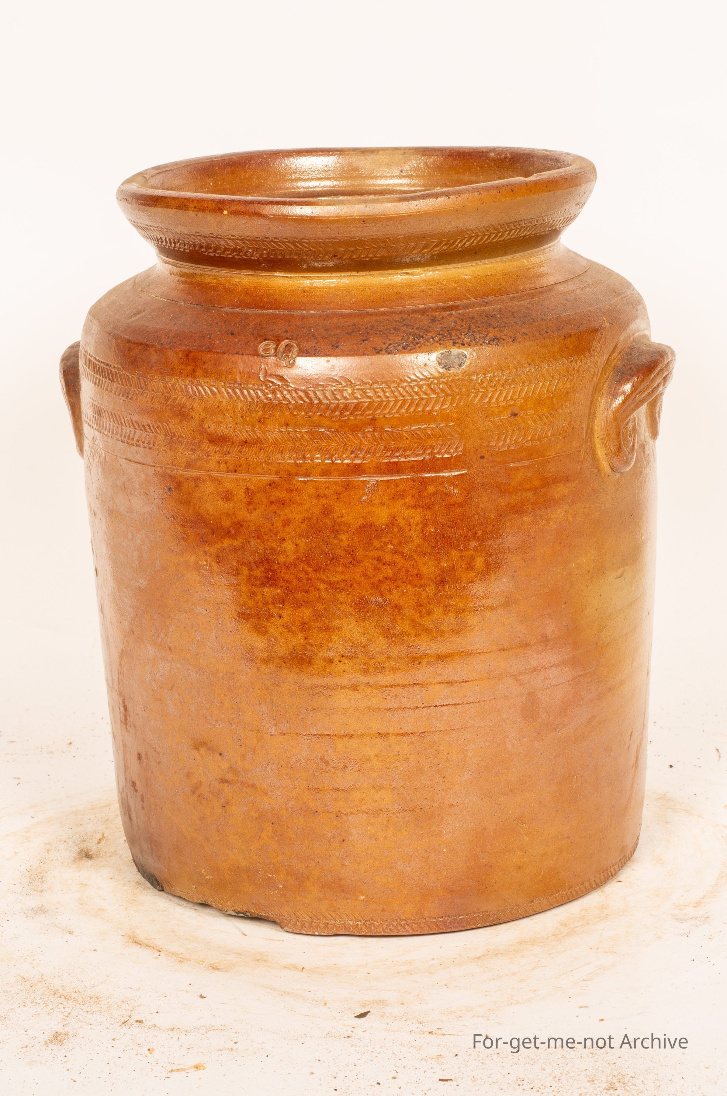 Stoneware storage jar. Very distinctive glaze and cobble mark, no stamping, but this could, be attributed to Dalke Melbourne.